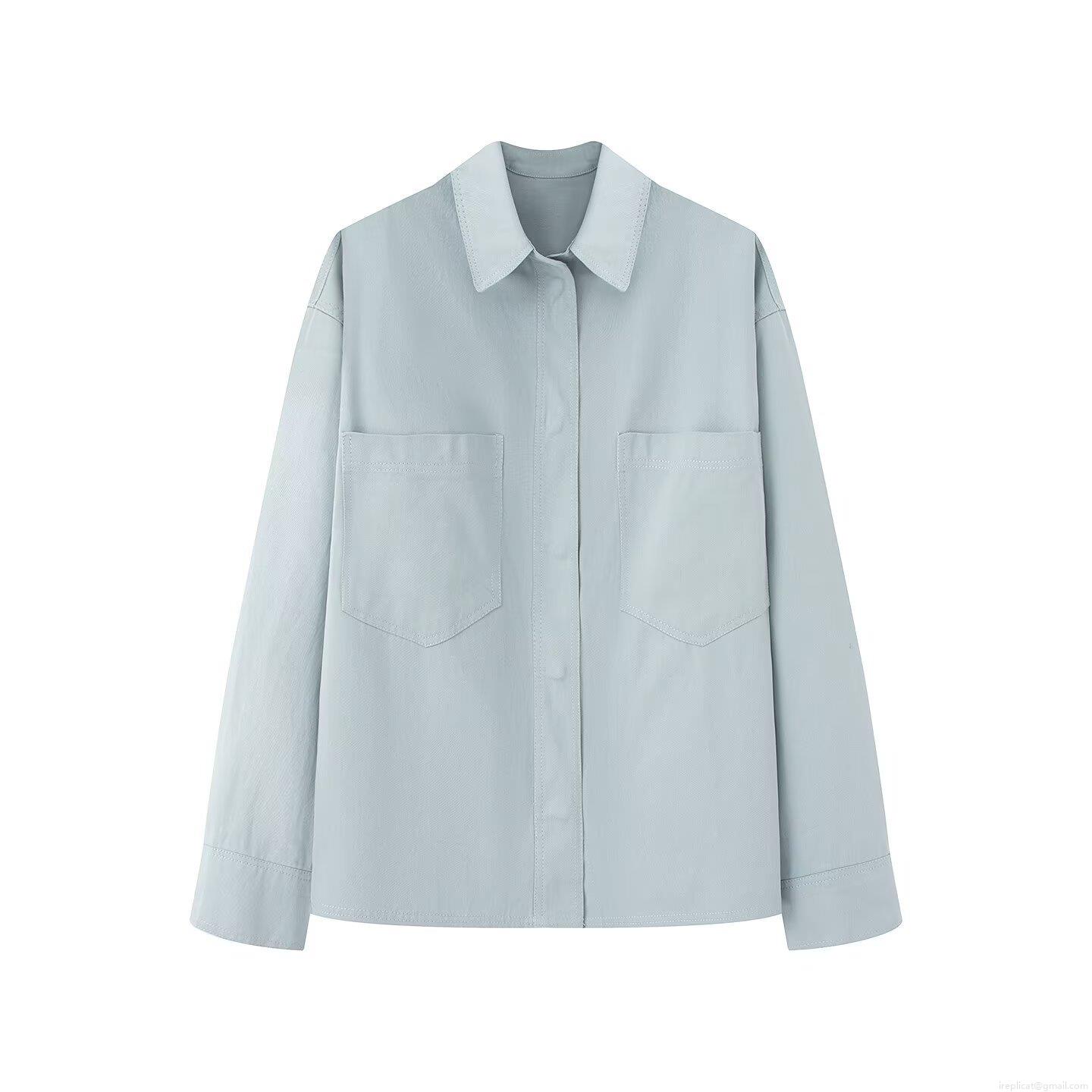• Women's Casual Oversized Cotton Blend Shirt Jacket Autumn Long Sleeve Lapel Neck Blouse With Dual Pockets Single Breasted Solid Color Streetwear Top