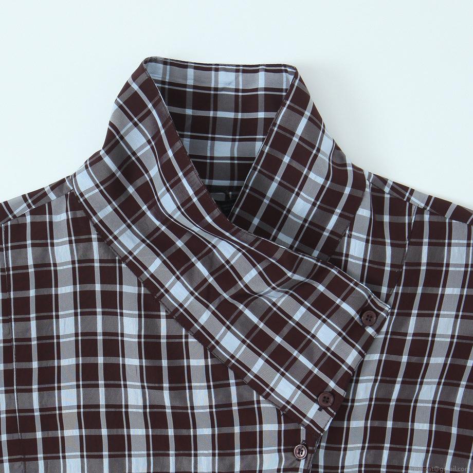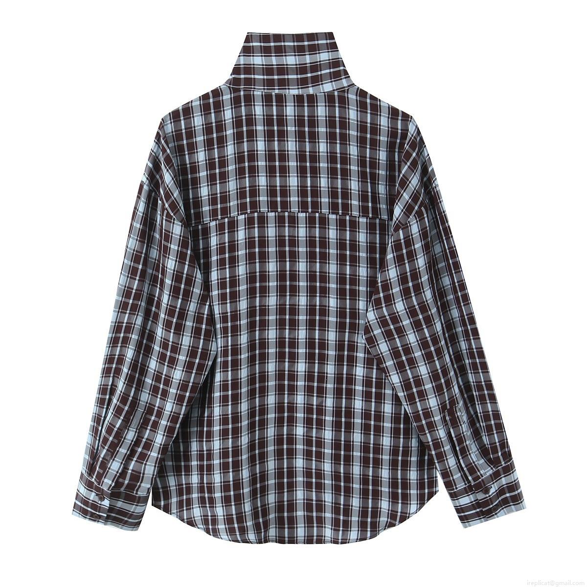 • Women's Casual Plaid Blouse Asymmetric High Neck Long Sleeve Loose Fit Polyester Spandex Checked Shirt Tops For Daily Office Winter Autumn