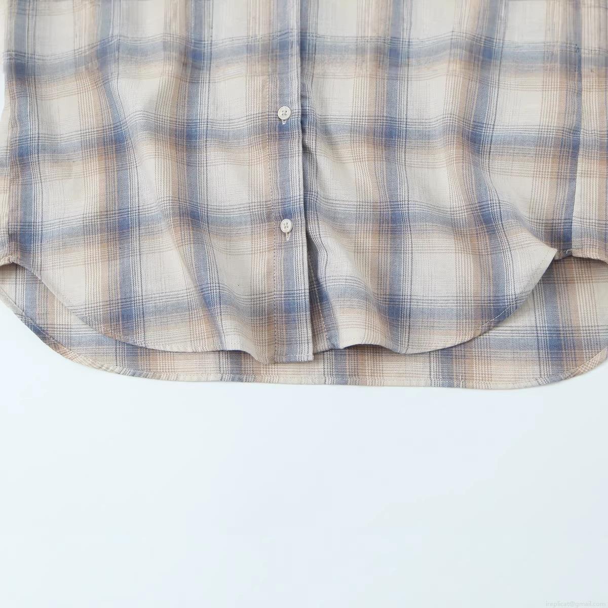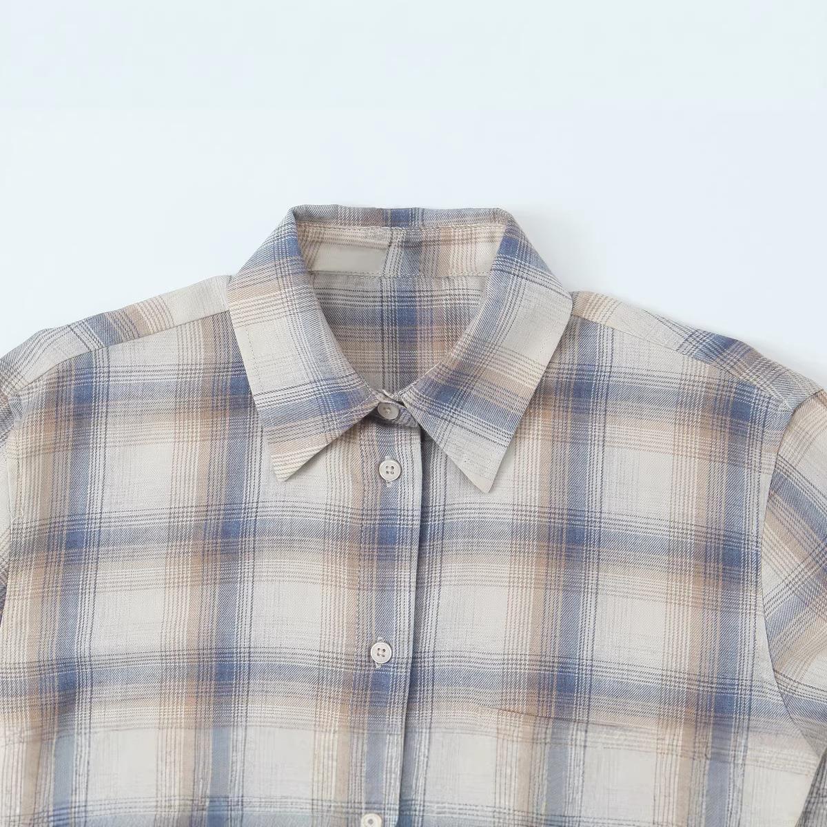 • Women's Casual Plaid Long Sleeve Shirt Polyester Blend Button Down Blouse With Pocket Vintage Checkered Tops For Spring Autumn Office Streetwear