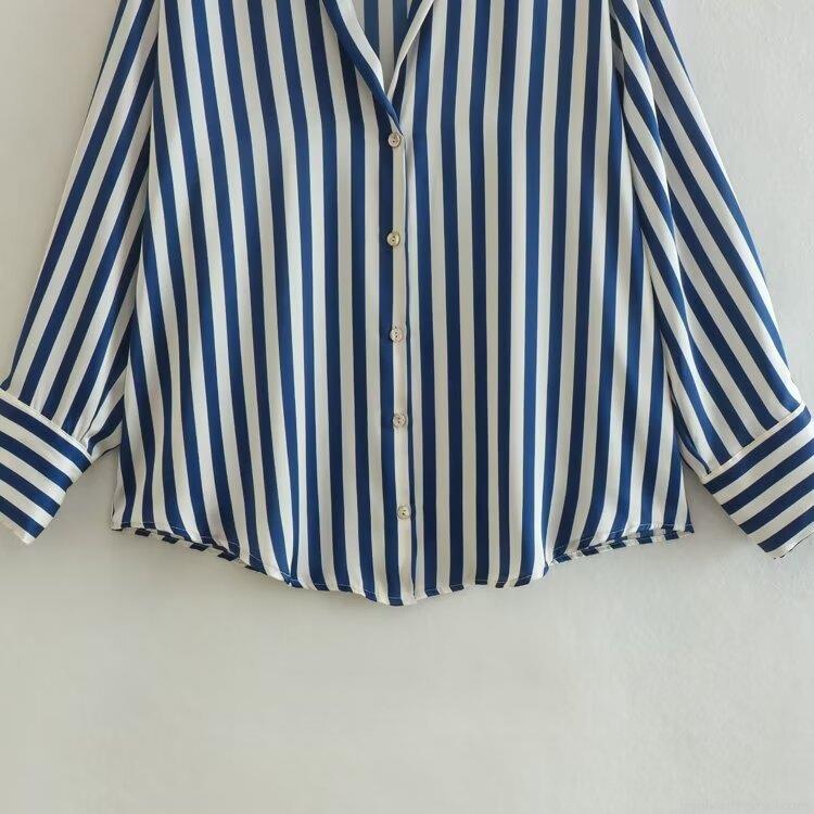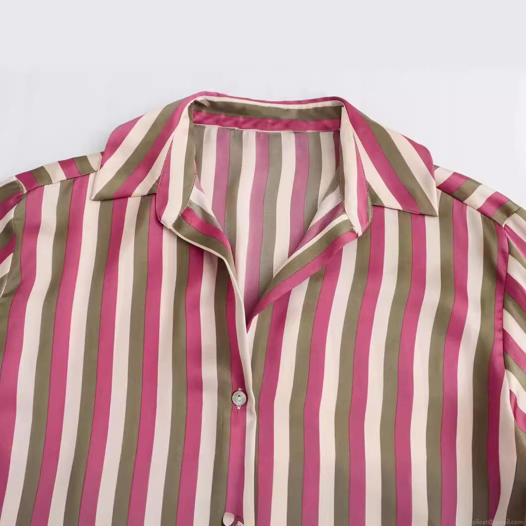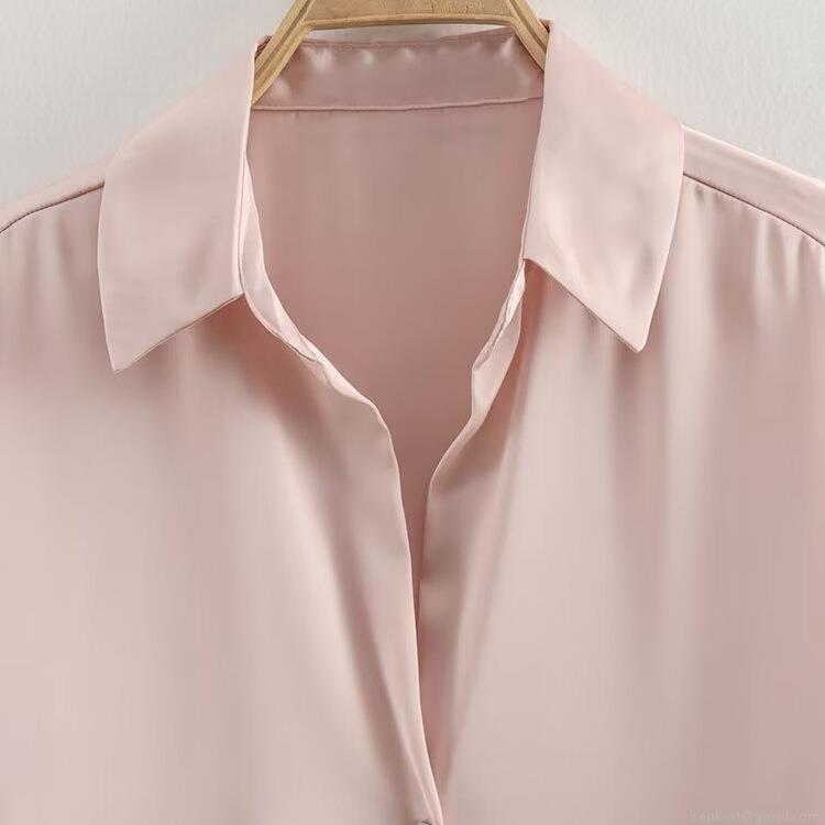 • Women's Casual Satin Silk Like Shirt Long Sleeve Button Down Blouse Elegant Office Work Tops Striped Solid Color Loose Fit Lapel Shirts