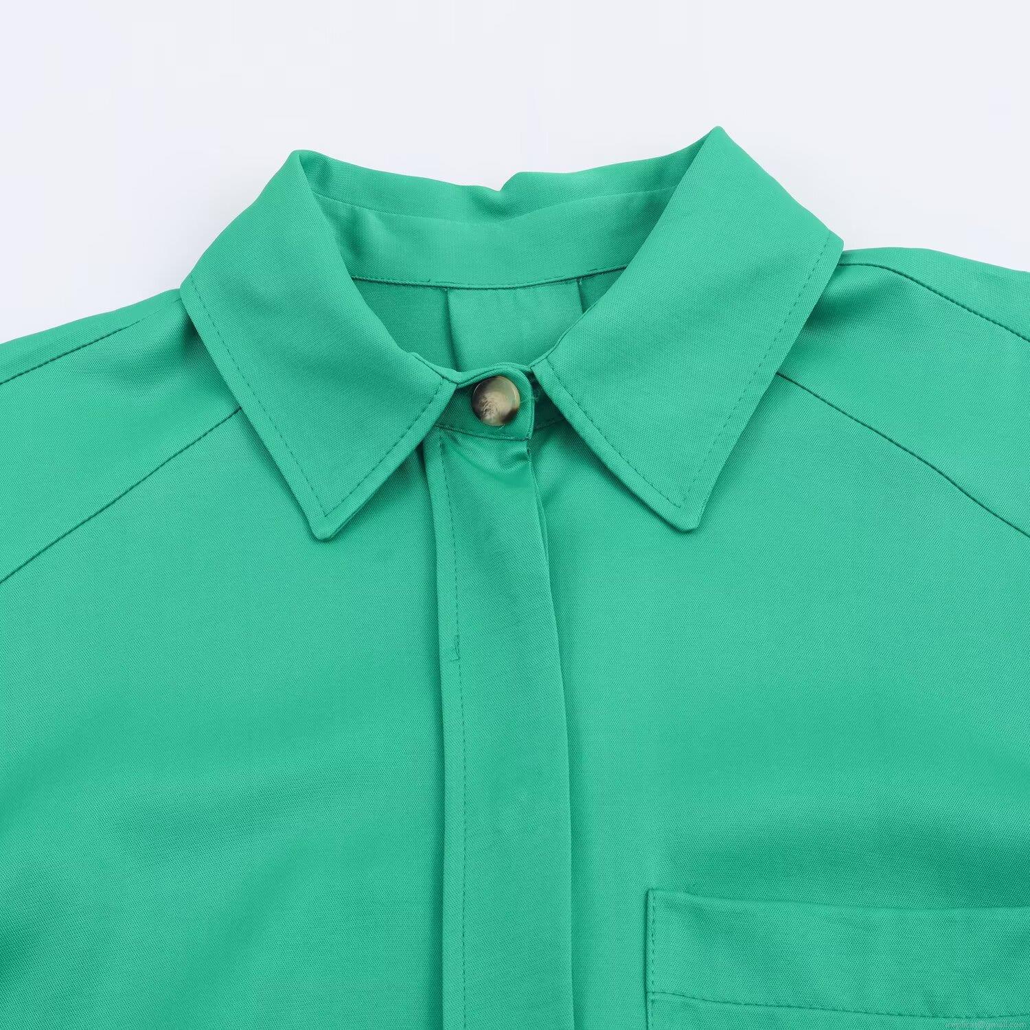 • Women's Casual Satin Texture Blouse Long Sleeve Button Down Shirt With Pocket Loose Fit Lapel Collar Top For Daily Wear
