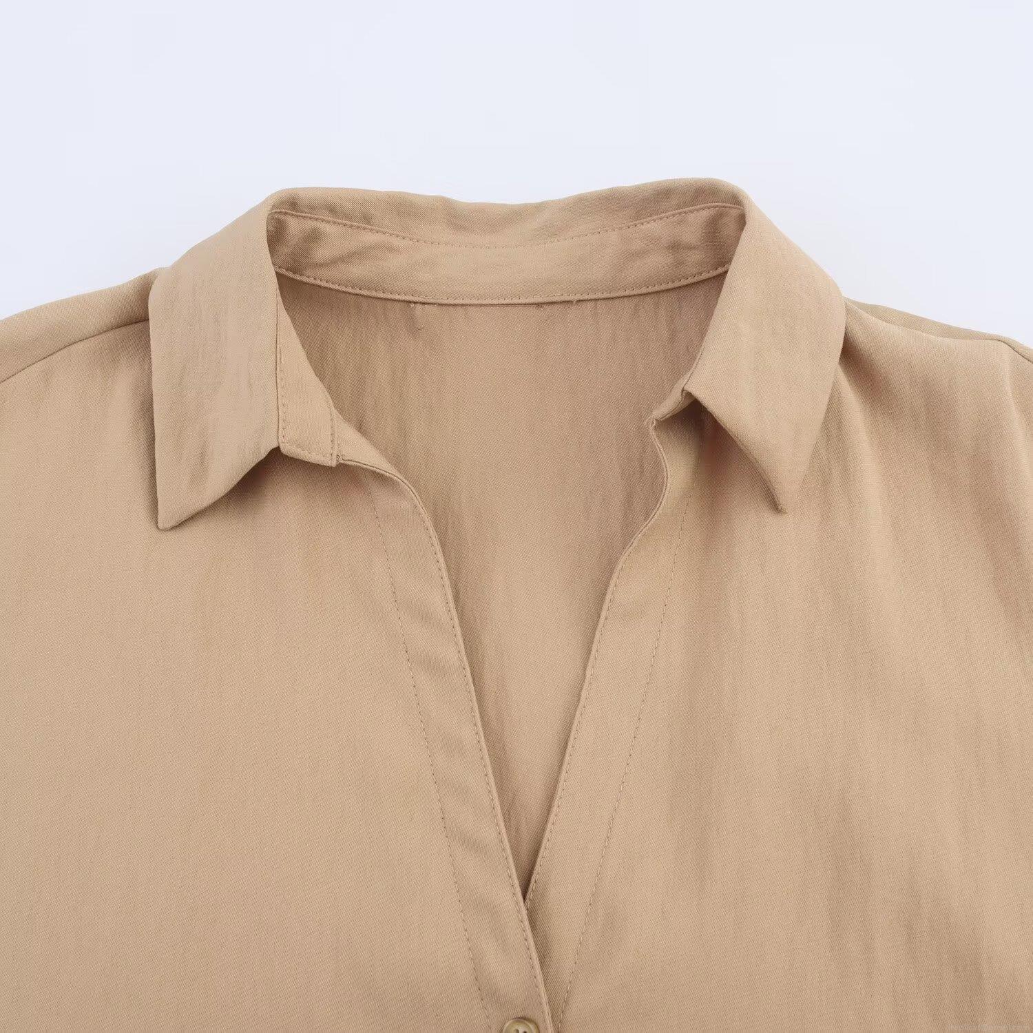 • Women's Casual Short Sleeve Shirt Solid Color Loose Fit Lapel Button Down Blouse Summer Modern Tops for Ladies High Quality Polyester Fabric
