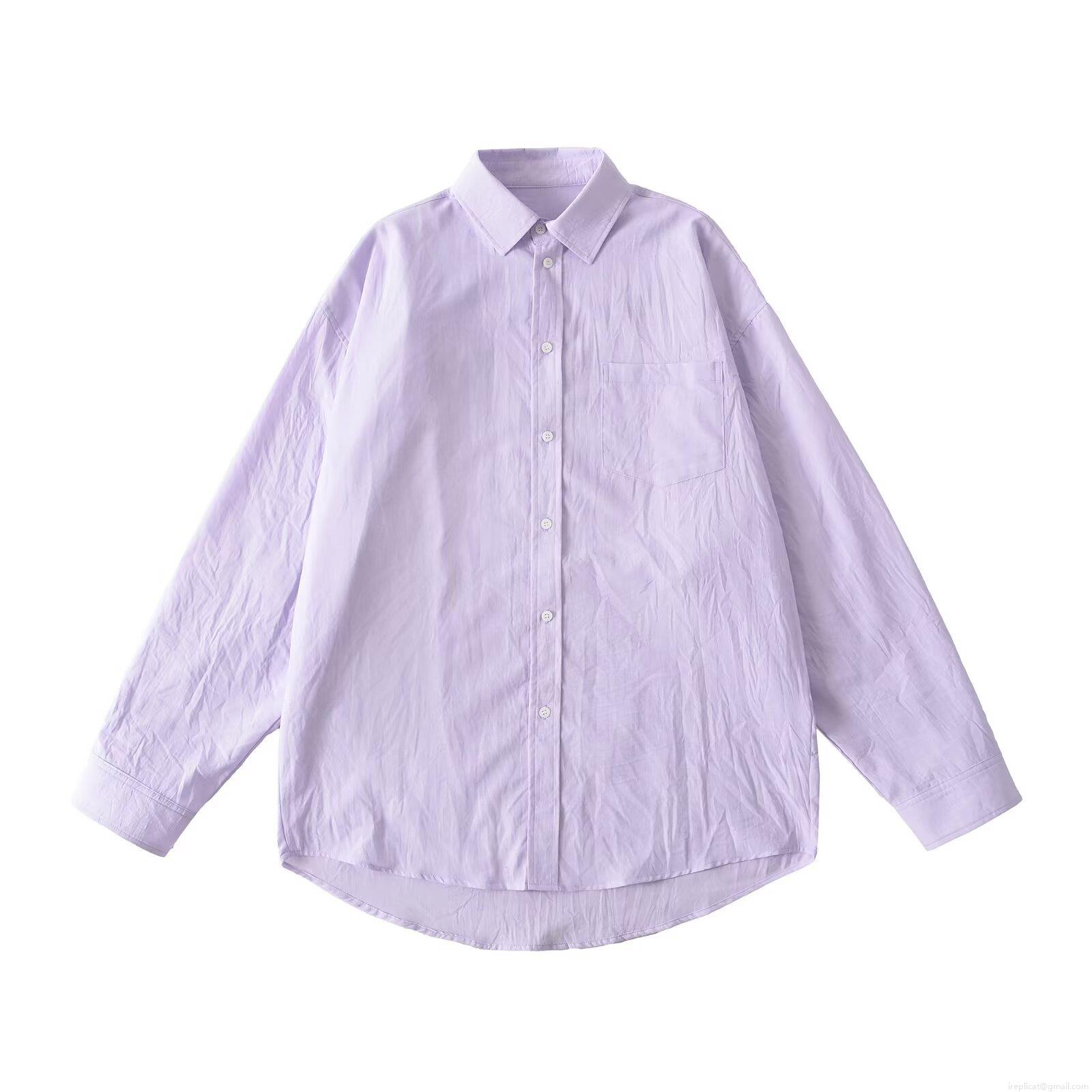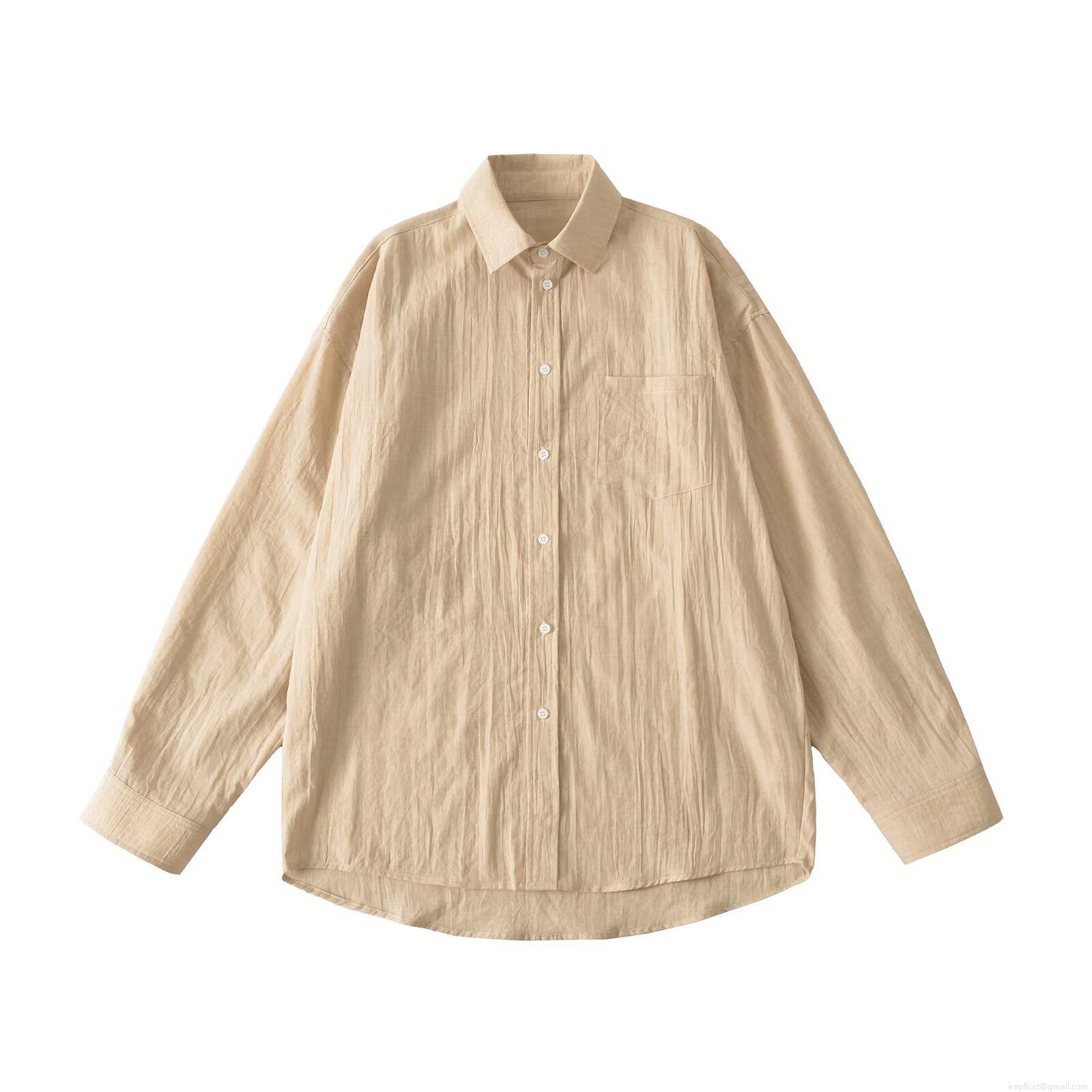 • Women's Casual Solid Color Long Sleeve Button Up Shirt Loose Lapel Blouse With Pocket Cotton Linen Feel Autumn Top