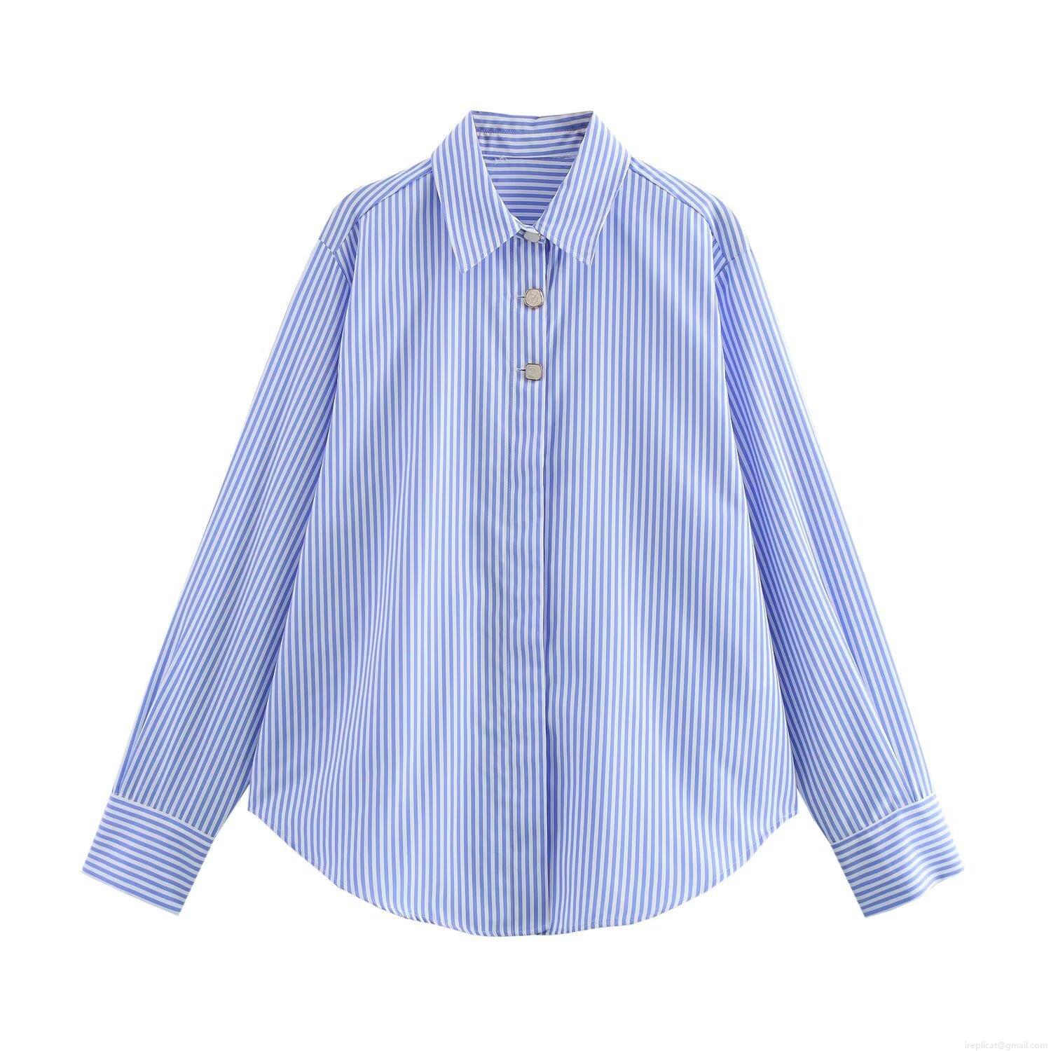 • Women's Casual Striped Long Sleeve Button Front Shirt Polyester Polo Collar Blouse For Daily Commuting Office Streetwear Top