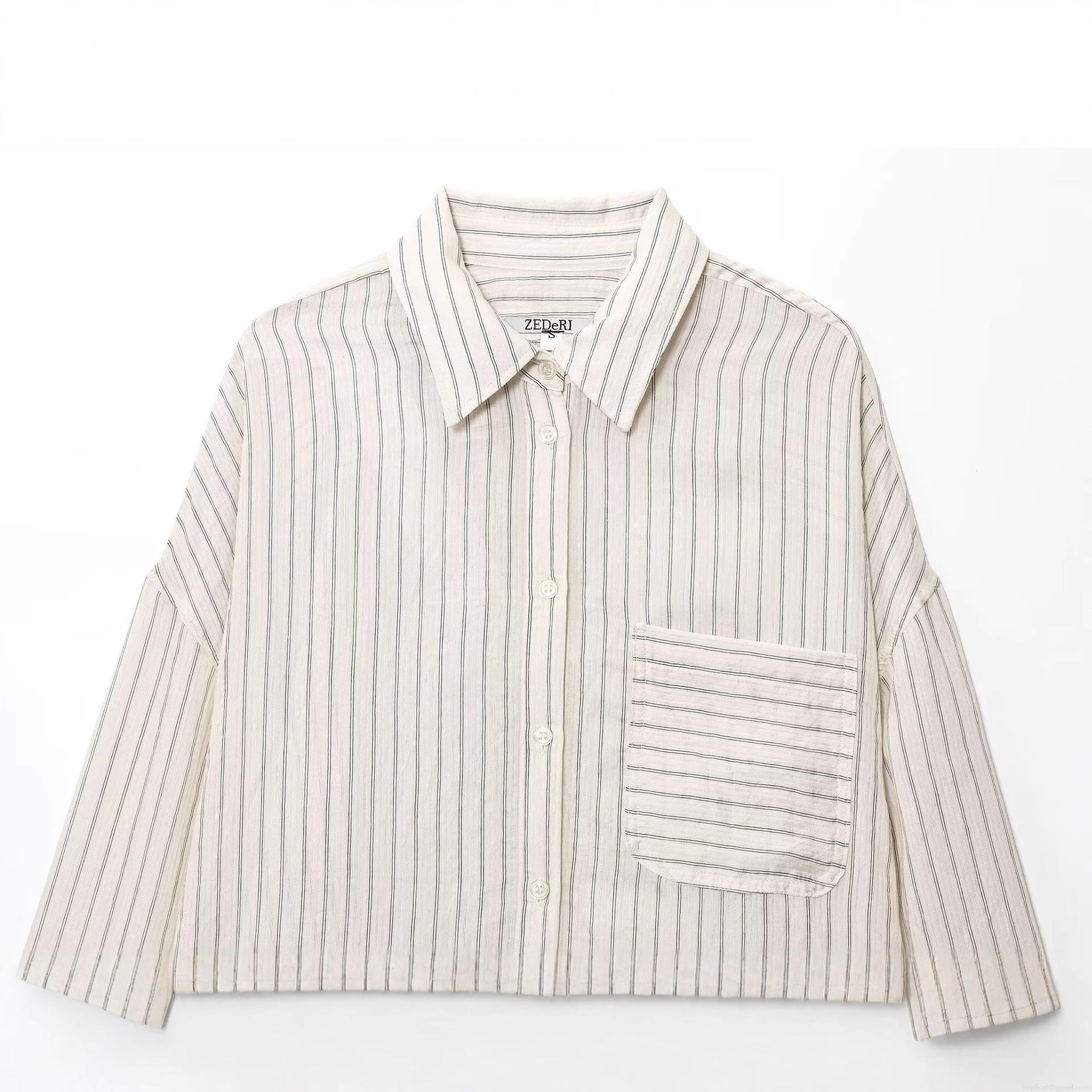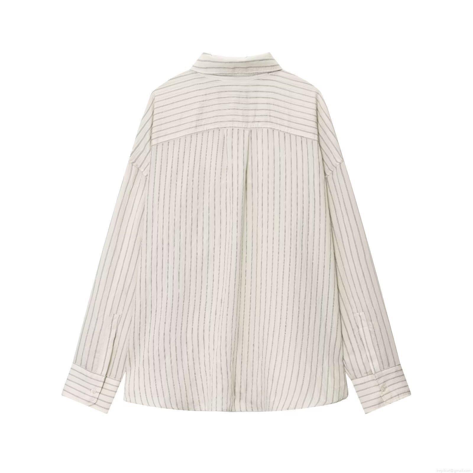 • Women's Casual Striped Long Sleeve Shirt Polyester Lapel Button Down Blouse With Chest Pocket For Daily Commute Fashion Striped Top