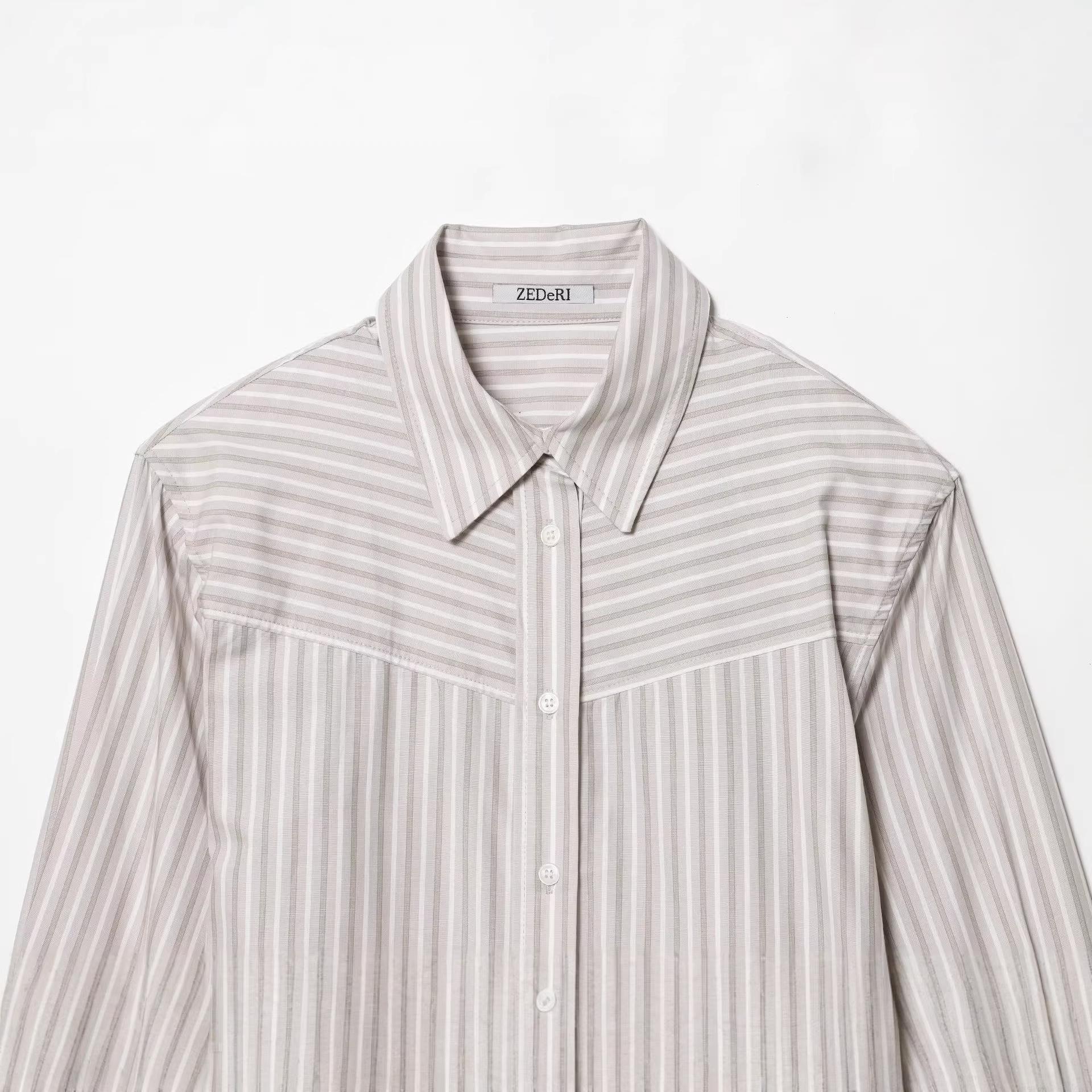 • Women's Casual Striped Long Sleeve Shirt With Shoulder Pads Fashion Office Poplin Button Down Blouse Polyester Cotton Blend Regular Fit Tops For Women