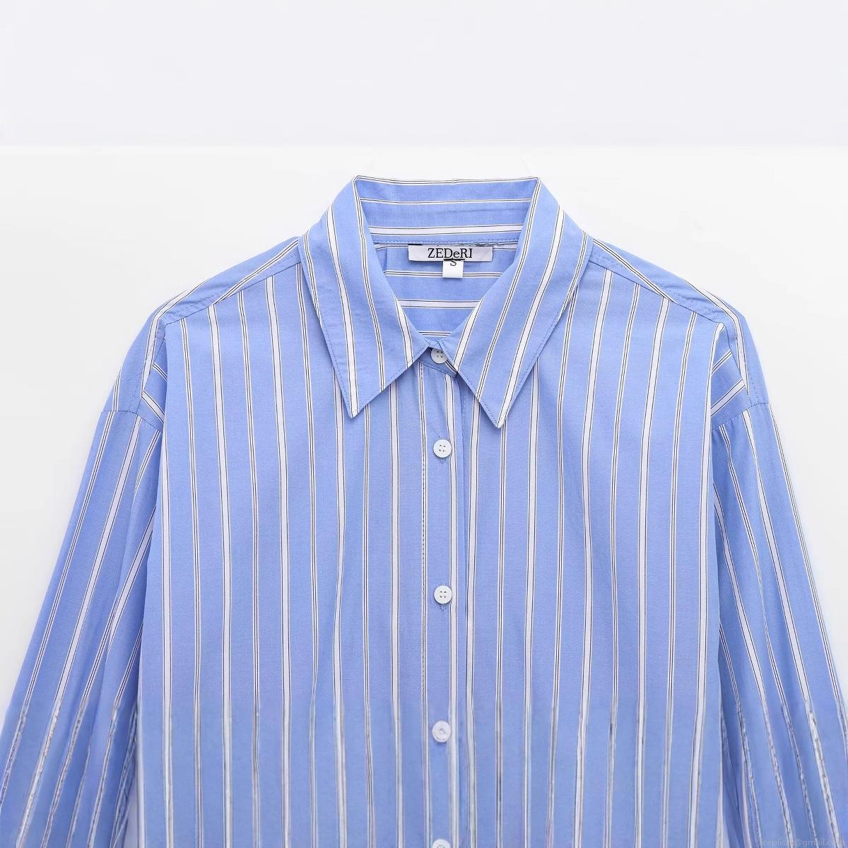 • Women's Casual Striped Poplin Blouse Long Sleeve Button Down Shirt Vertical Stripe Loose Fitting Top for Office Daily Workwear Elegant Fashion