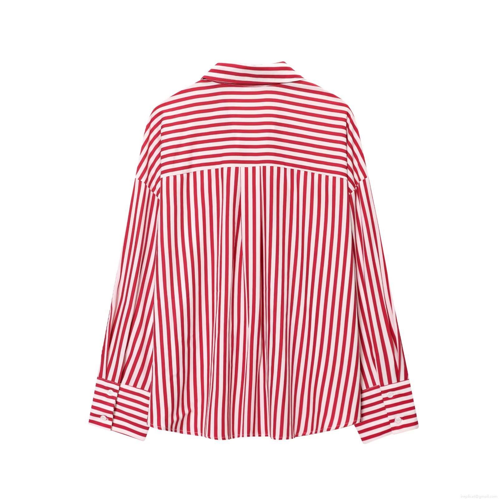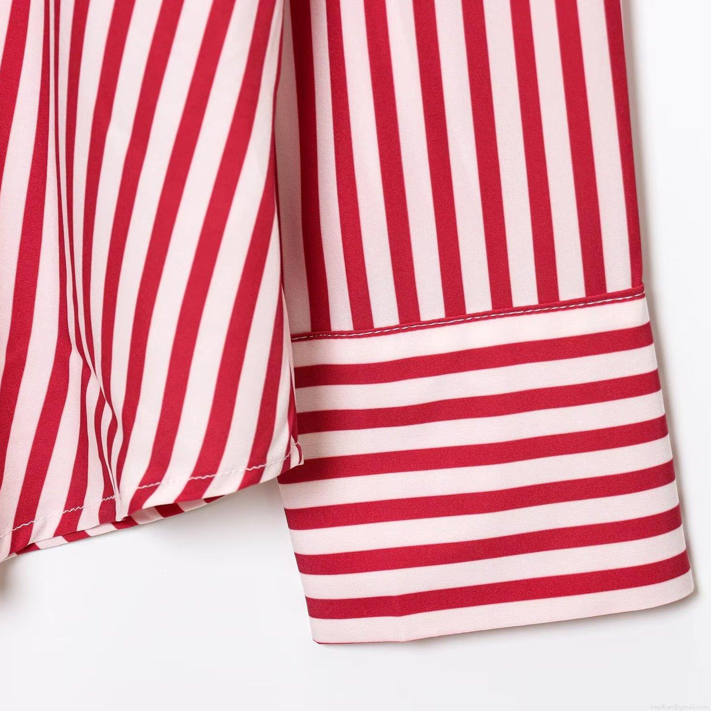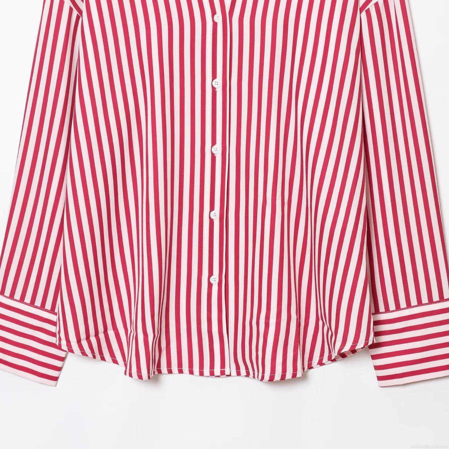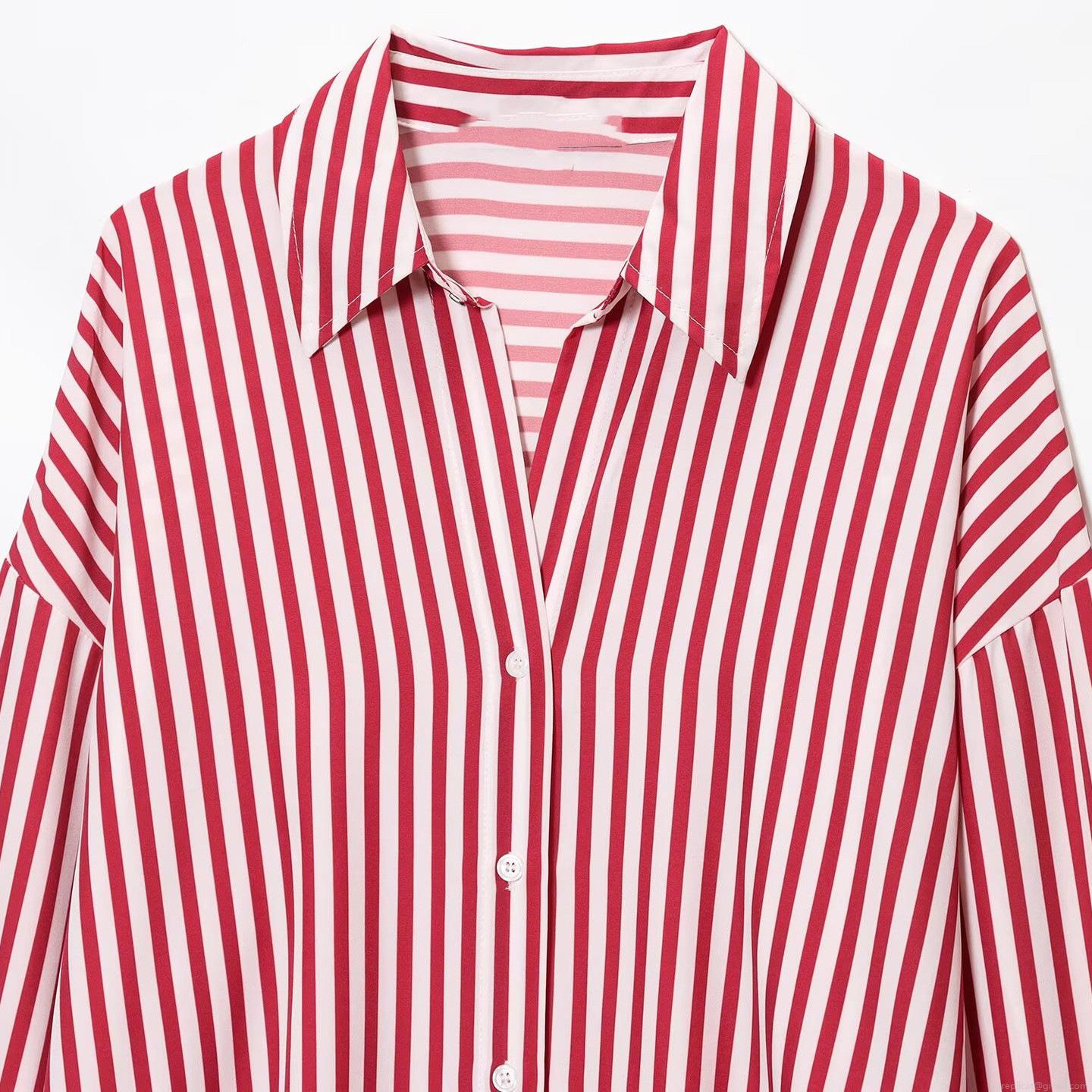 • Women's Casual Striped Poplin Shirt Long Sleeve Turn-down Collar Loose Fit Blouse For Daily Wear Minimalist Lightweight Summer Top