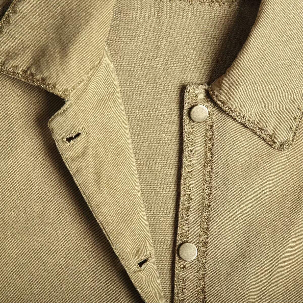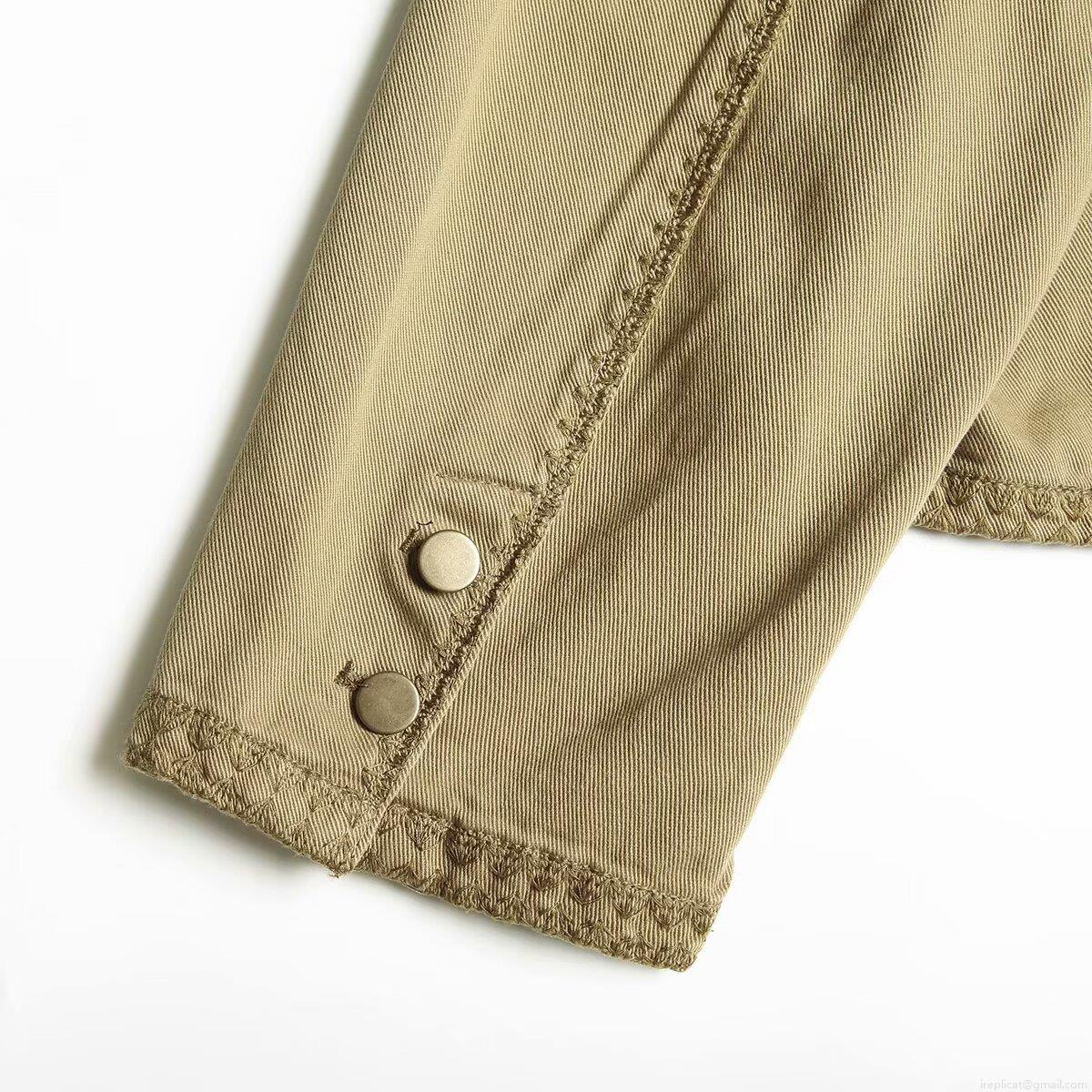 Solid Color, Splice, Serrated Stitch, Big Pocket, Decorative Embroidery
