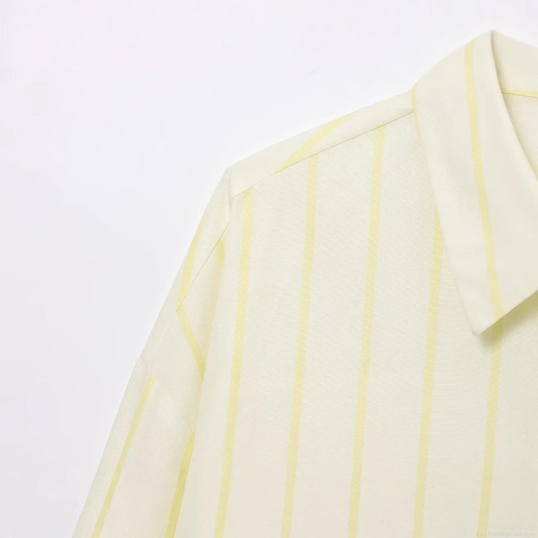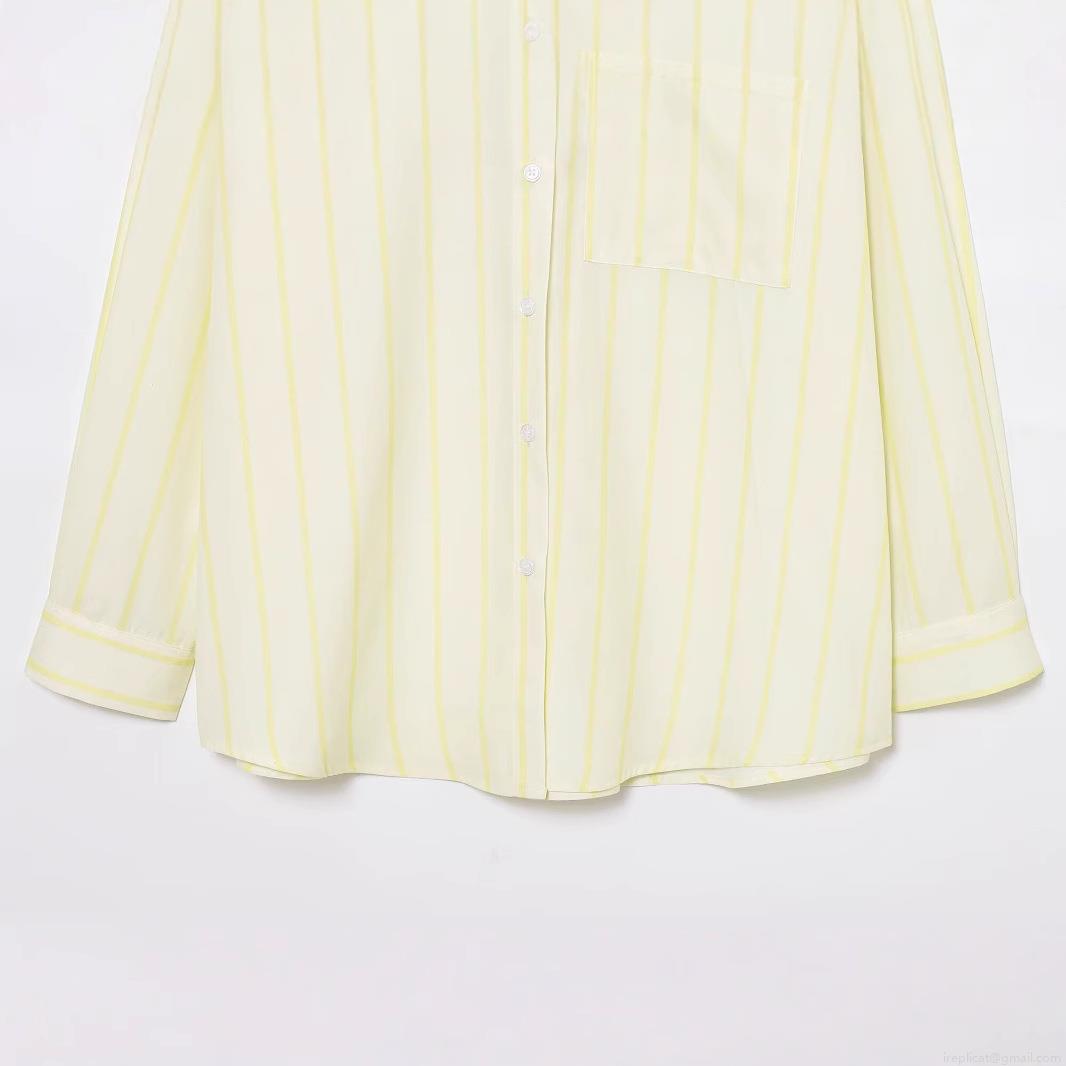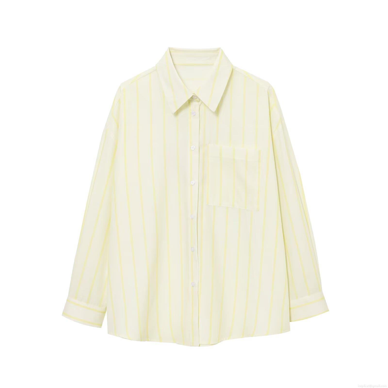 • Women's Casual Vertical Stripe Shirt Polyester Lapel Long Sleeve Loose Blouse Streetwear Button Down Top With Chest Pocket For Women Spring Summer