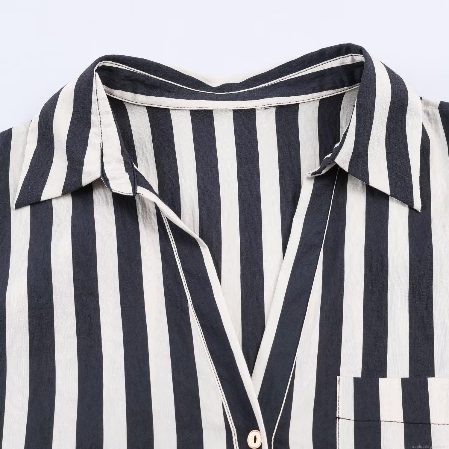 • Women's Casual Vertical Striped Long Sleeve Shirt With Side Drawstring Ruched Detail V-Neck Button Down Polyester Blouse For Daily Office Dating Wear