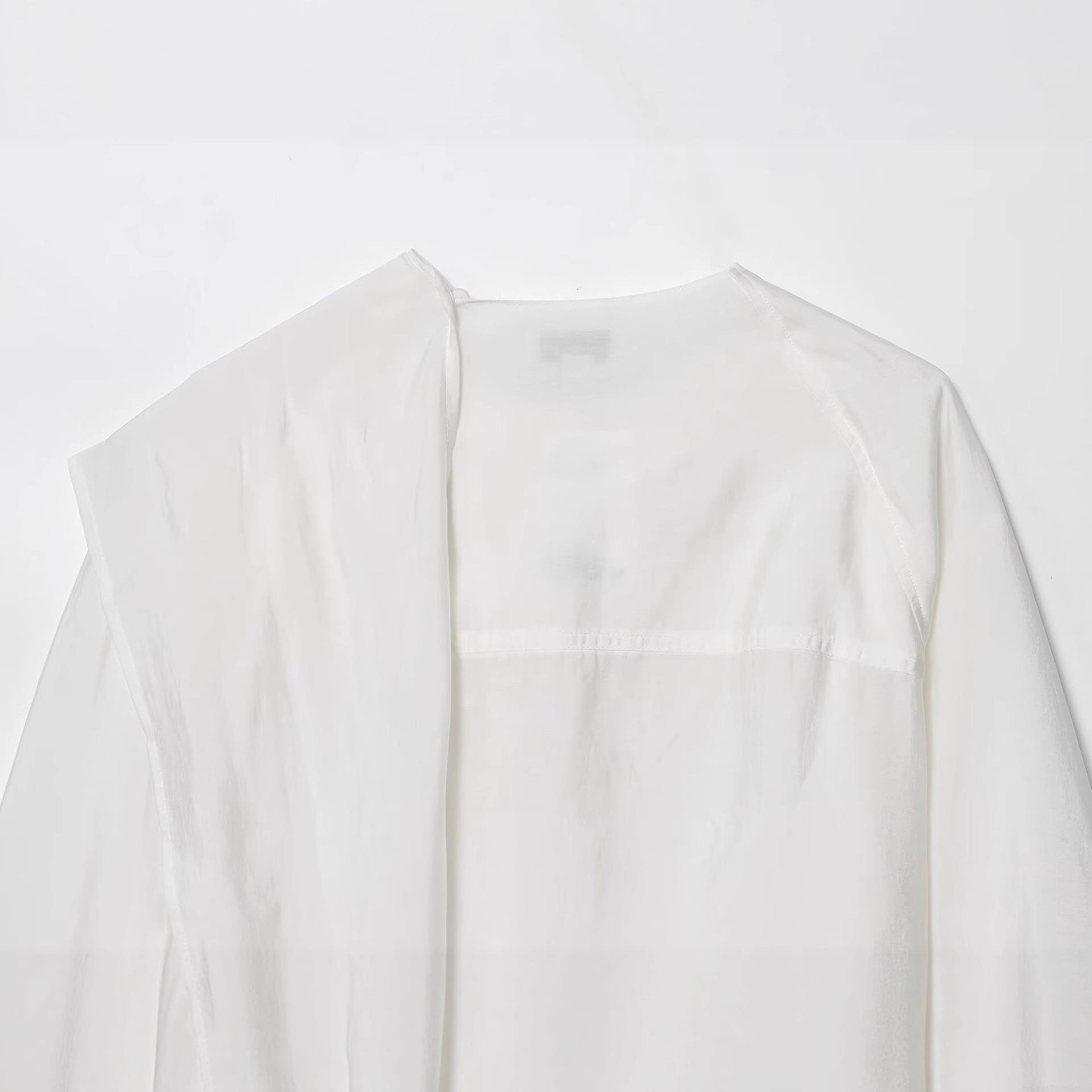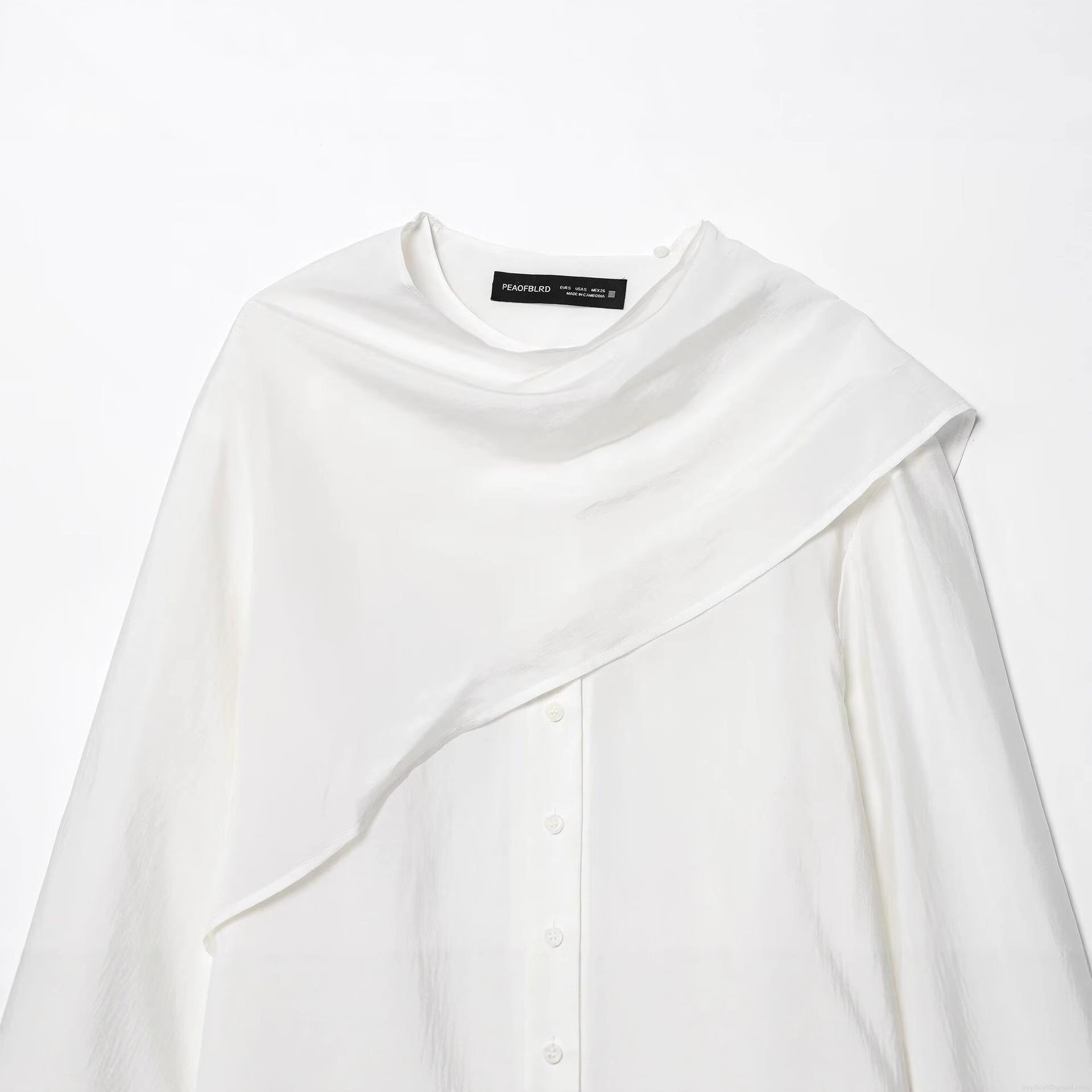 • Women's Chic Asymmetric Layered Blouse Long Sleeve Minimalist White Shirt Casual Office Top For Lady