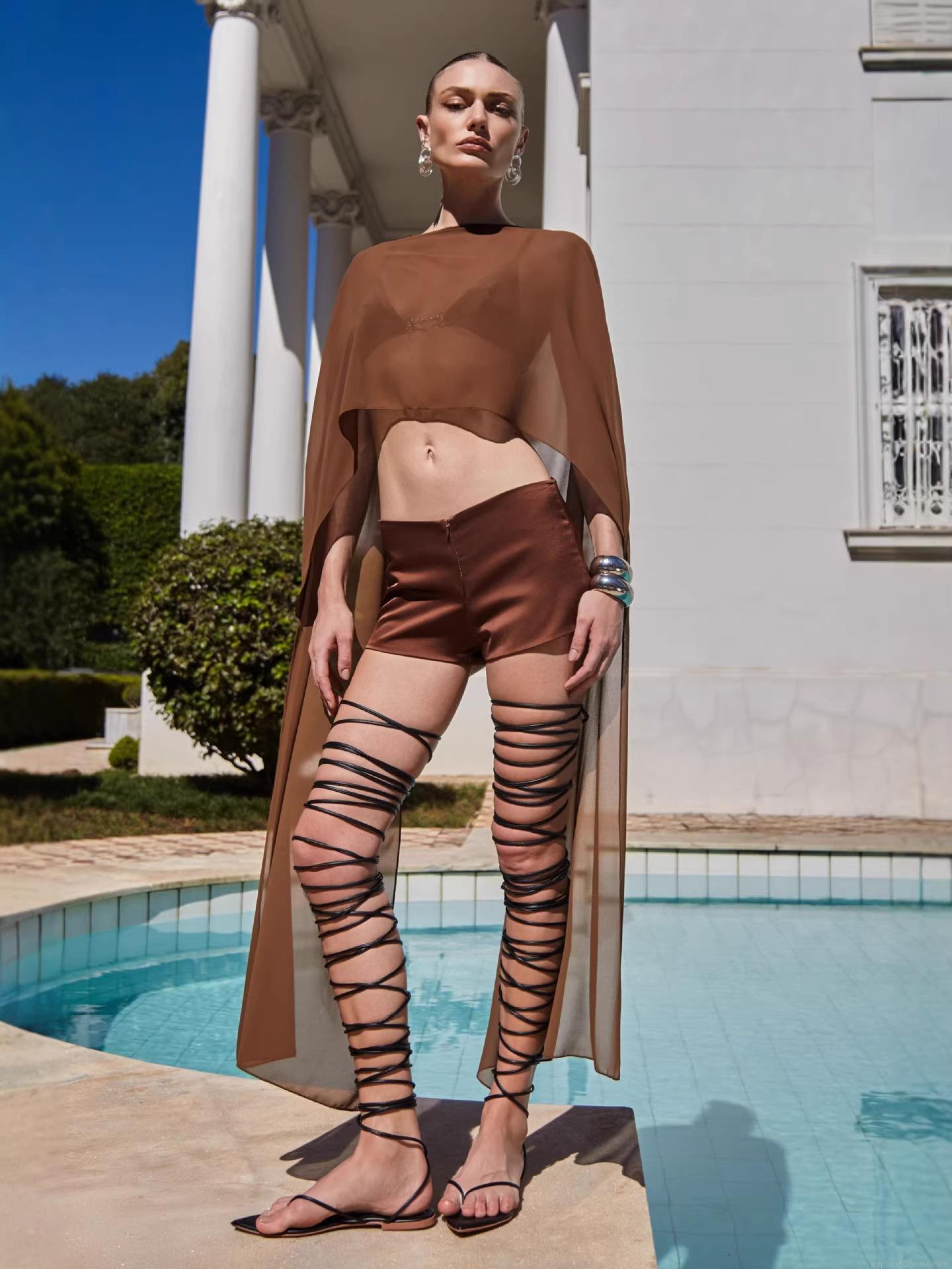 • Women's Chiffon Beach Cover-up Shawl Lightweight Sheer Sun Protection Cape Elegant Loose Fit Sleeveless Solid Color Holiday Resort Wear UV Protection Cardigan for Women
