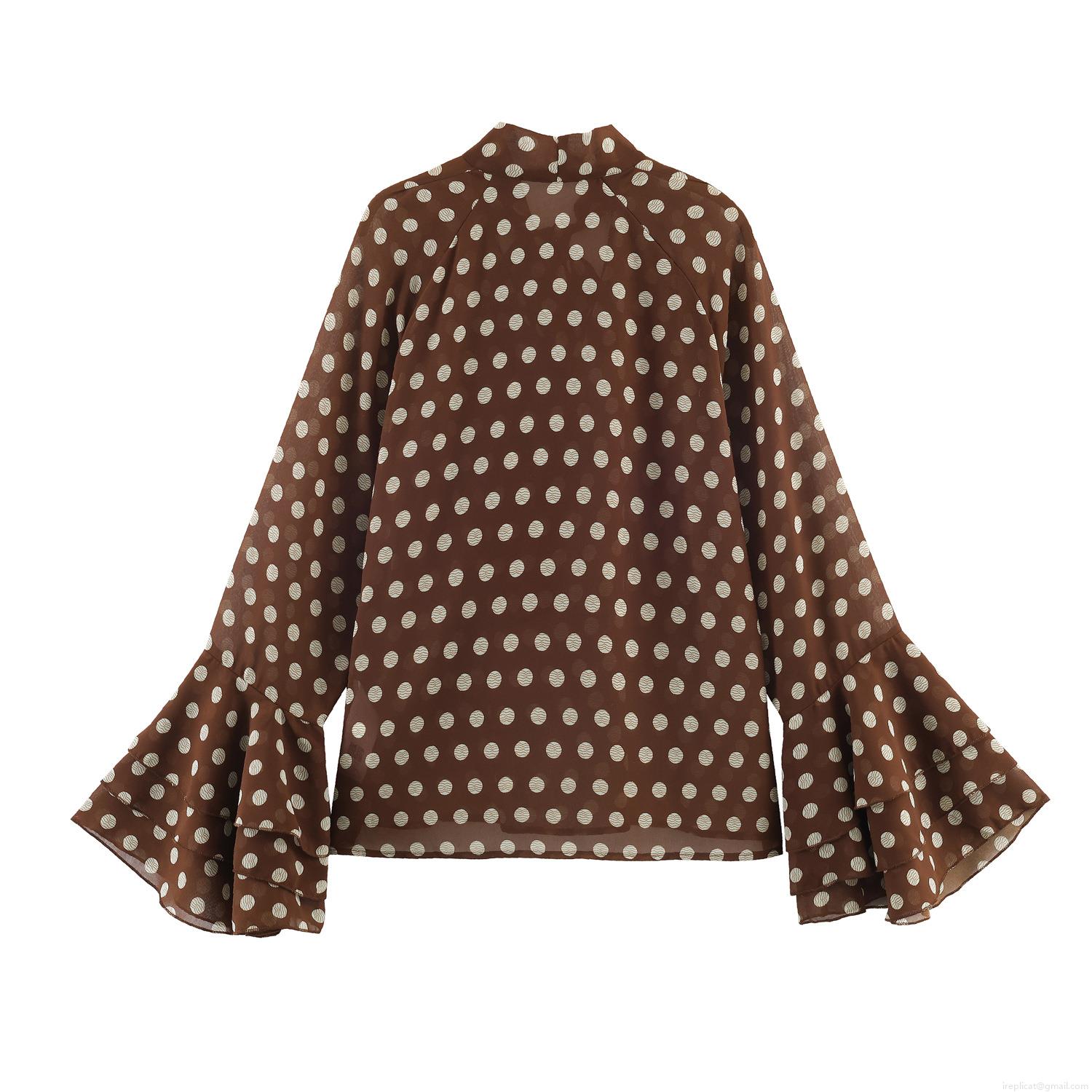 • Women's Chiffon Polka Dot Blouse Long Sleeve Trumpet Sleeve Pussy Bow Tie Neck Top Casual Commute Loose Polyester Shirt