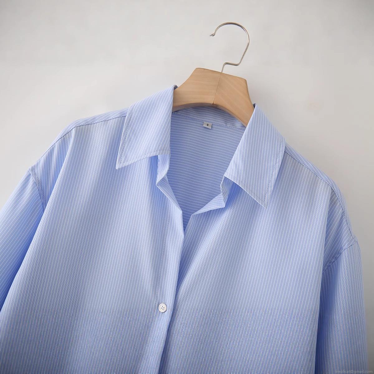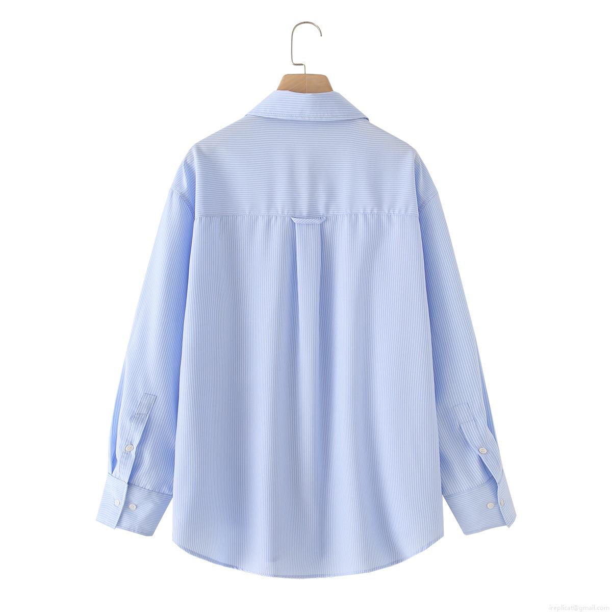 • Women's Classic Blue And White Striped Long Sleeve Oxford Shirt Button Down Lapel Collar Casual Office Blouse Tops For Women