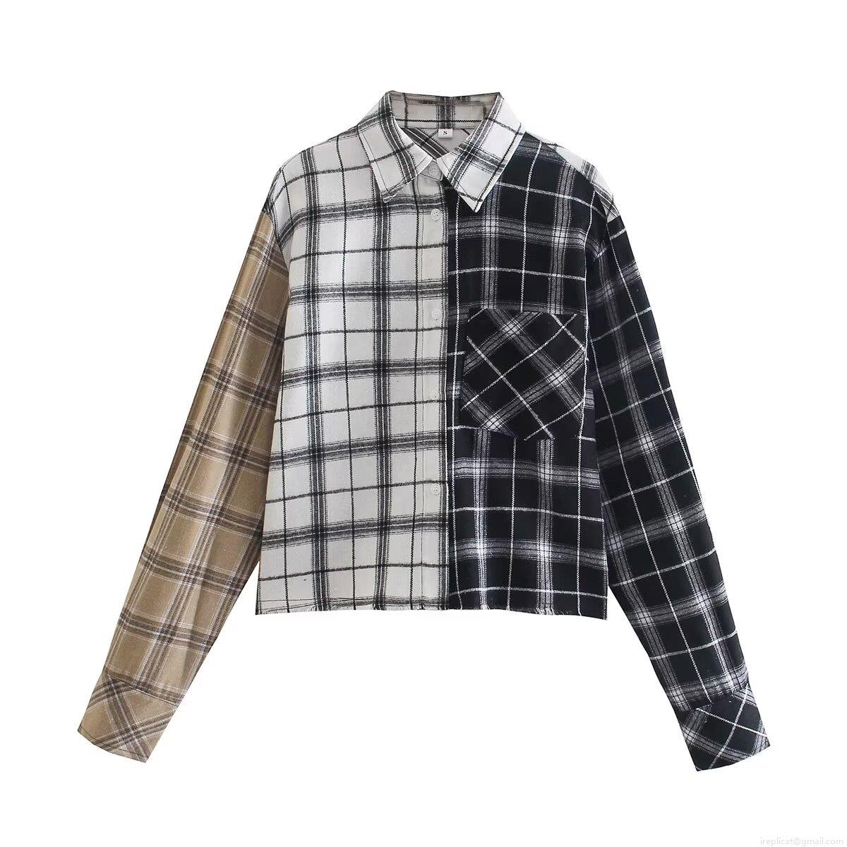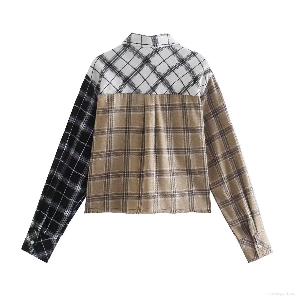 • Women's Colorblock Plaid Long Sleeve Shirt Casual Patchwork Polyester Button Down Blouse Elegant Office Socialite Style Tops For Daily Wear