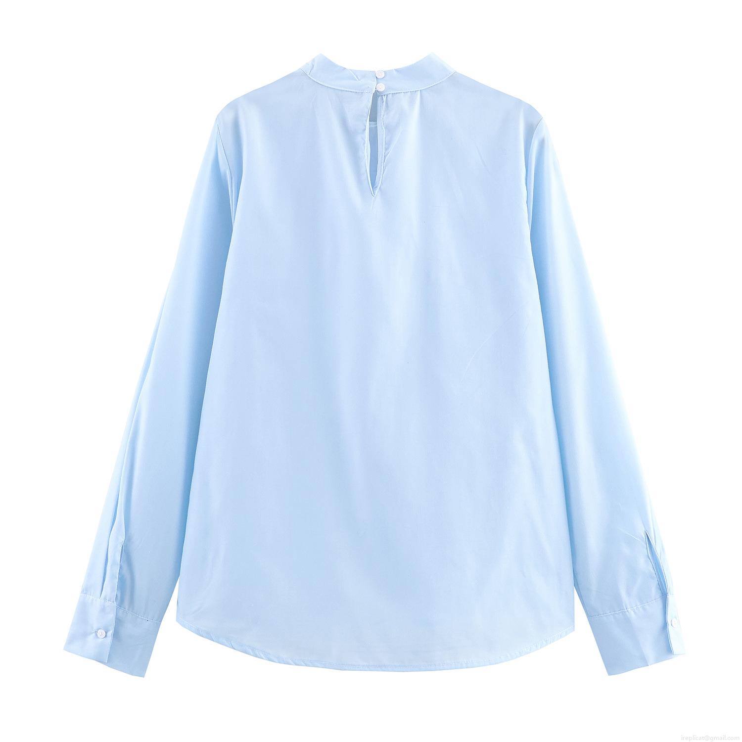 • Women's Commute Long Sleeve Mock Neck Blouse Polyester Solid Color Pullover Top With Decorative Bow Metal Buckle Elegant Shirt