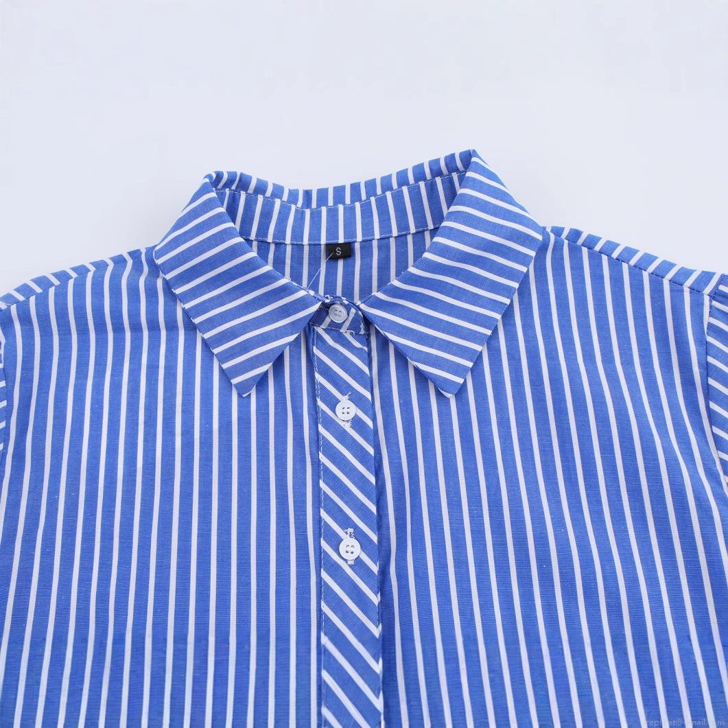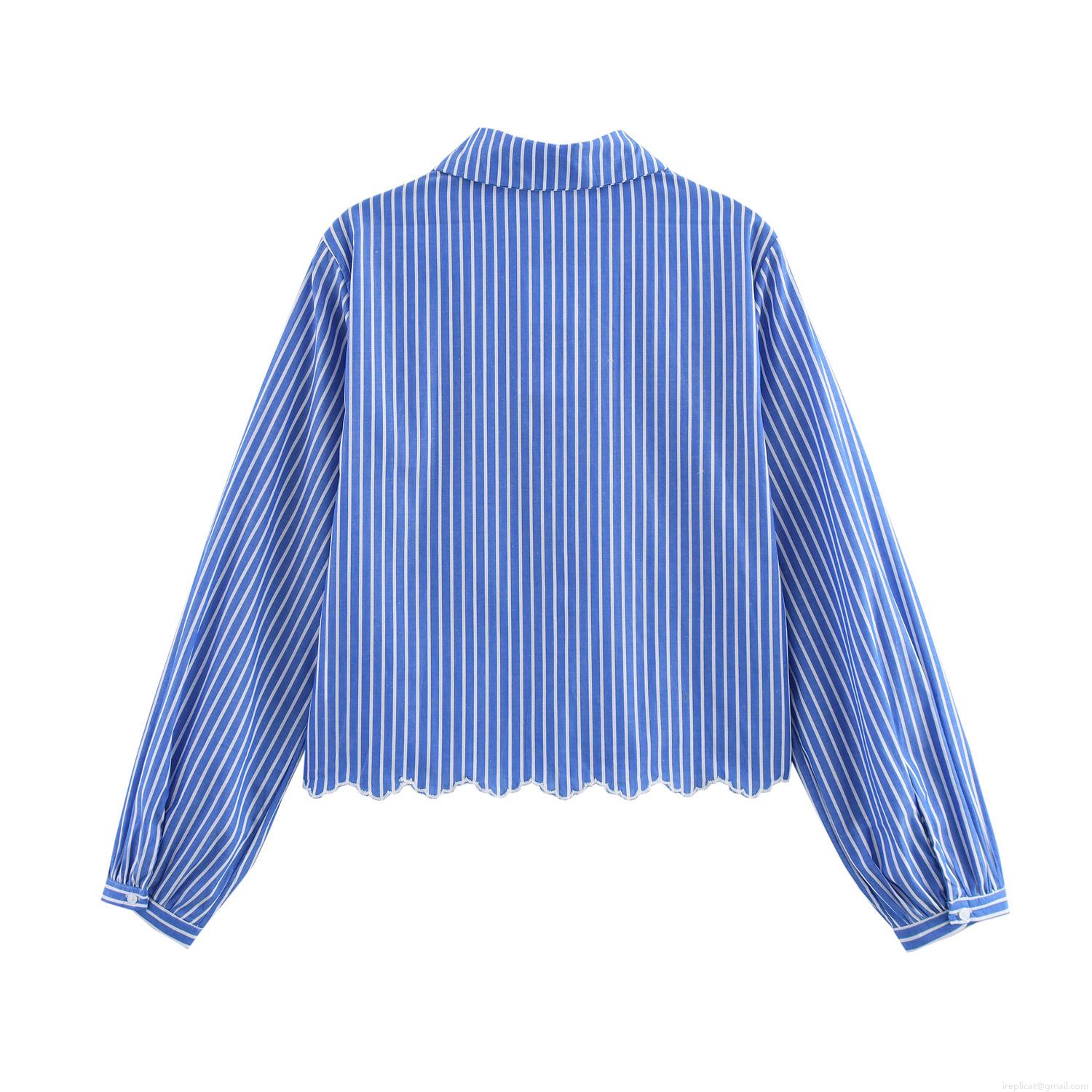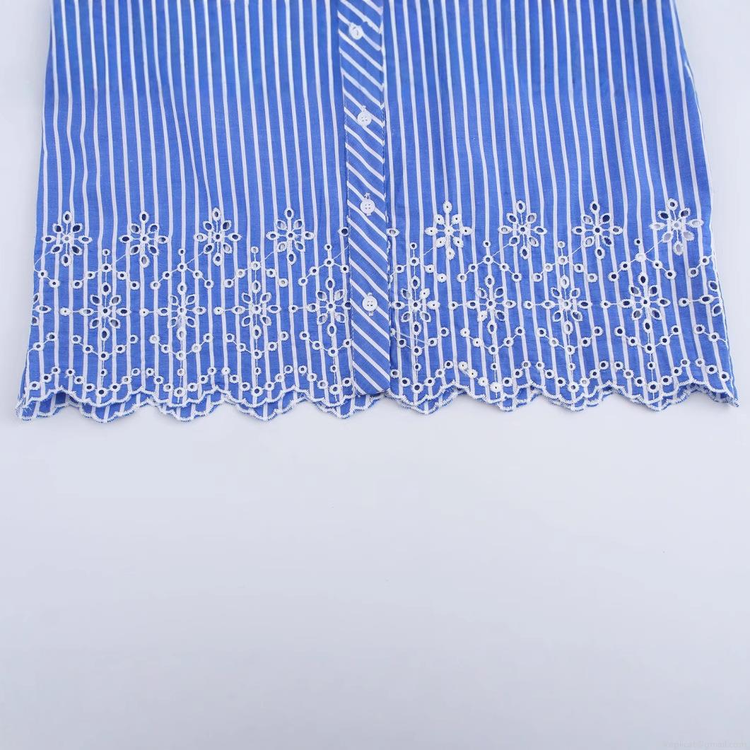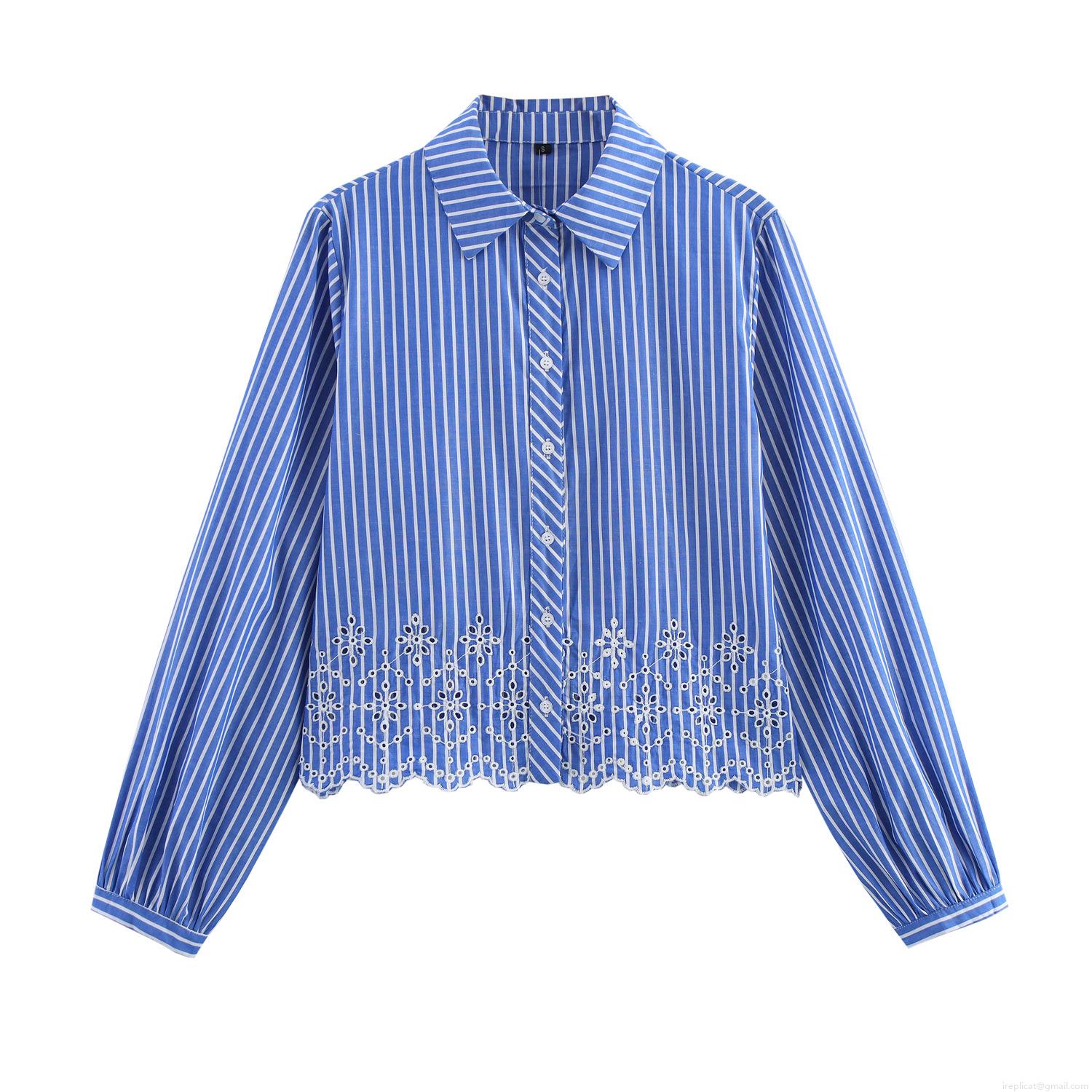 • Women's Cotton Blend Striped Long Sleeve Shirt With Embroidery Hollow Out Eyelet Hem Casual Button Down Blouse Top For Summer Spring
