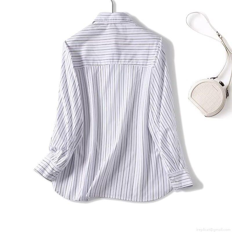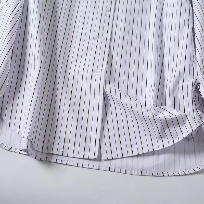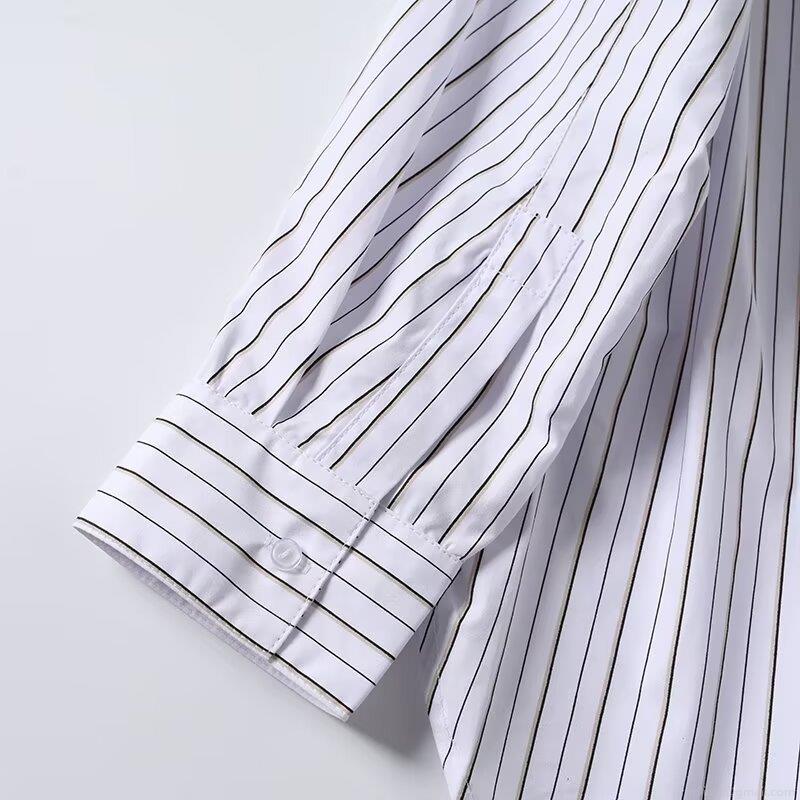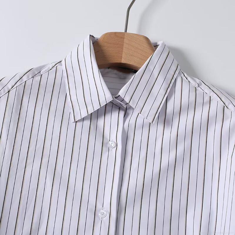 • Women's Elegant 100% Cotton Vertical Striped Long Sleeve Shirt Minimalist Button Up Lapel Collar Blouse For Office Casual Commuting Breathable Top