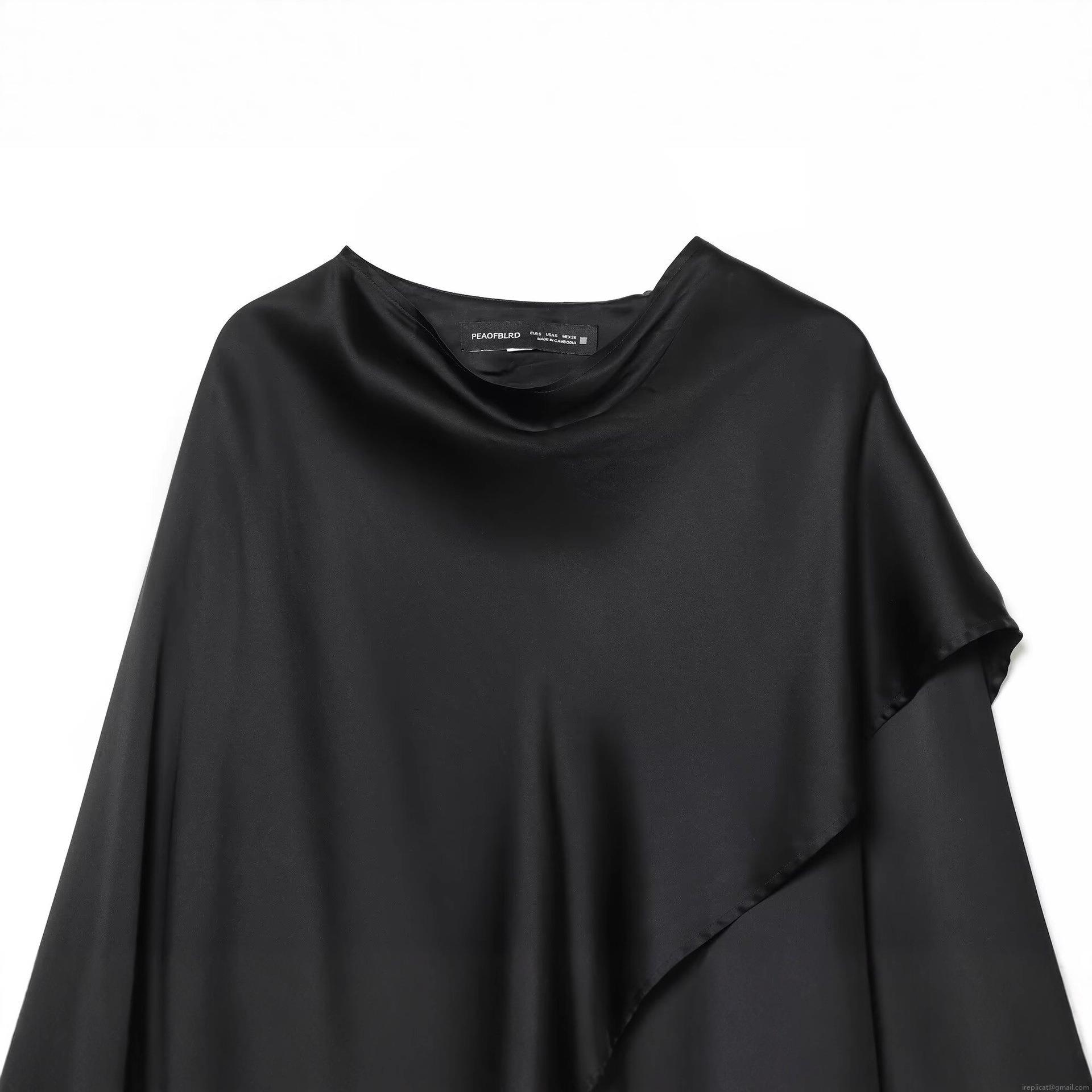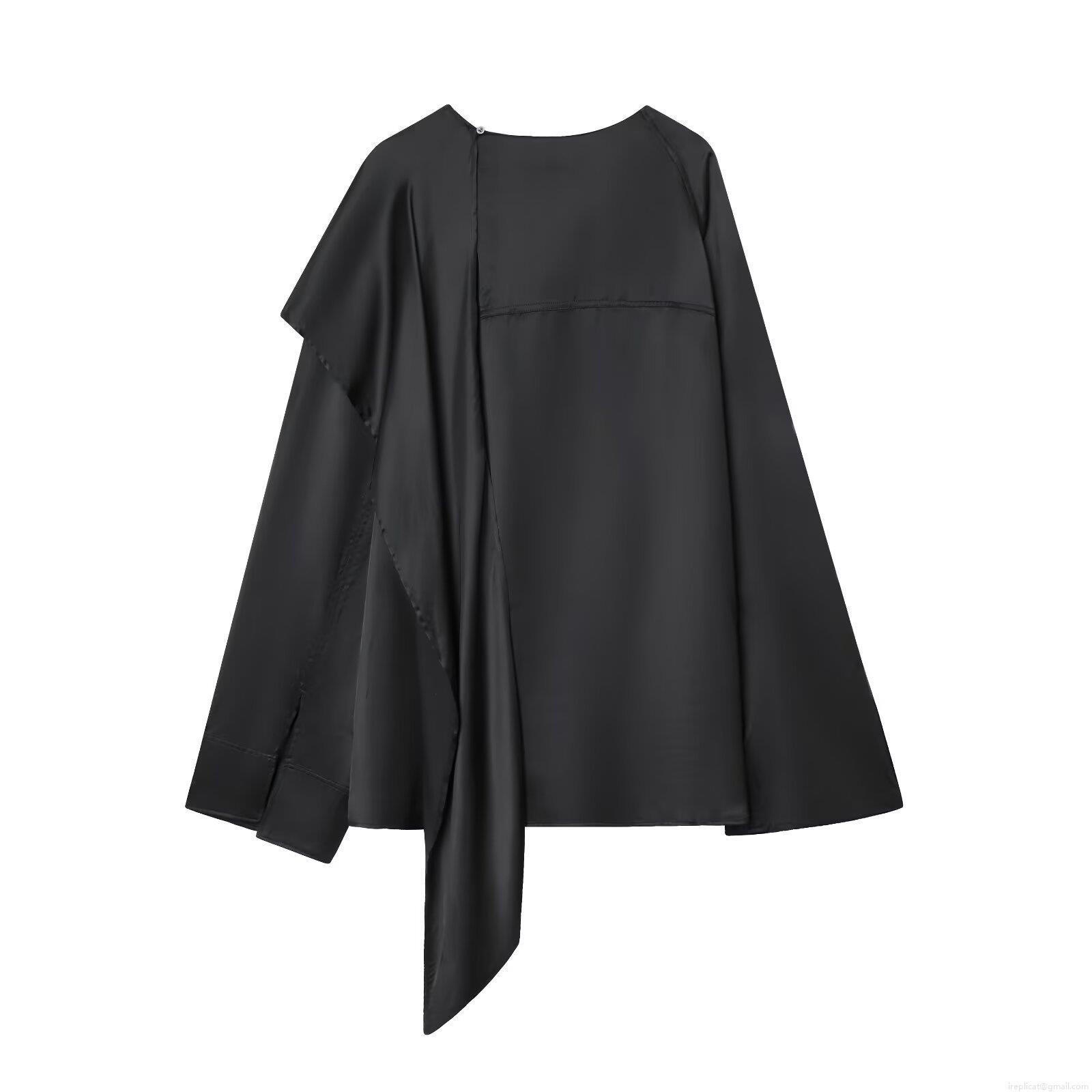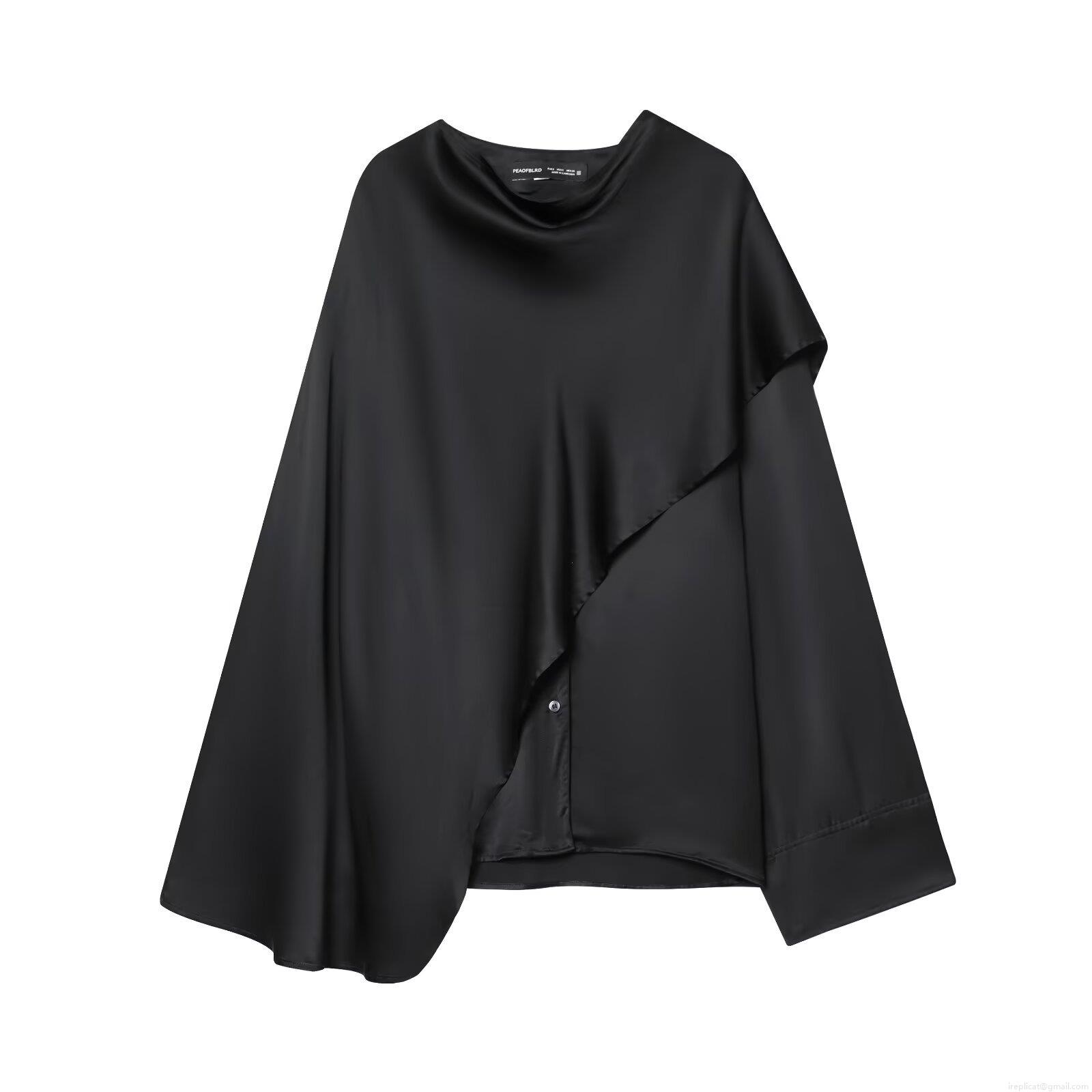 • Women's Elegant Acetate Satin Asymmetric Blouse Long Bell Sleeve Cowl Neck Pullover Top French Style Casual Party Shirt
