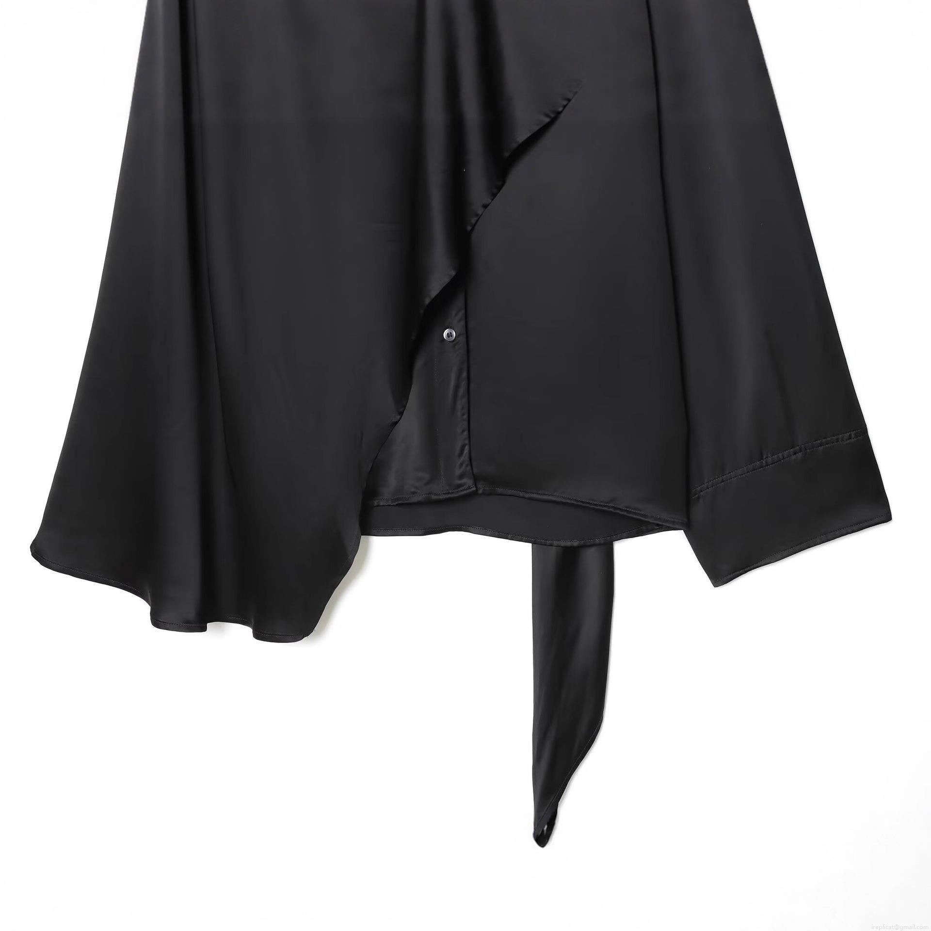 Women's Elegant Acetate Satin Asymmetric Blouse Long Bell Sleeve Cowl Neck Pullover Top French Style Casual Party Shirt