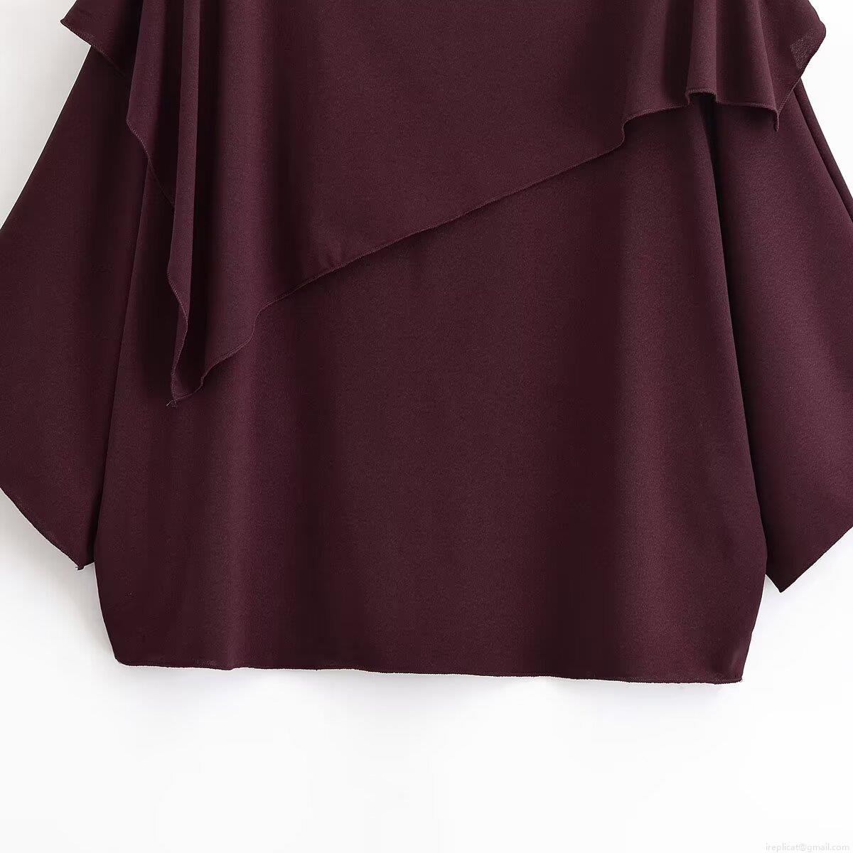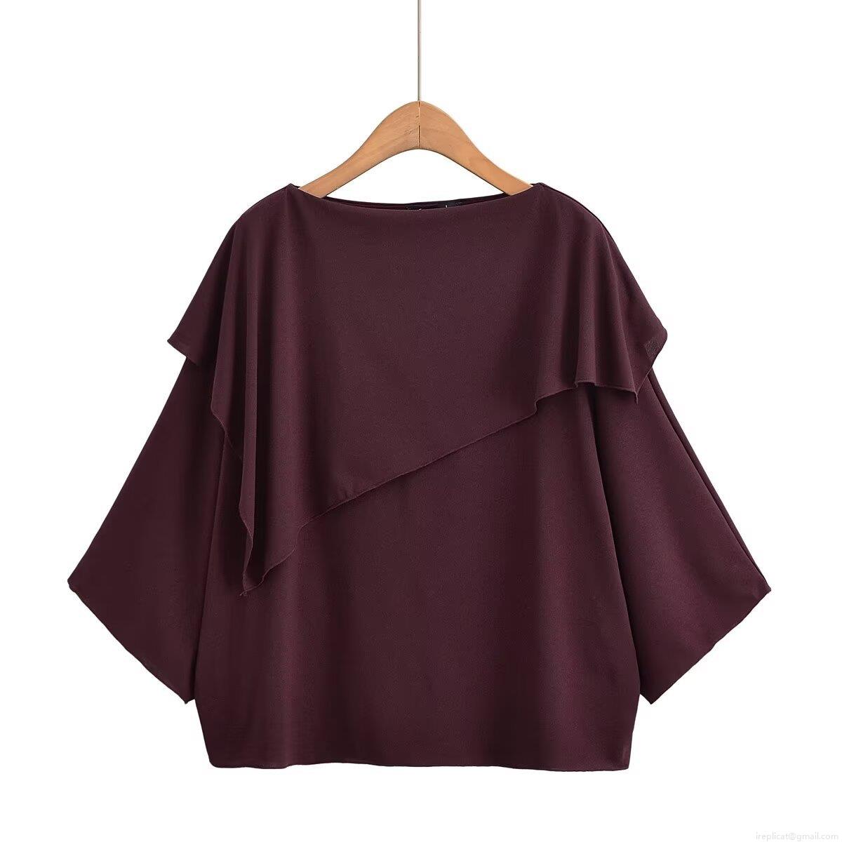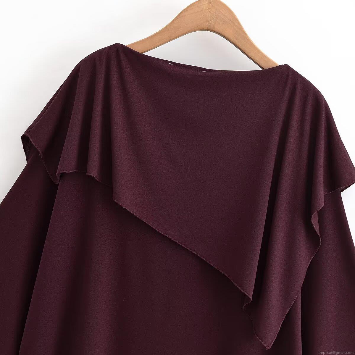 Solid Color, Ruffles, Layered Decoration, Batwing Sleeves, Asymmetrical Design