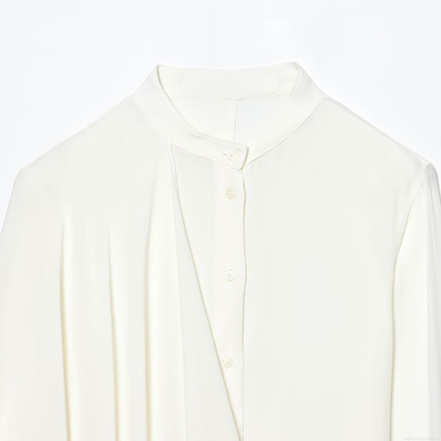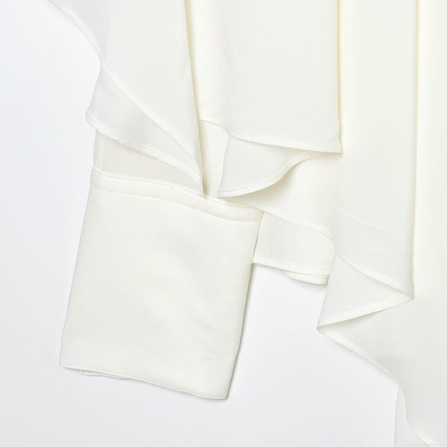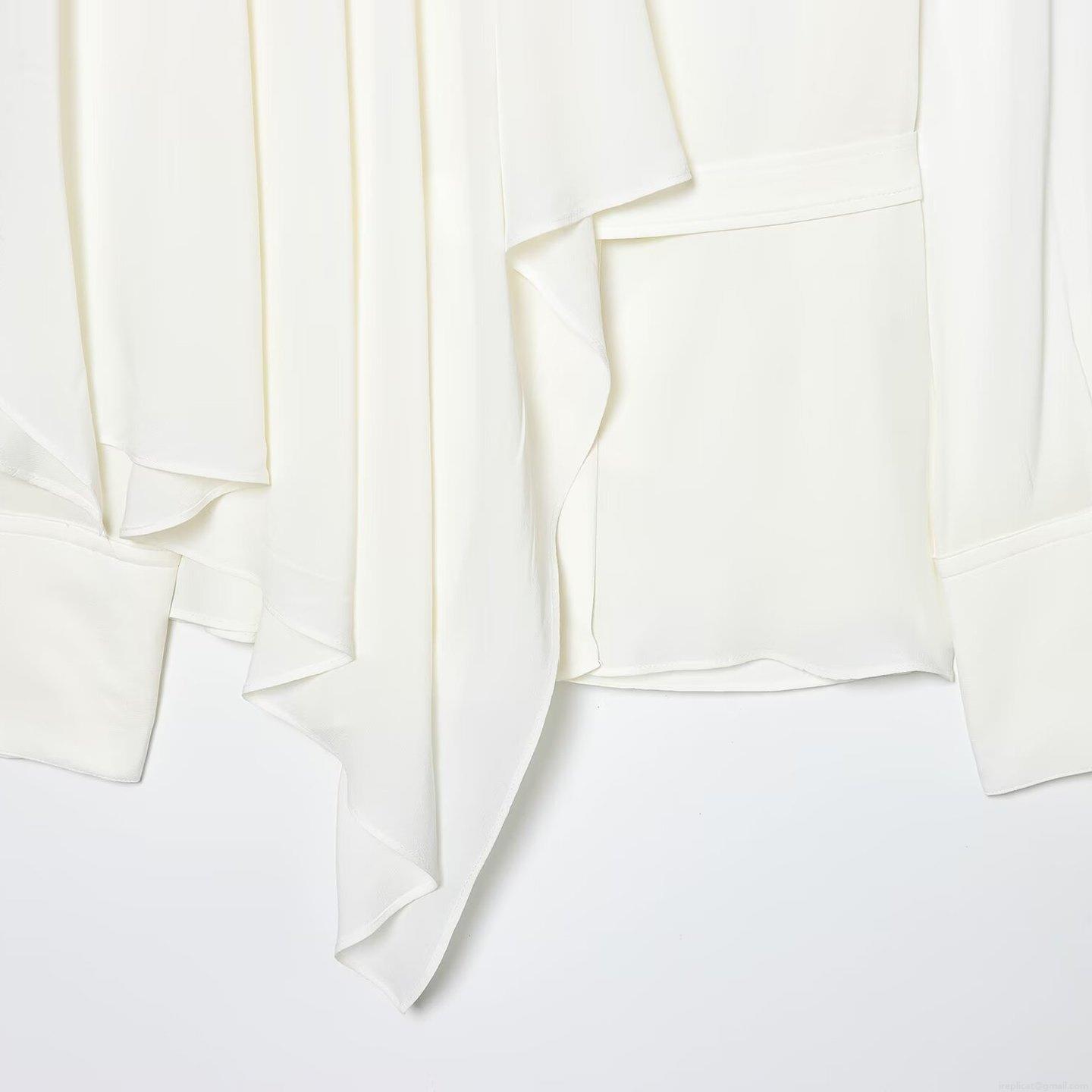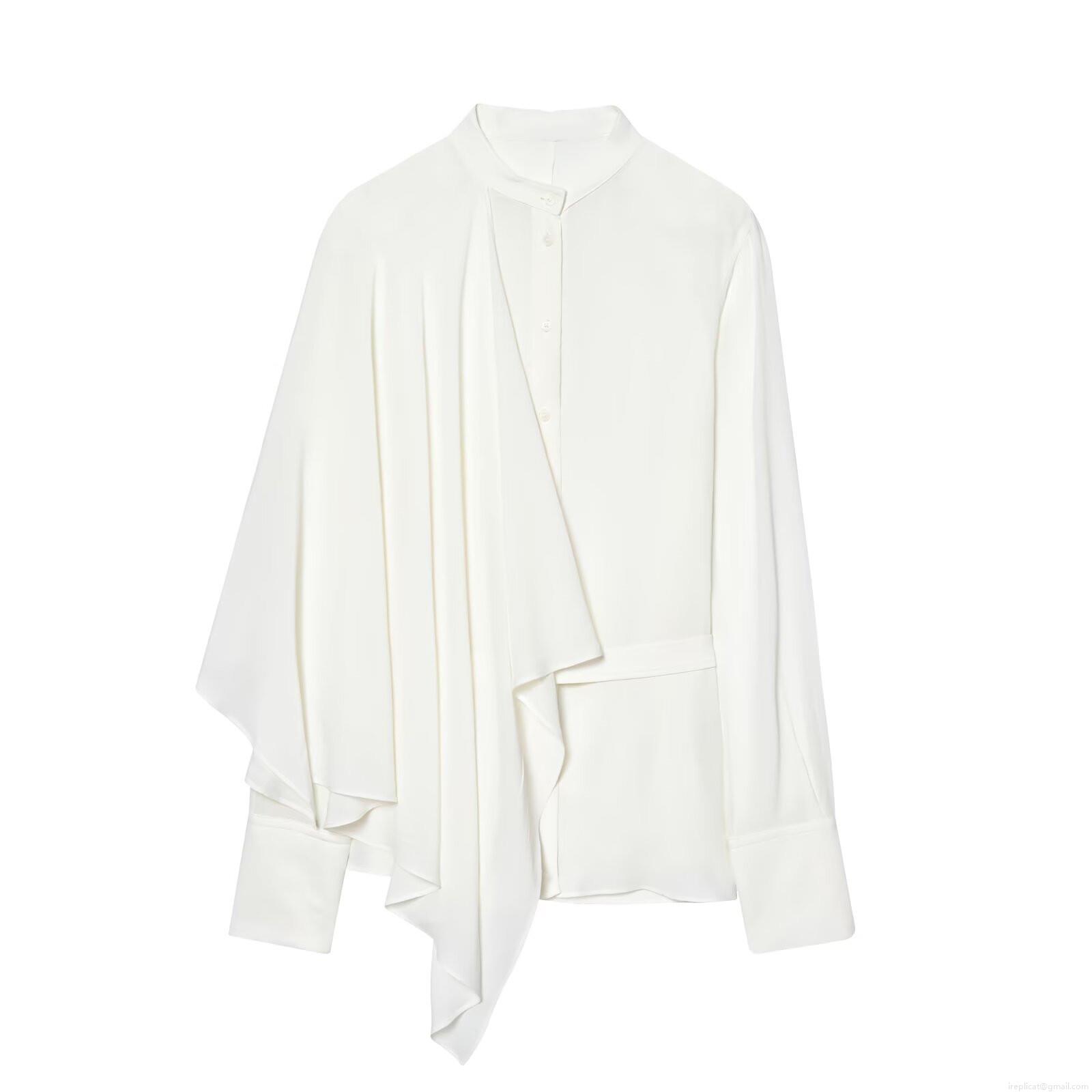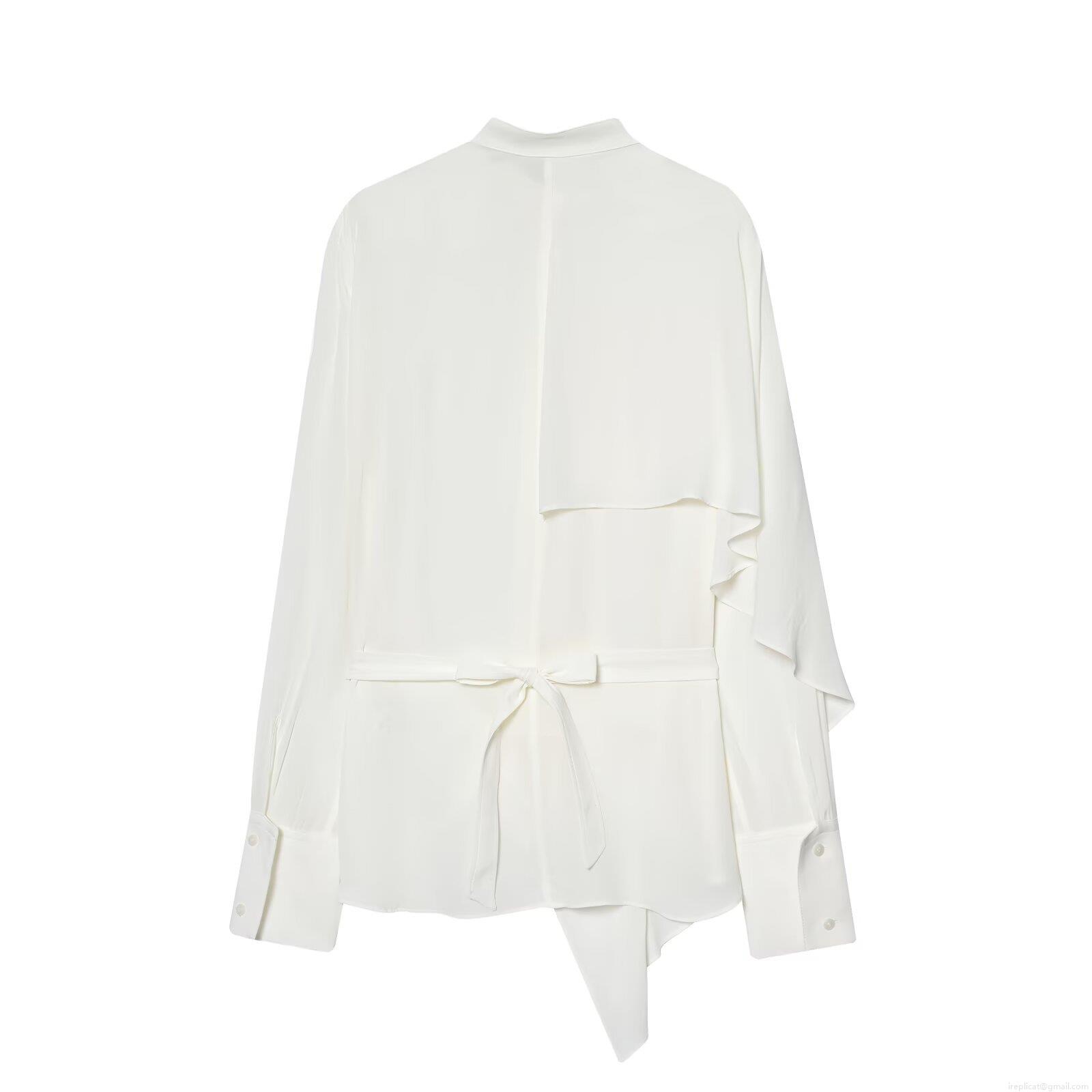 • Women's Elegant Asymmetrical Satin Blouse Long Sleeve Stand Collar Shirt Solid White Silk-Like Draped Top With Belt For Office Lady Commuting Chic Fashion