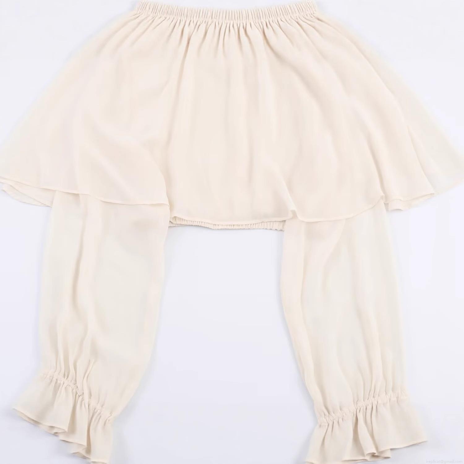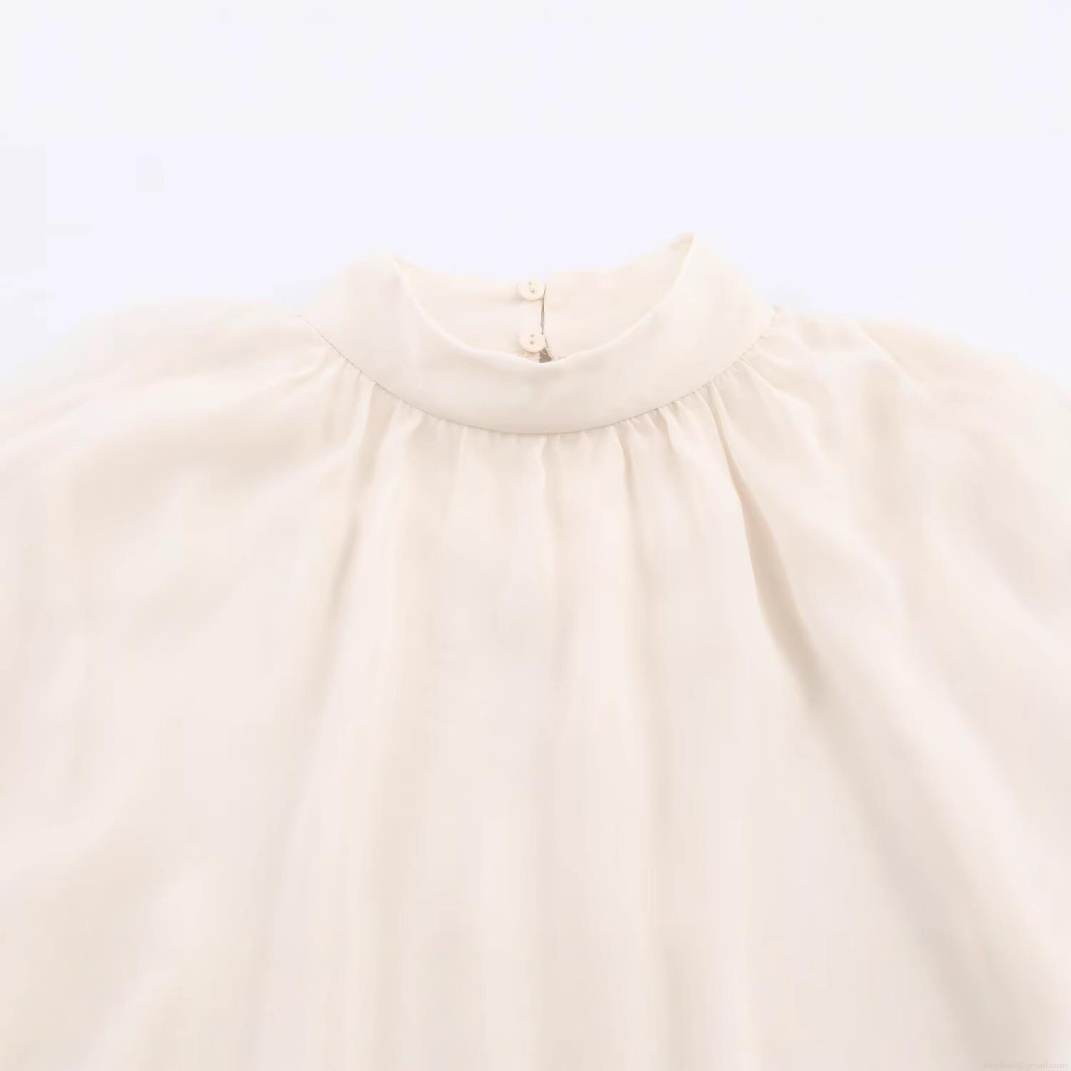 • Women's Elegant Chiffon Blouse Ruffle Cape Design Half High Neck Long Lantern Sleeve Solid Color Pleated Top For Office Casual Wear