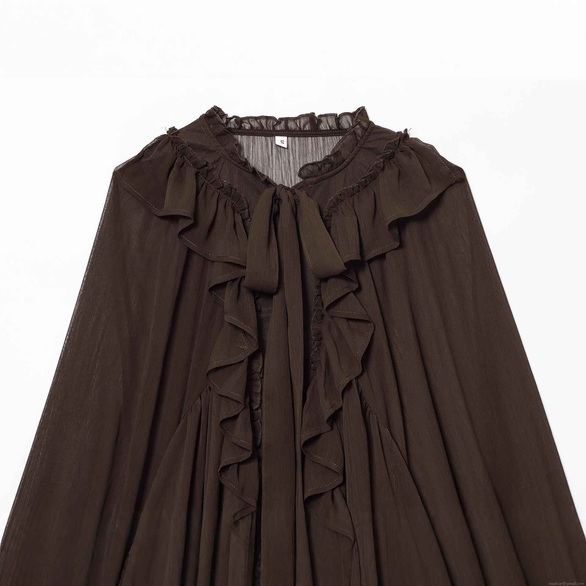 • Women's Elegant Chiffon Blouse Ruffle Tie Neck Long Lantern Sleeve Solid Color Casual Shirts For Ladies Office Party Wear Tops