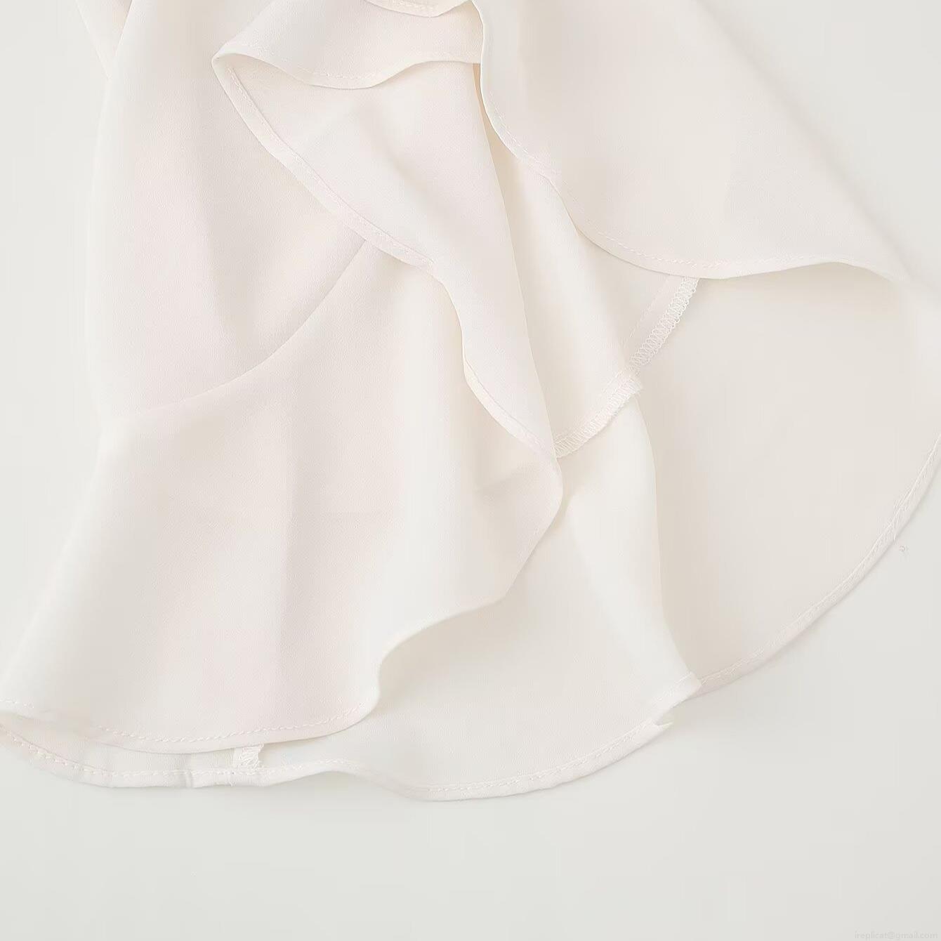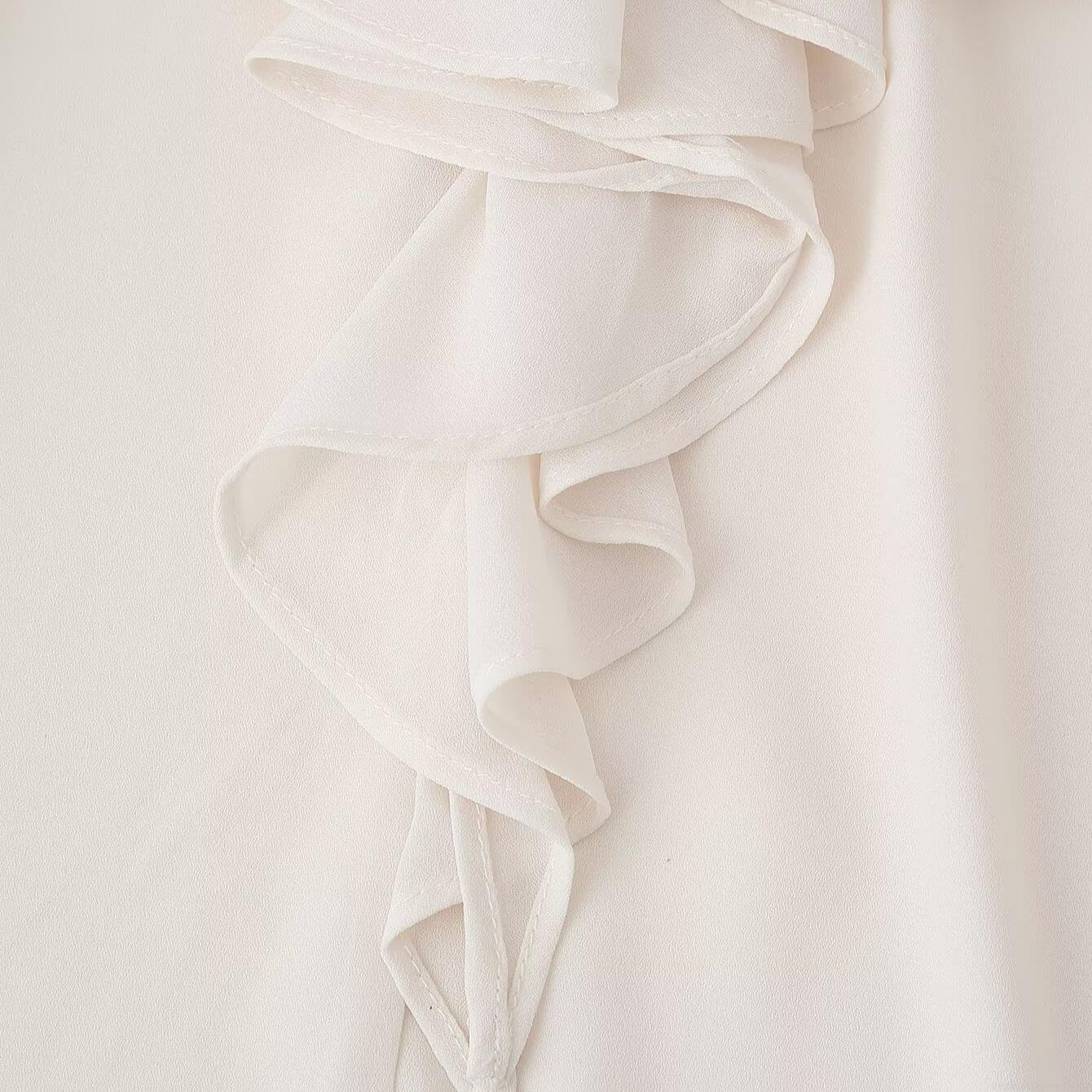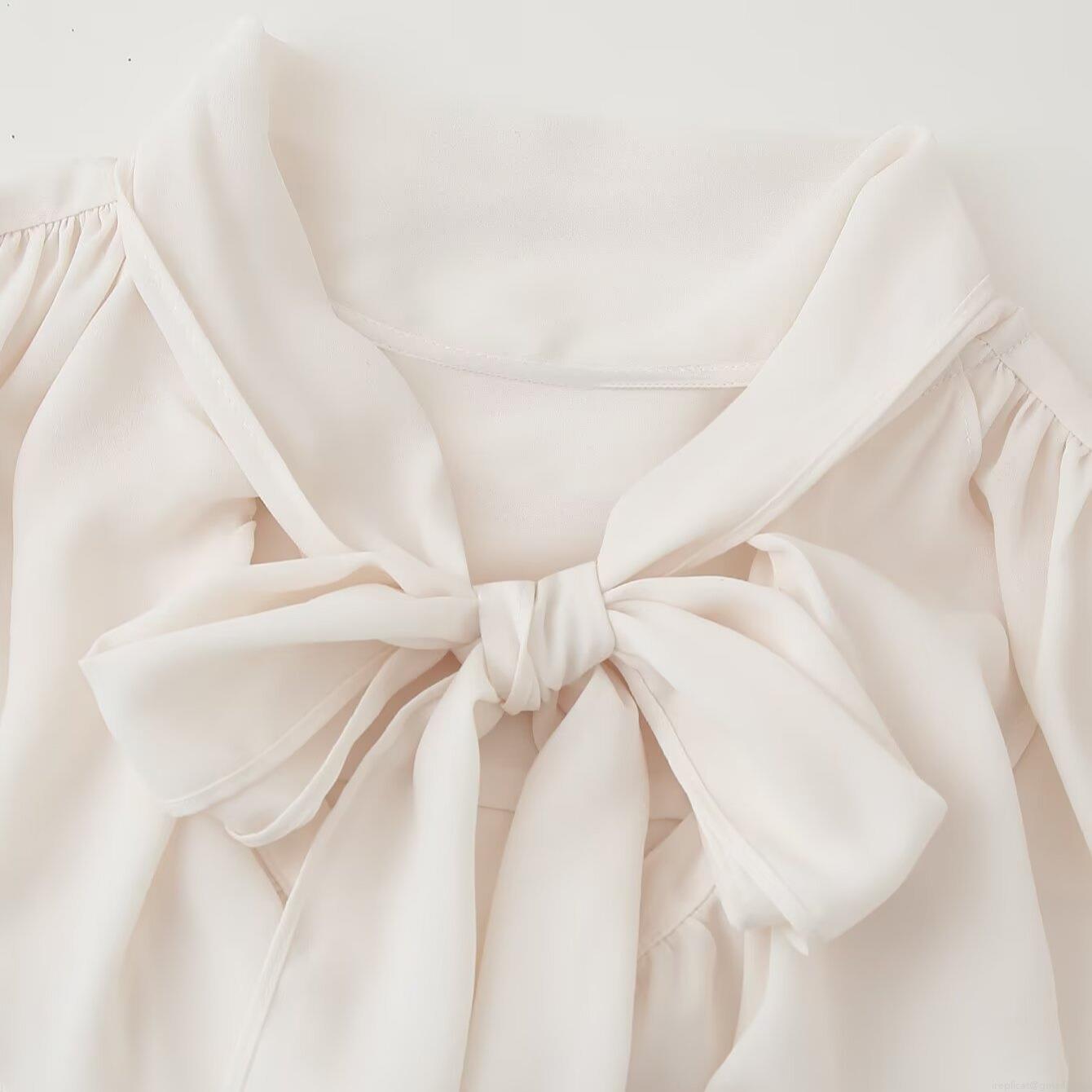 • Women's Elegant Chiffon Long Sleeve Blouse With Bow Tie Neckline And Ruffle Cuffs Solid Color Creamy White Office Commuter Shirt For Women