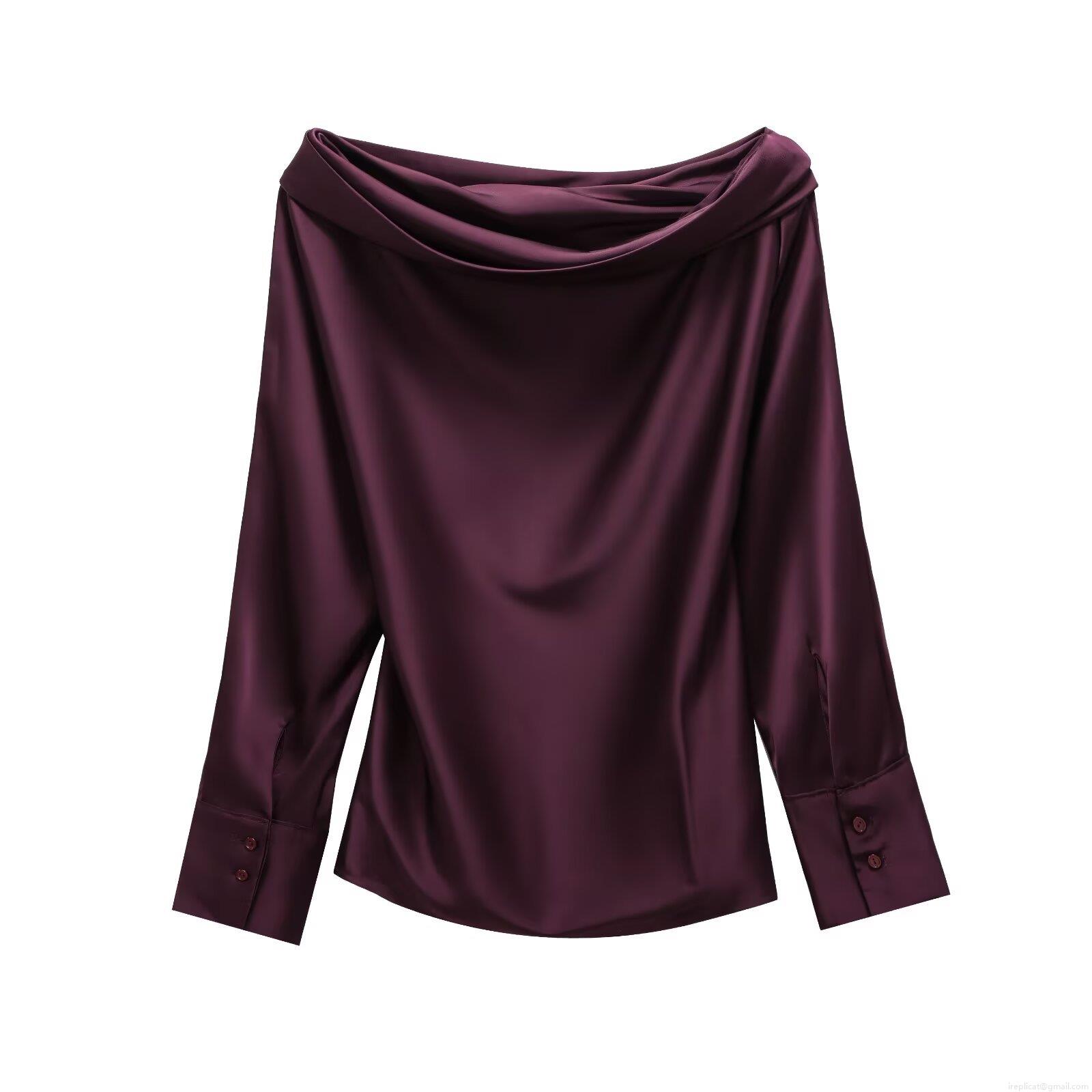 • Women's Elegant Cowl Neck Satin Long Sleeve Top Casual Loose Drape Pullover Solid Color Silky Polyester Blouse for Party Daily Autumn Winter