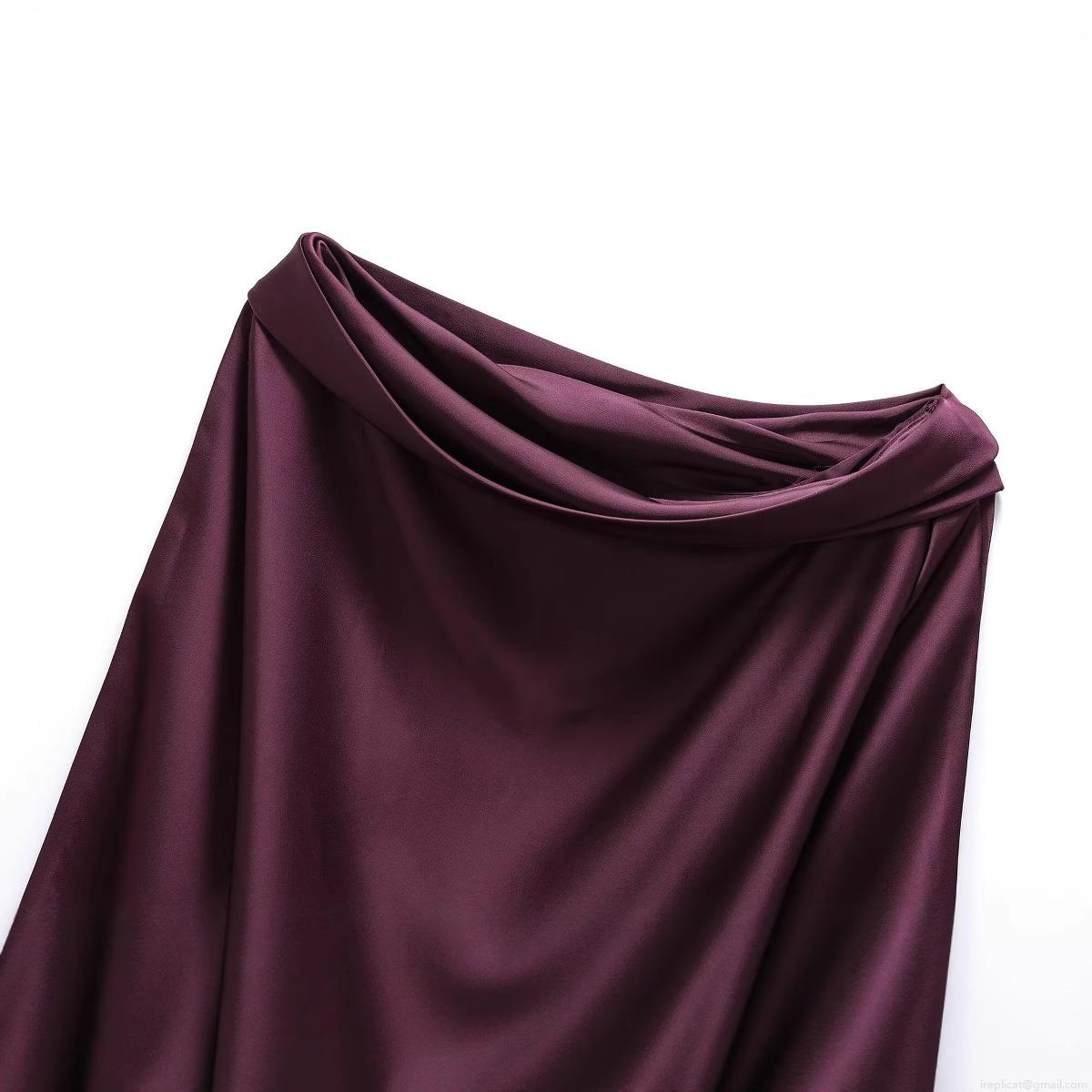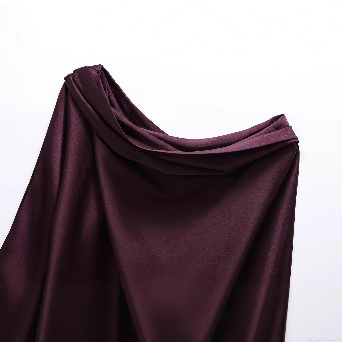 Solid Color, Off-the-shoulder Neckline, Asymmetrical Design, Pleated Design, Stack Collar