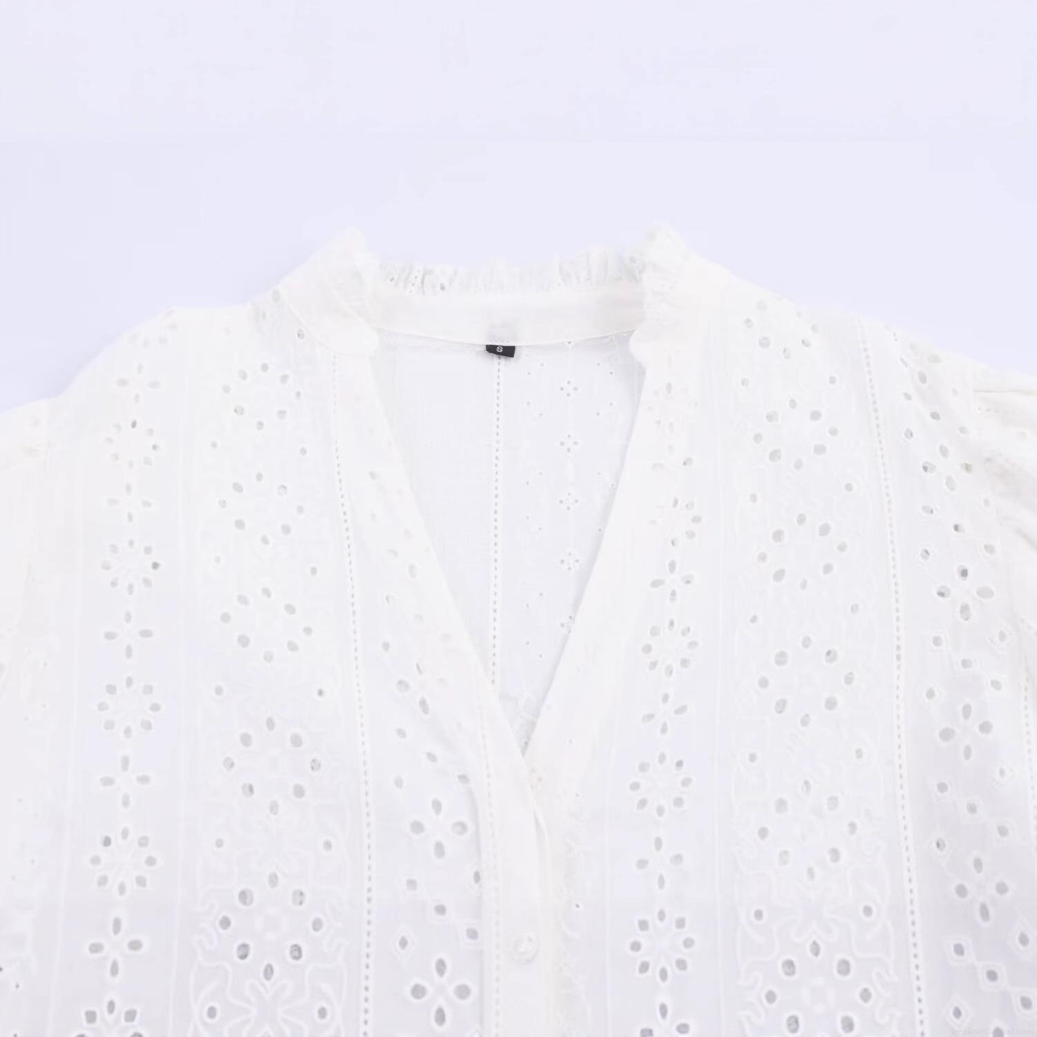 Wood Ear Edge, Puff Sleeves, Openwork Embroidery, Floral Hollow