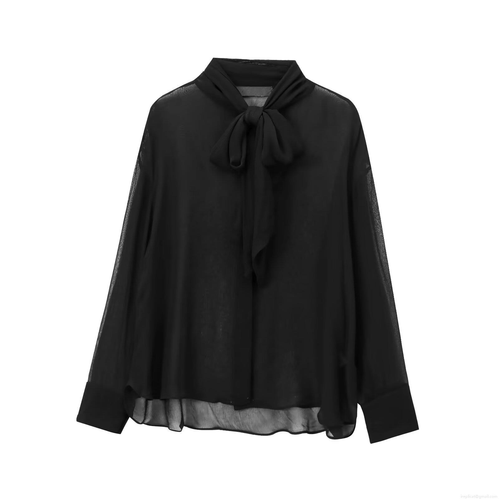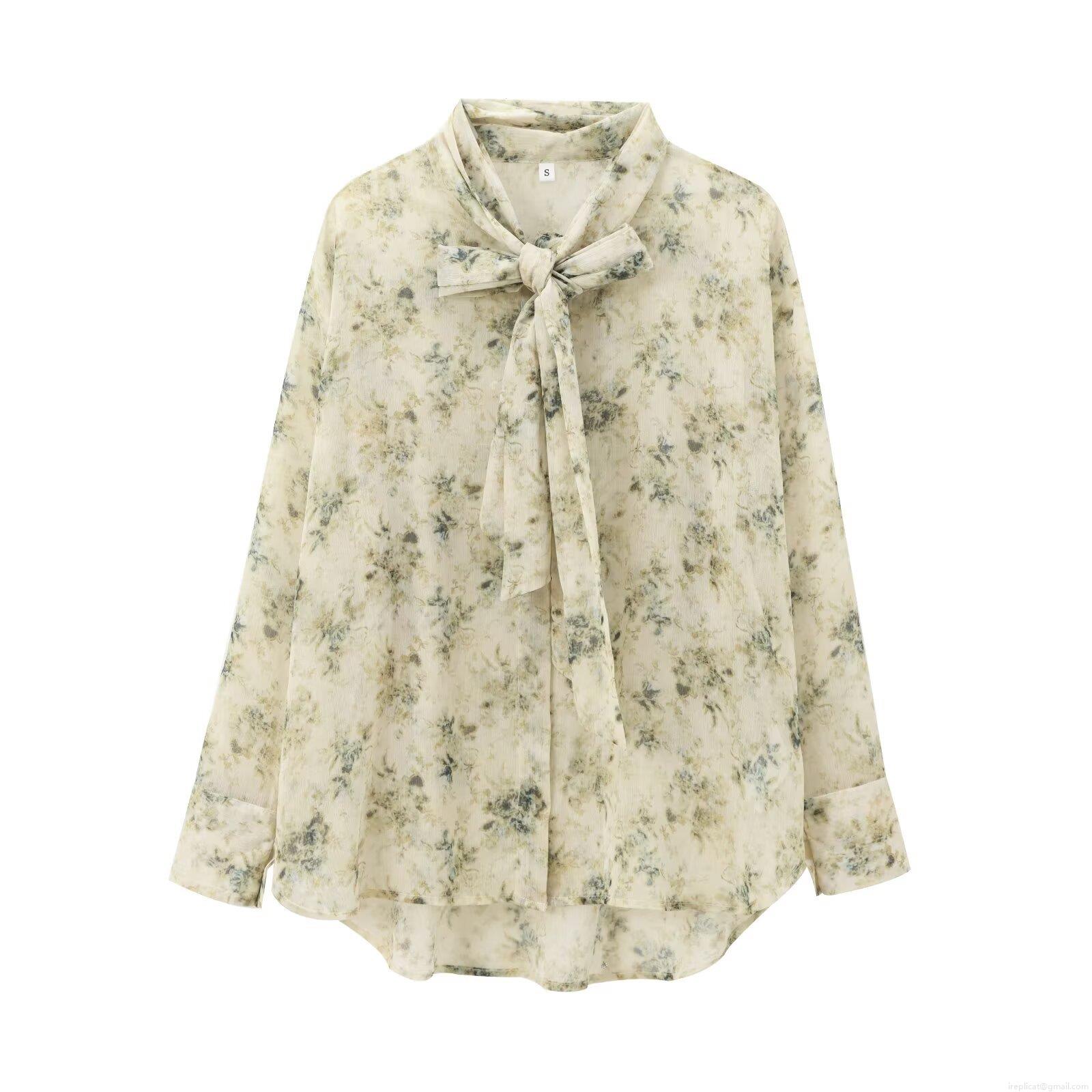 • Women's Elegant Floral Bow Tie Neck Chiffon Blouse Long Sleeve Button Up Shirt Casual Office Lady Lightweight Polyester Tops Spring Autumn Fashion
