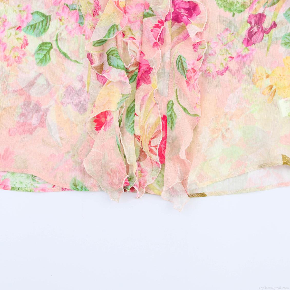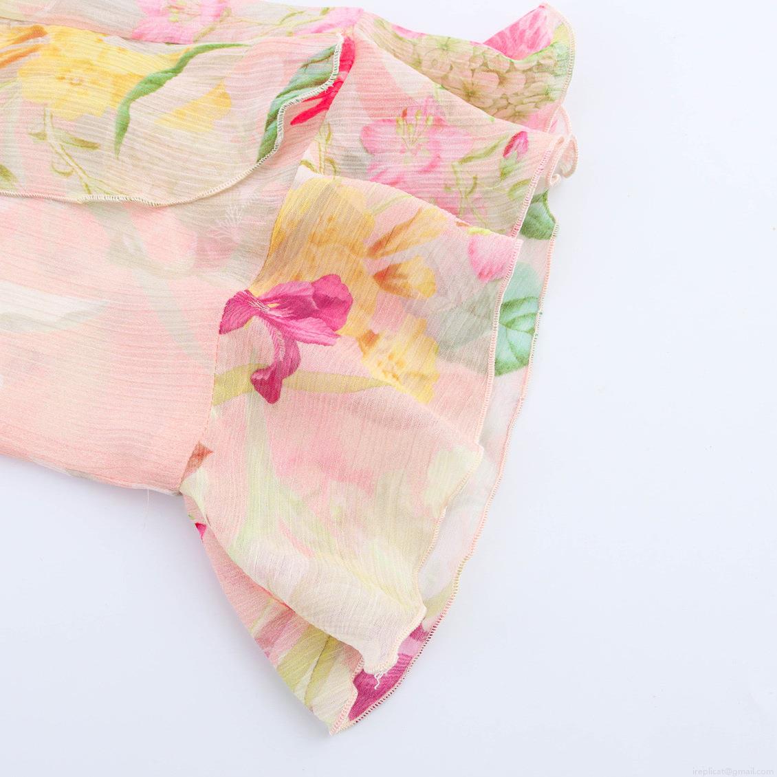 Women's Elegant Floral Chiffon Blouse V Neck Layered Ruffles Long Flare Sleeve Pullover Top For Casual Dating Women Pink