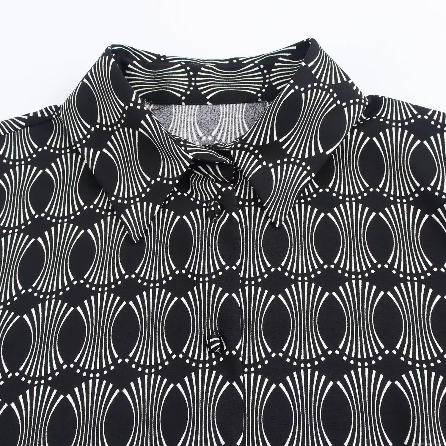 • Women's Elegant Geometric Print Lapel Long Sleeve Satin Blouse Single Breasted Button Up Commuter Office Casual Loose Shirt Top