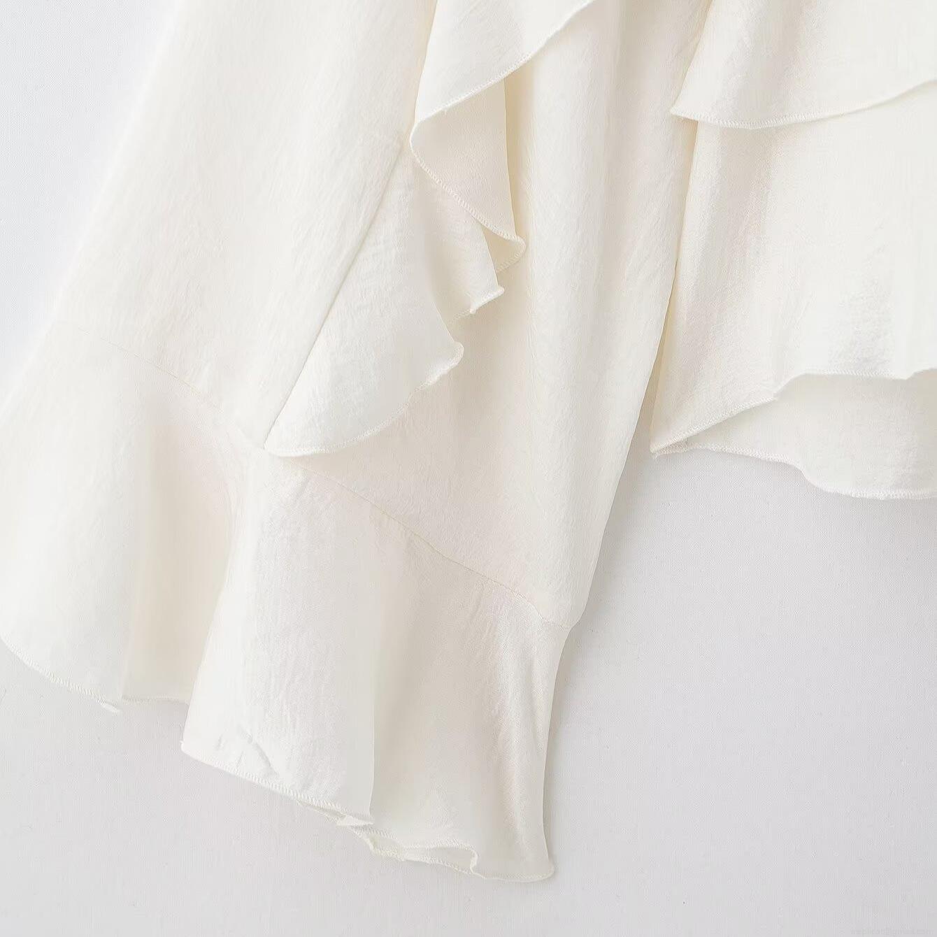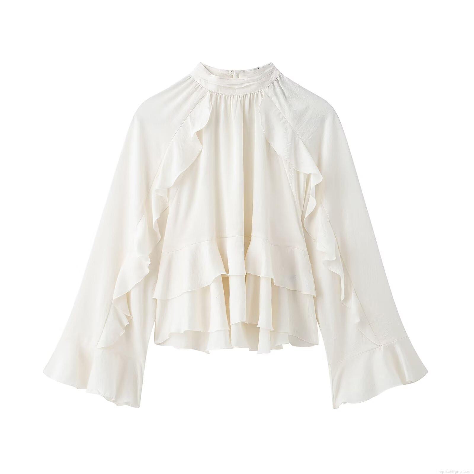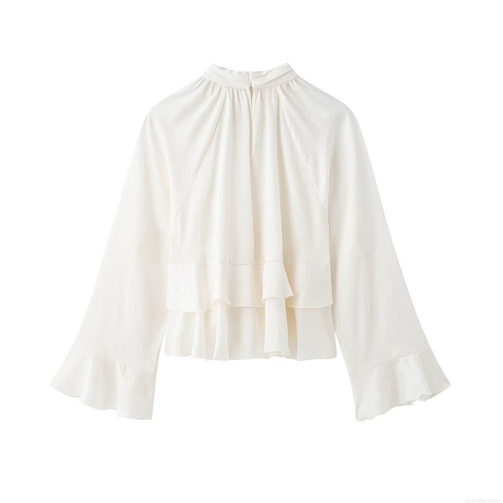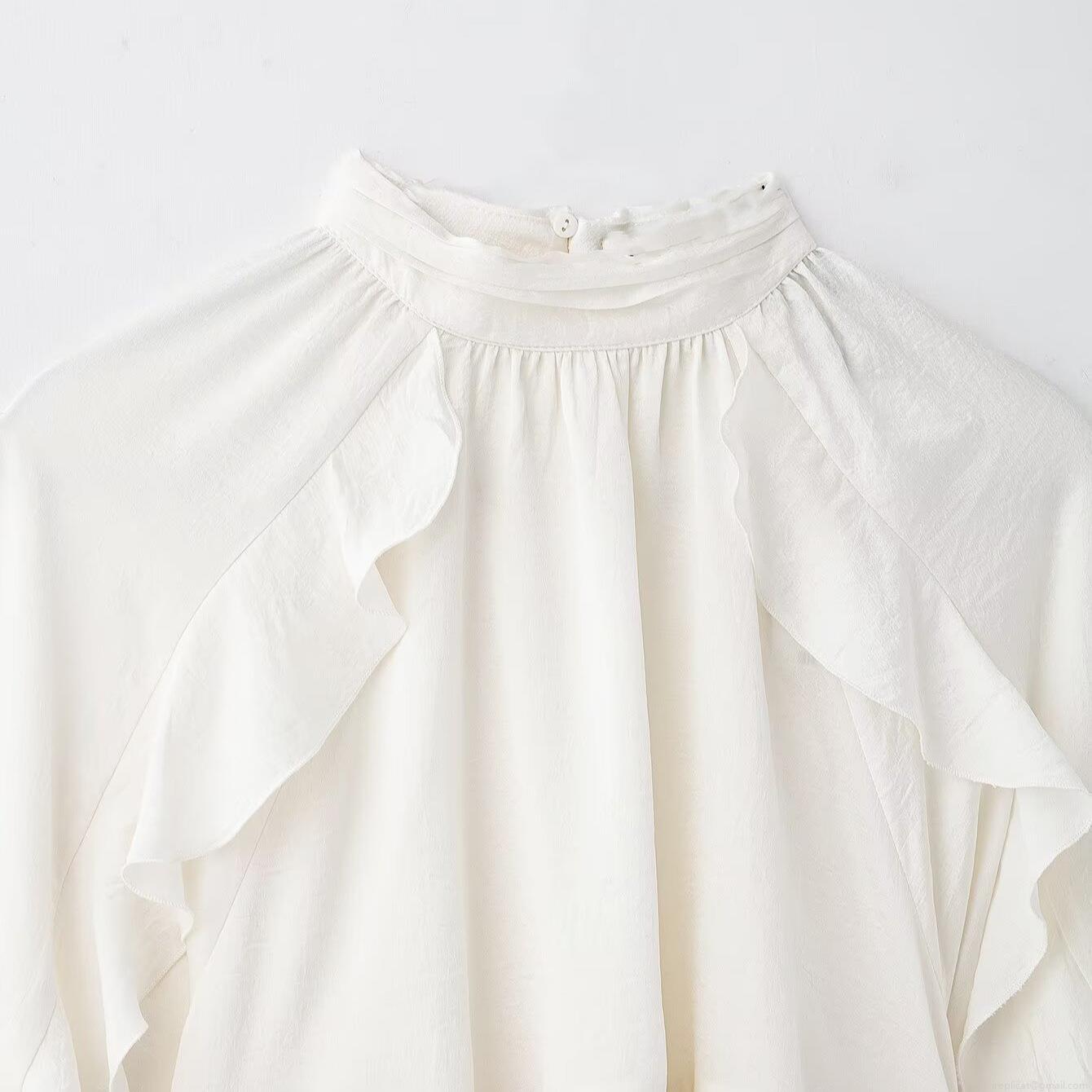 • Women's Elegant High Neck Ruffle Blouse Long Sleeve Solid Color Layered Pullover Top Fashion Polyester Spandex Commuter Shirt
