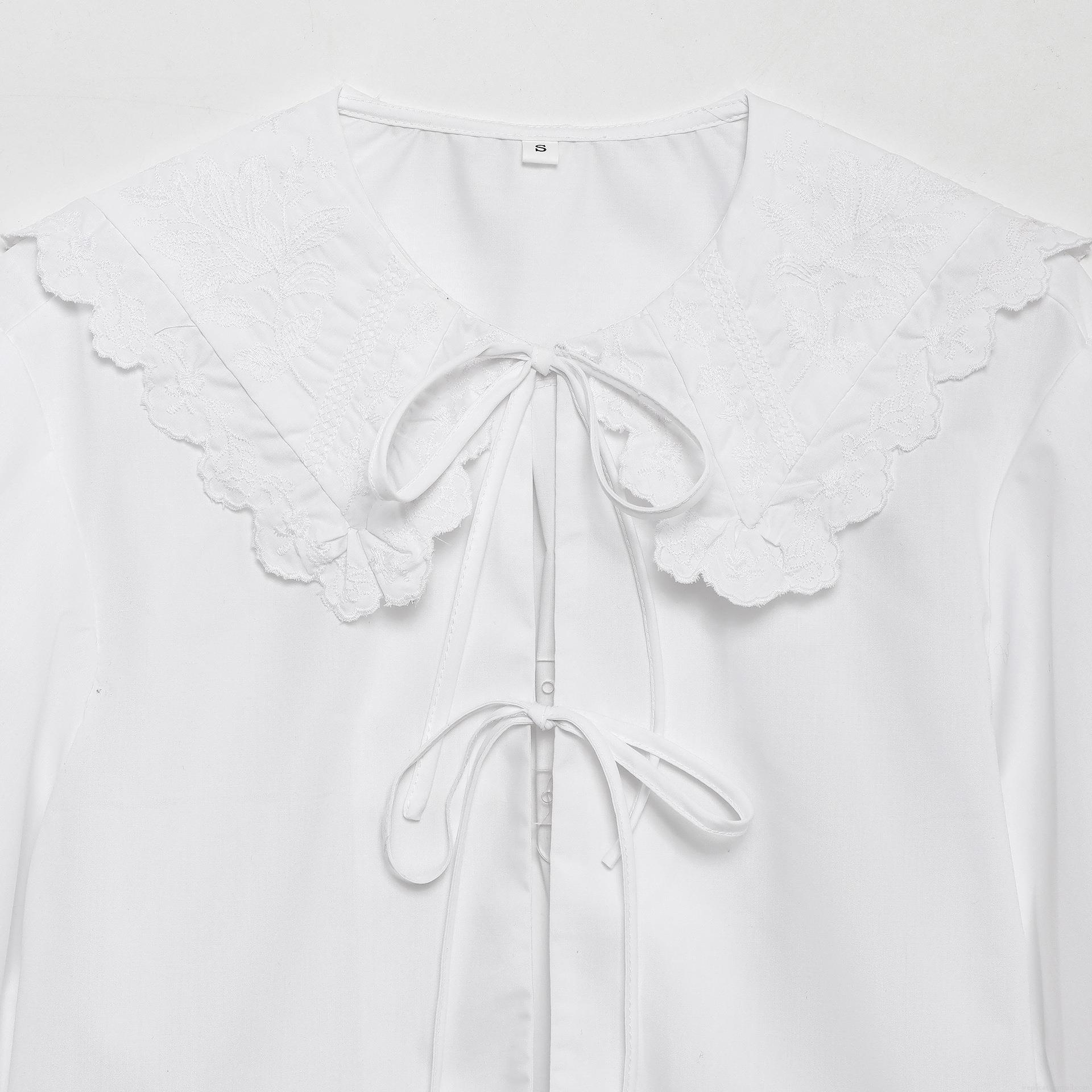 Bow, Embroidery, Lace Embroidery, Hollow Out, Flowers, Lace, Peter Pan's Leader, Puff Sleeves