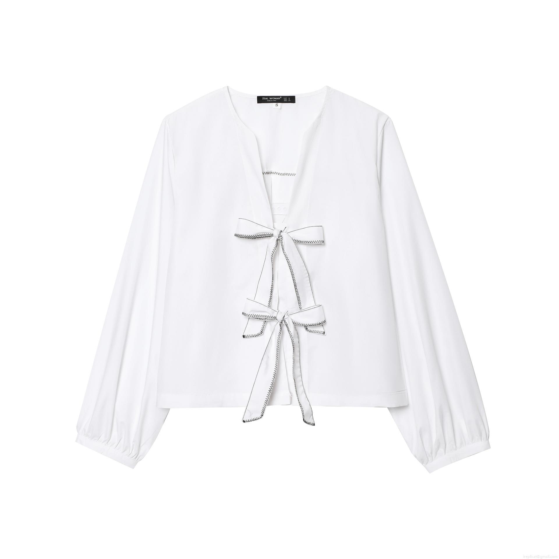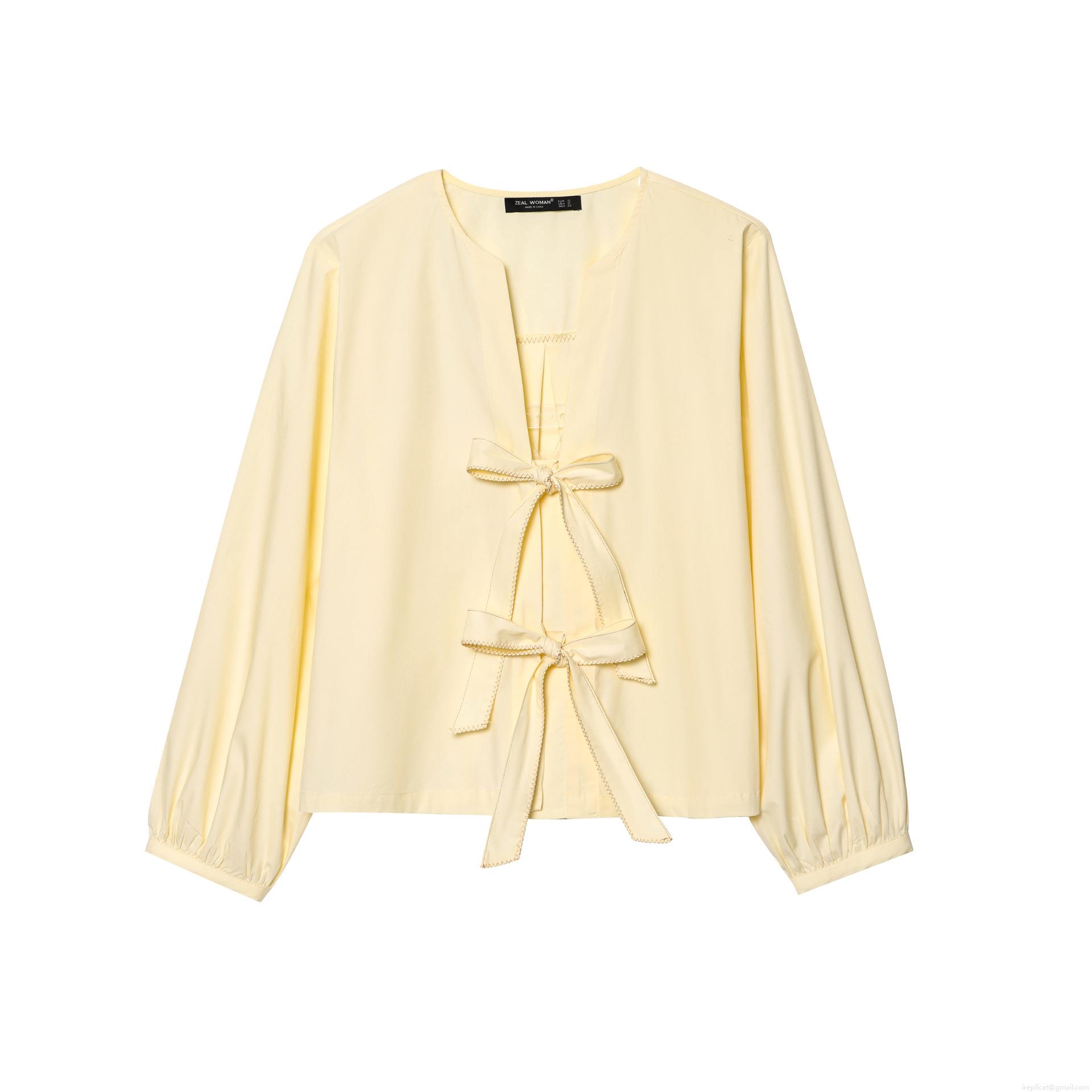 • Women's Elegant Long Sleeve Bow Tie Front Poplin Blouse Solid Color Sweet Polyester Shirt For Office Daily Casual Wear