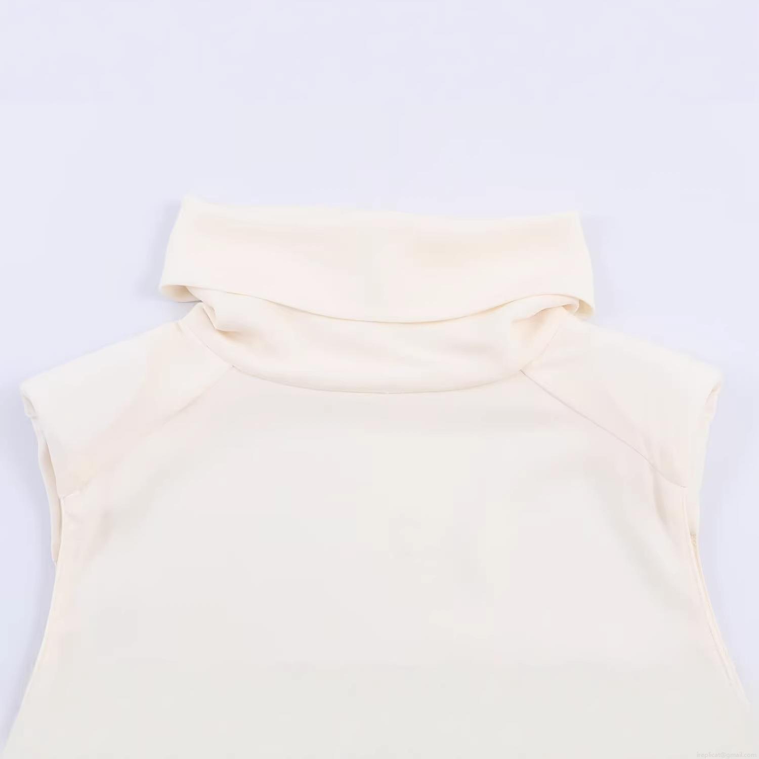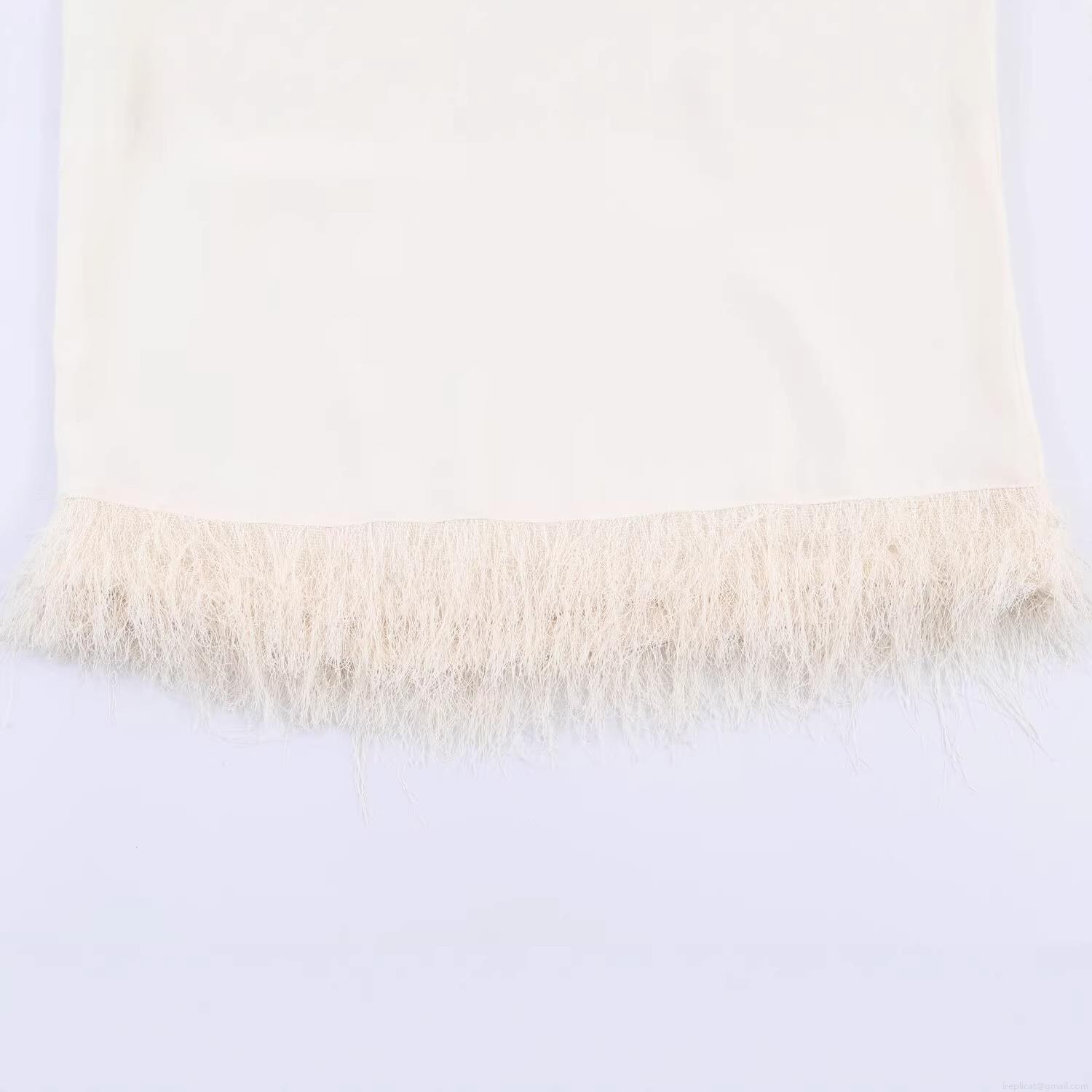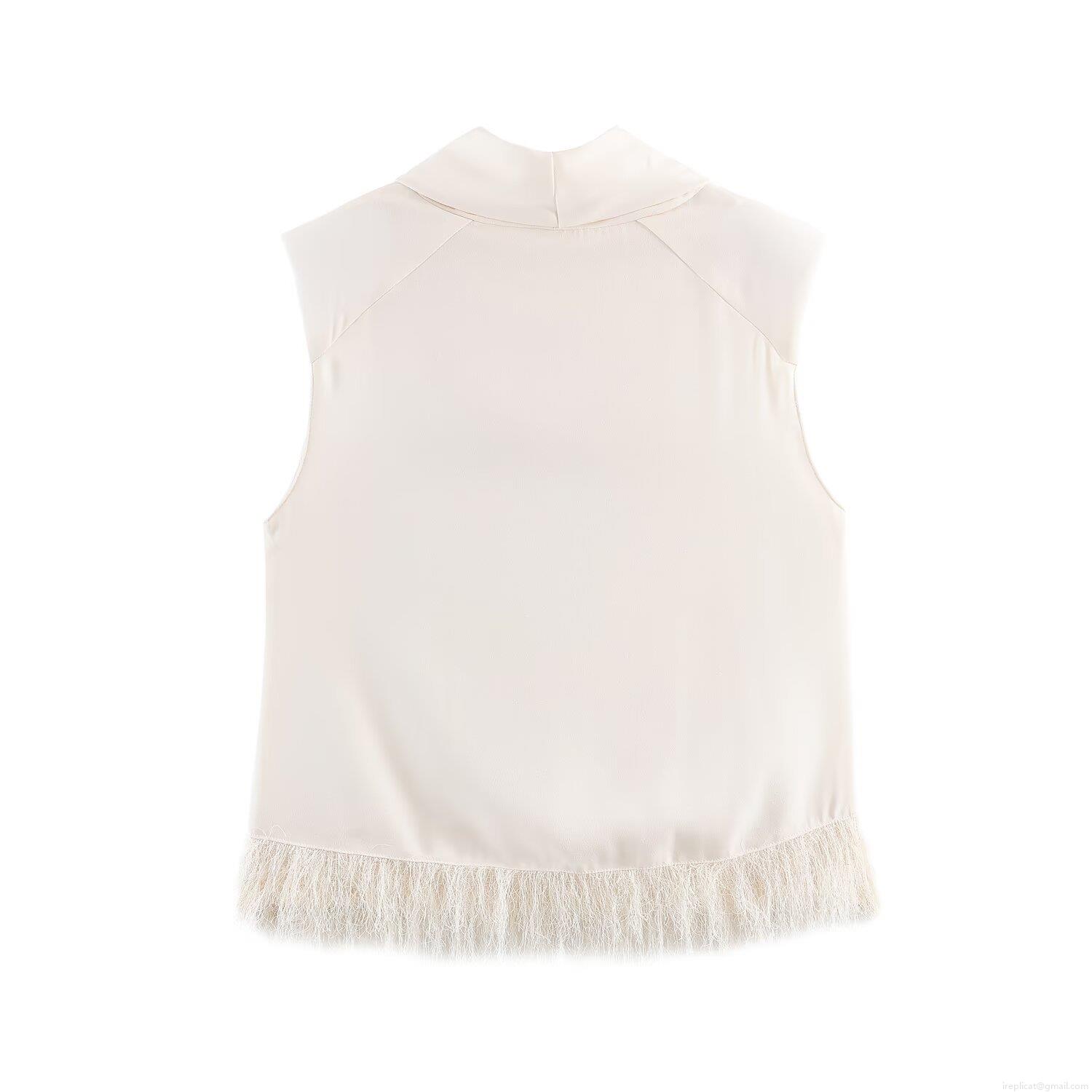 • Women's Elegant Mock Neck Sleeveless Satin Top With Feather Fringe Hem Chic Solid Color Blouse For Party Club Evening Sexy Lady Outfits