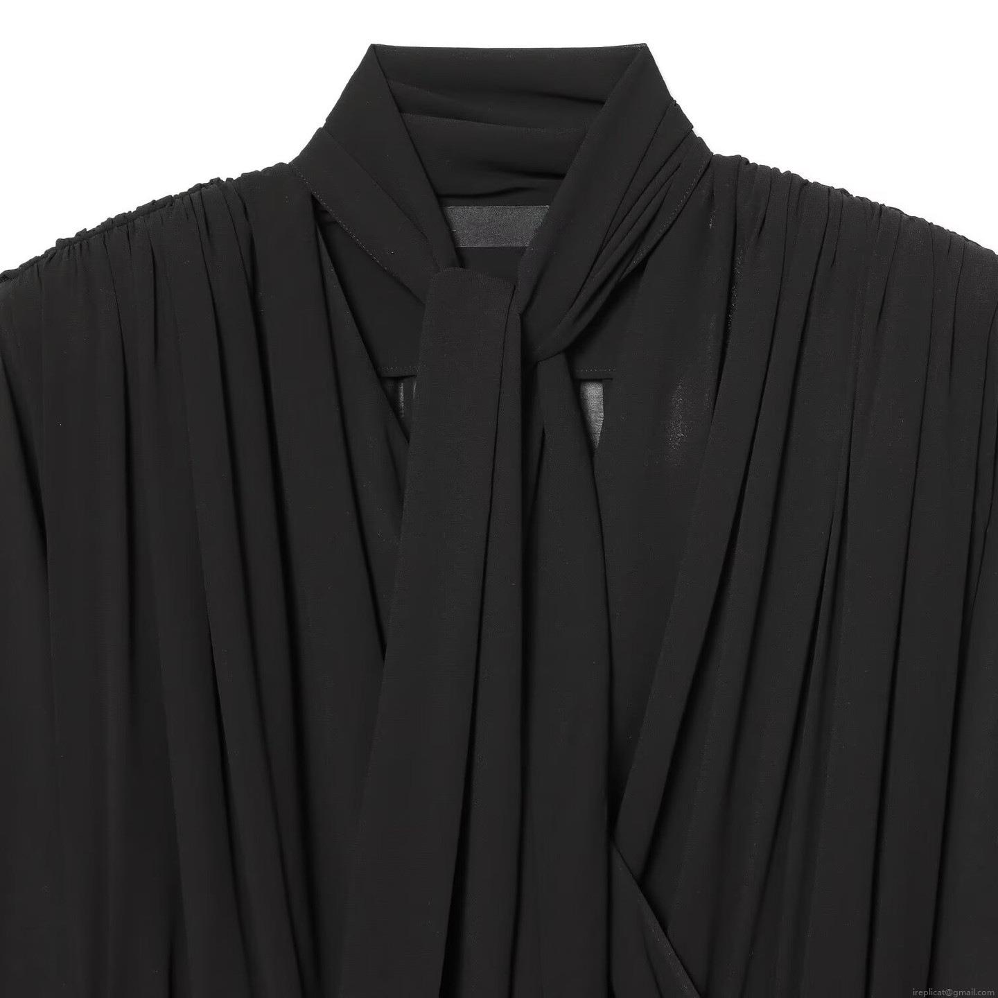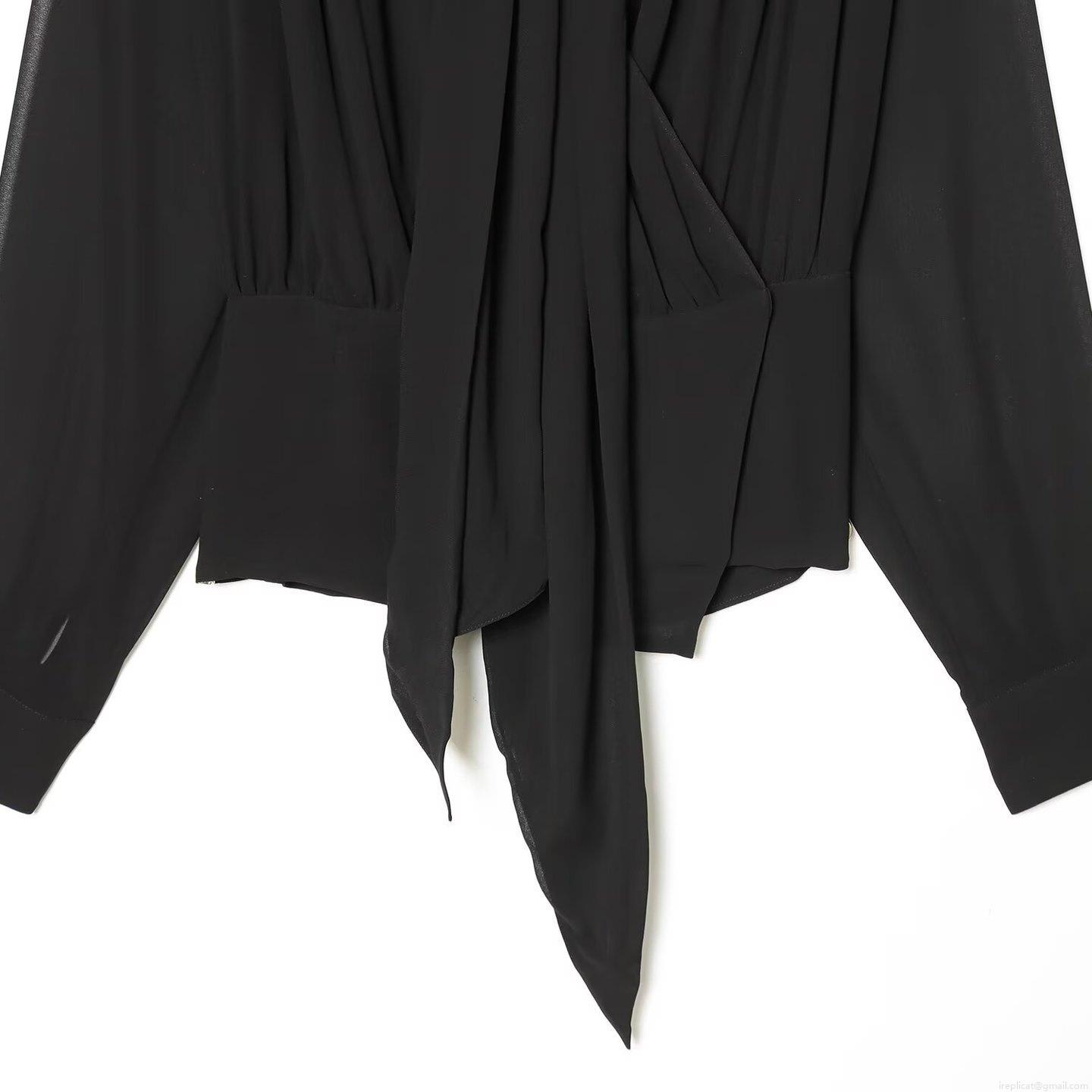 • Women's Elegant Pearl Chiffon Blouse Black Long Sleeve Tie Scarf Collar Bow Draped Pleated Shirt Office Commute Casual Top