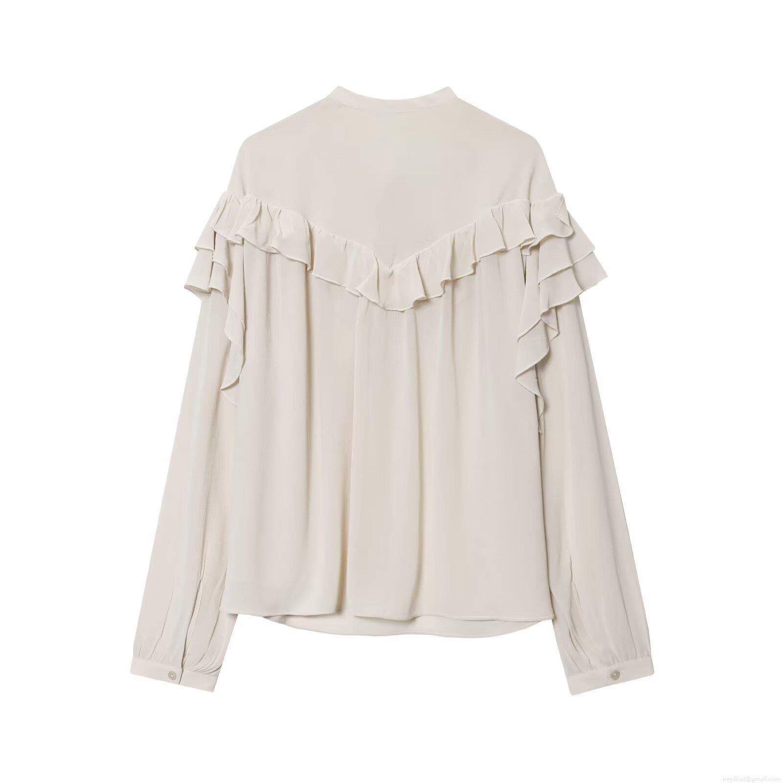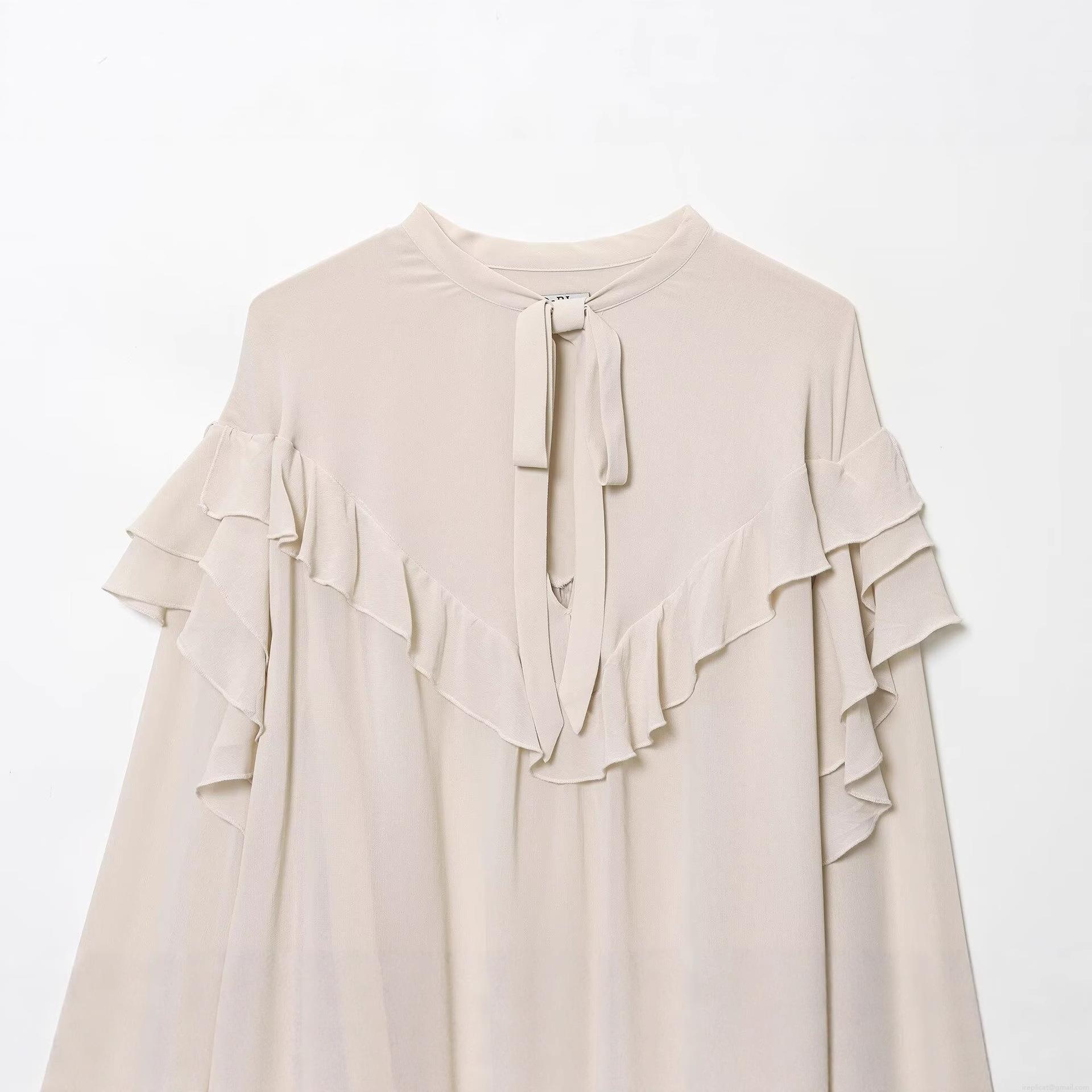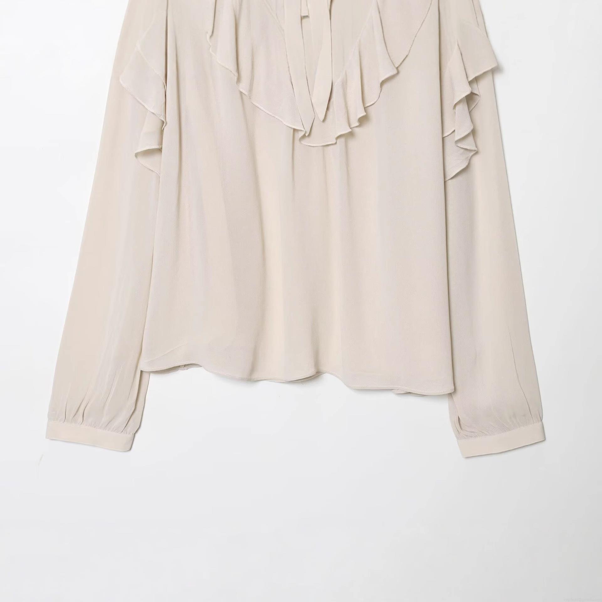 • Women's Elegant Pearl Chiffon Blouse Ruffle Trim Bow Tie Neck Long Sleeve Solid Color Pullover Fashion Top For Ladies Office Daily Wear