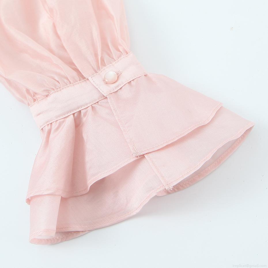 • Women's Elegant Pink Ruffle Long Sleeve Blouse Loose Sweet Shirt With Tie Collar For Daily Dating Ladies Fashion Tops