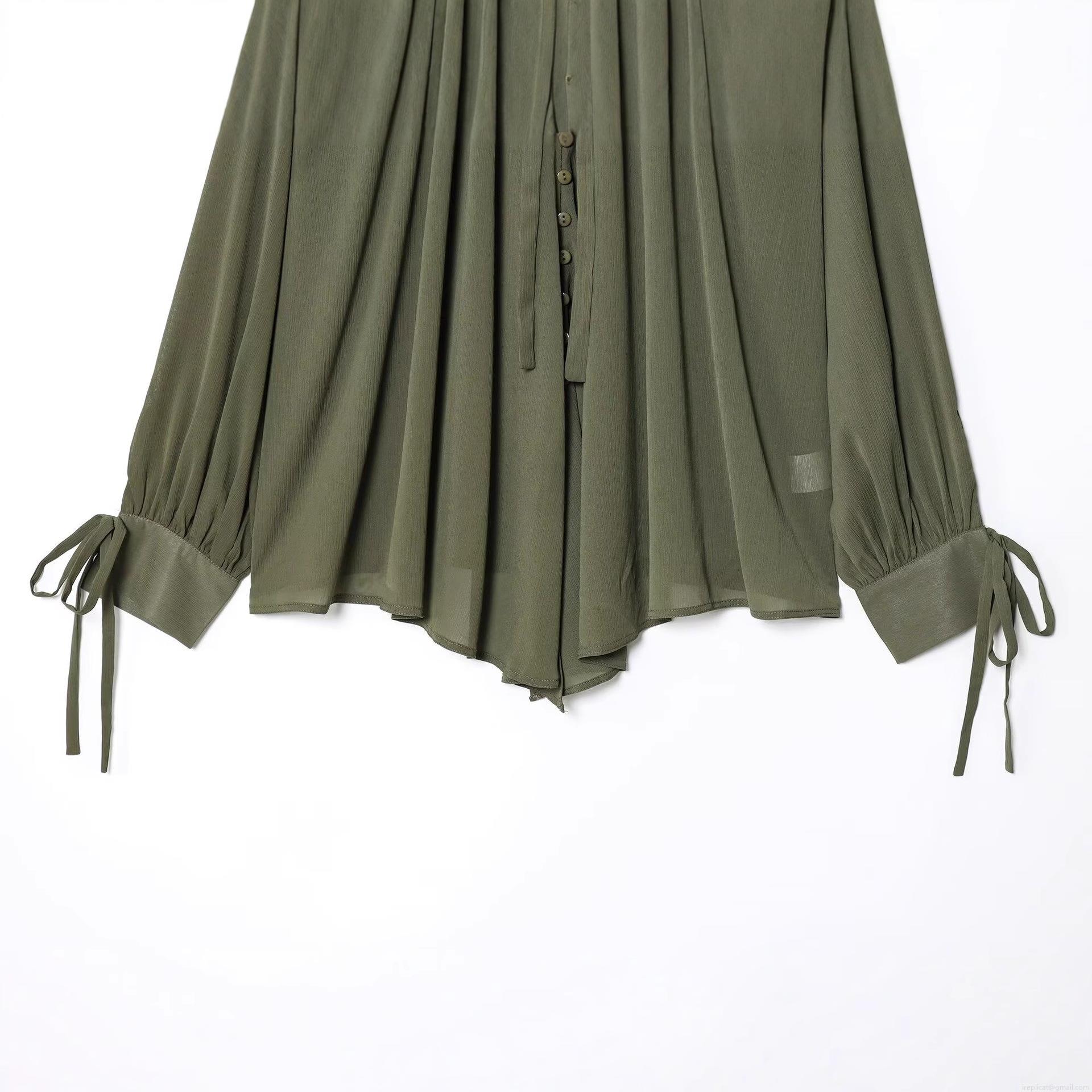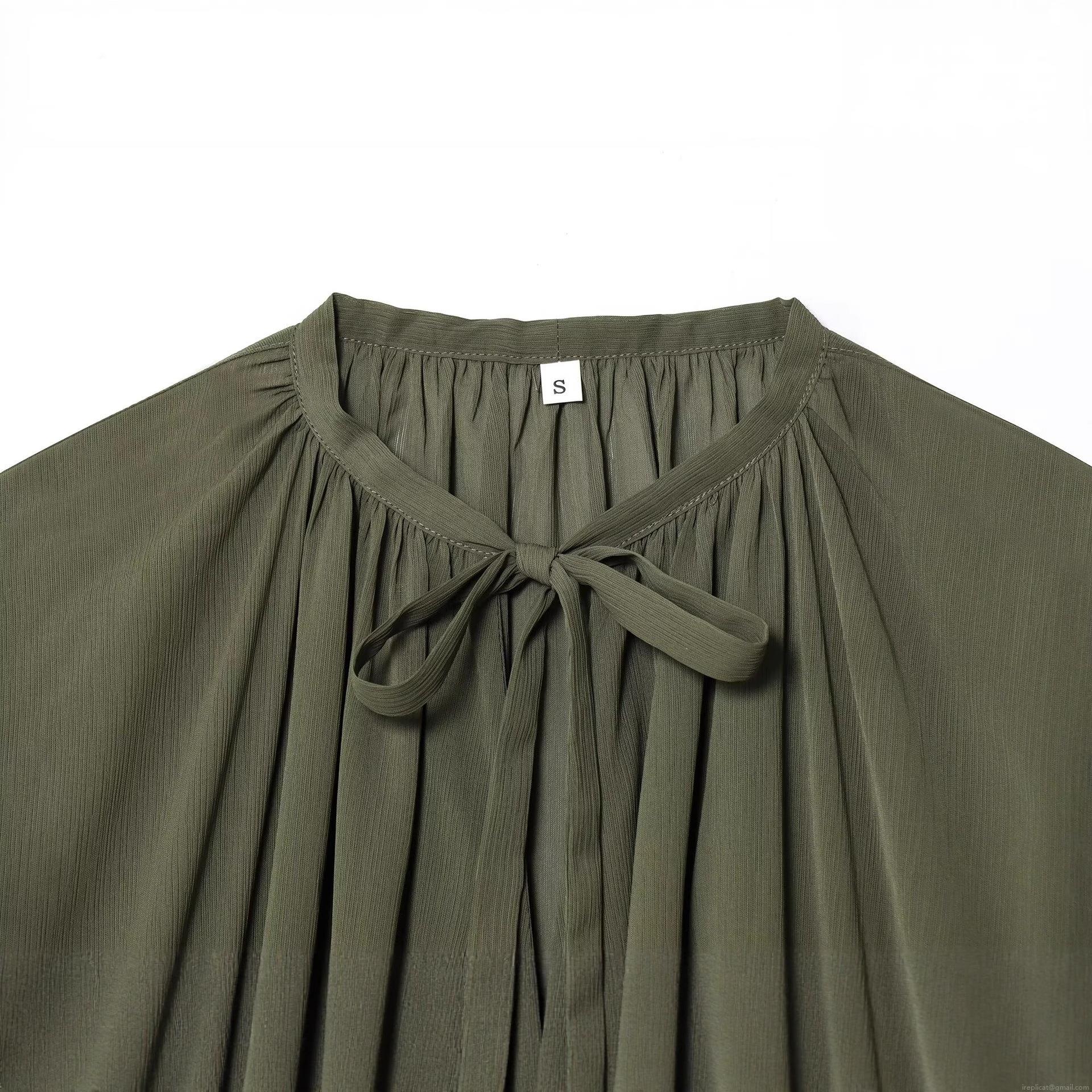 • Women's Elegant Pleated Chiffon Blouse With Bow Tie Neck And Long Sleeves Solid Color Button Down Shirt Top For Office Party Lady