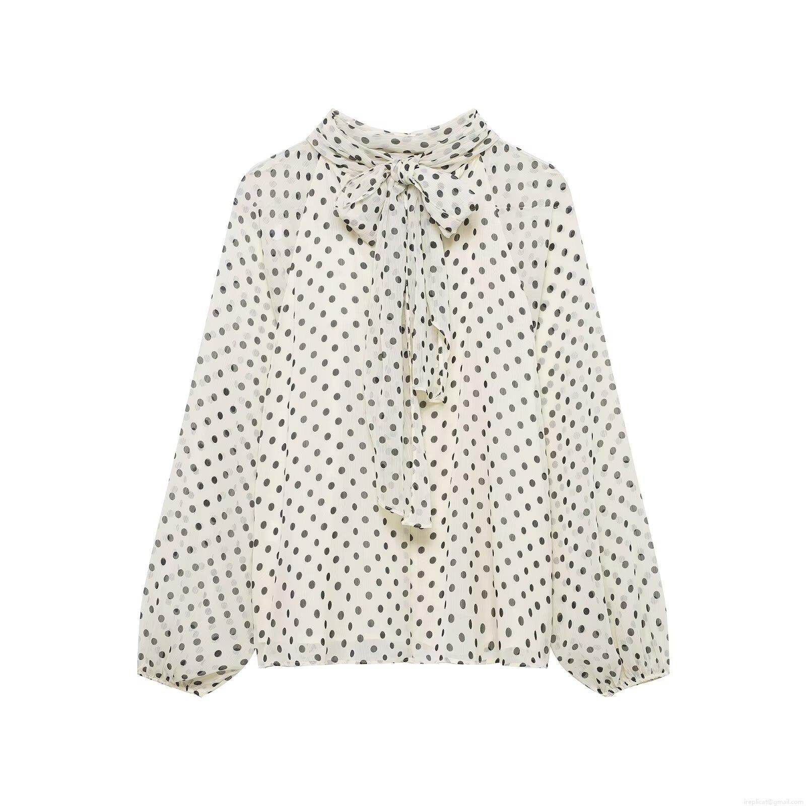 • Women's Elegant Polka Dot Blouse Long Sleeve Bow Tie Neck Chiffon Polyester Shirt Loose Fit Vintage Casual Top For Women