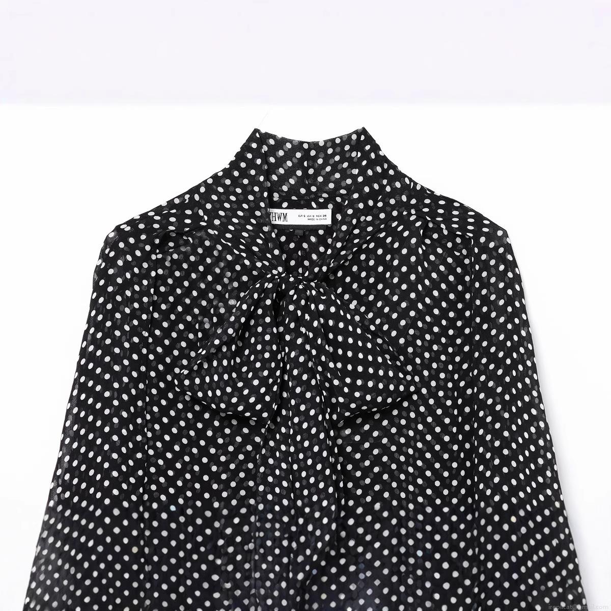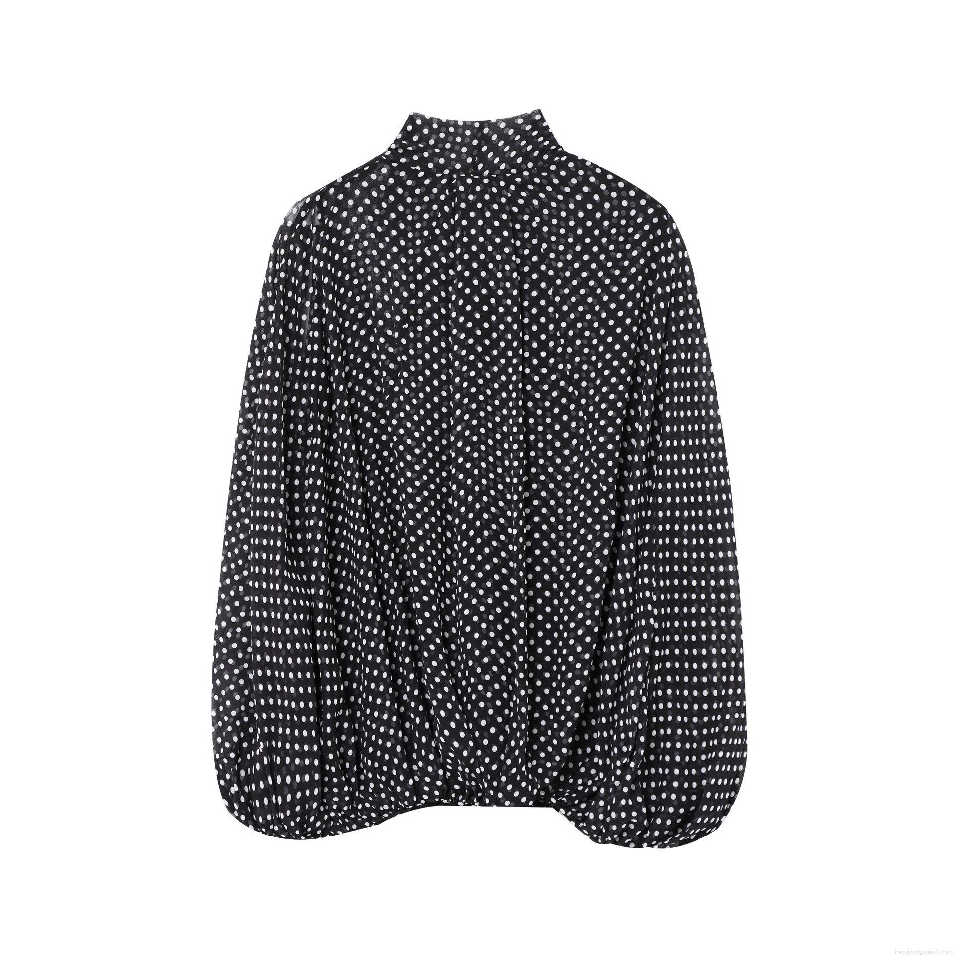 • Women's Elegant Polka Dot Chiffon Blouse Bowknot Stand Collar Long Sleeve Lantern Sleeve Shirt For Party Office Daily Wear Tops