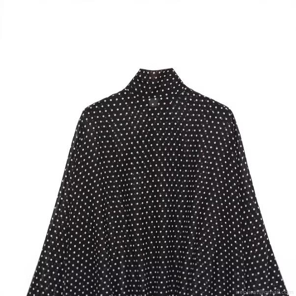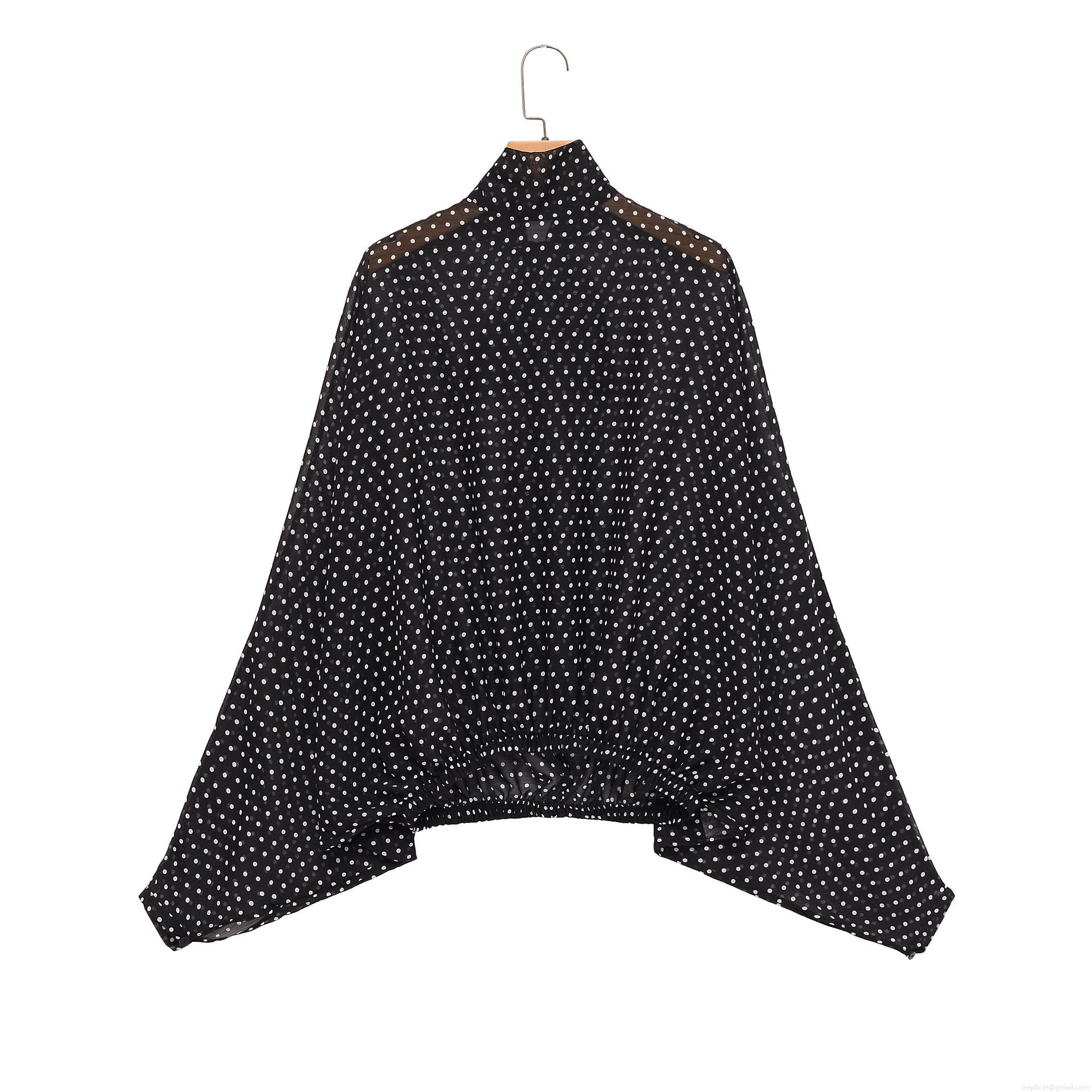 • Women's Elegant Polka Dot Chiffon Blouse Fashion Mock Neck Batwing Sleeve Pullover Top With Elastic Hem Long Sleeve Shirt For Ladies