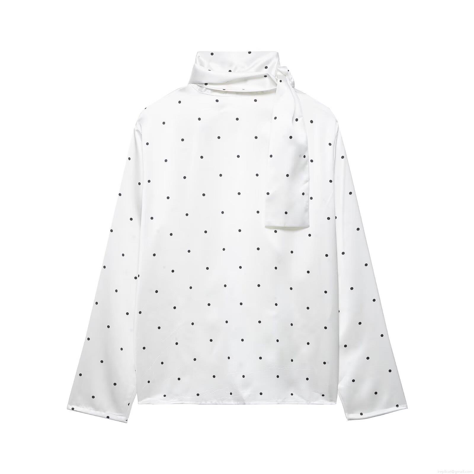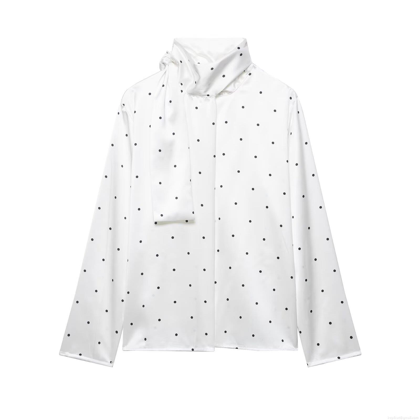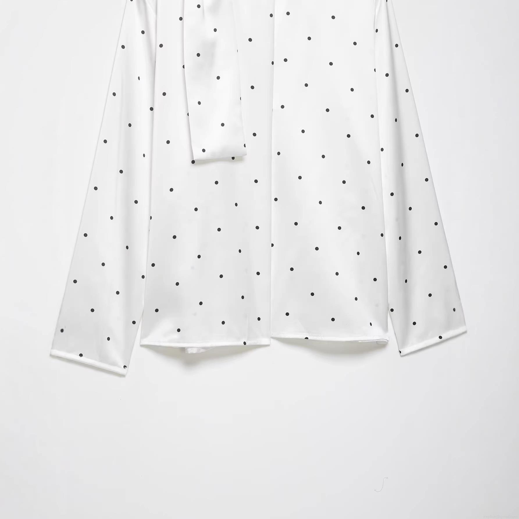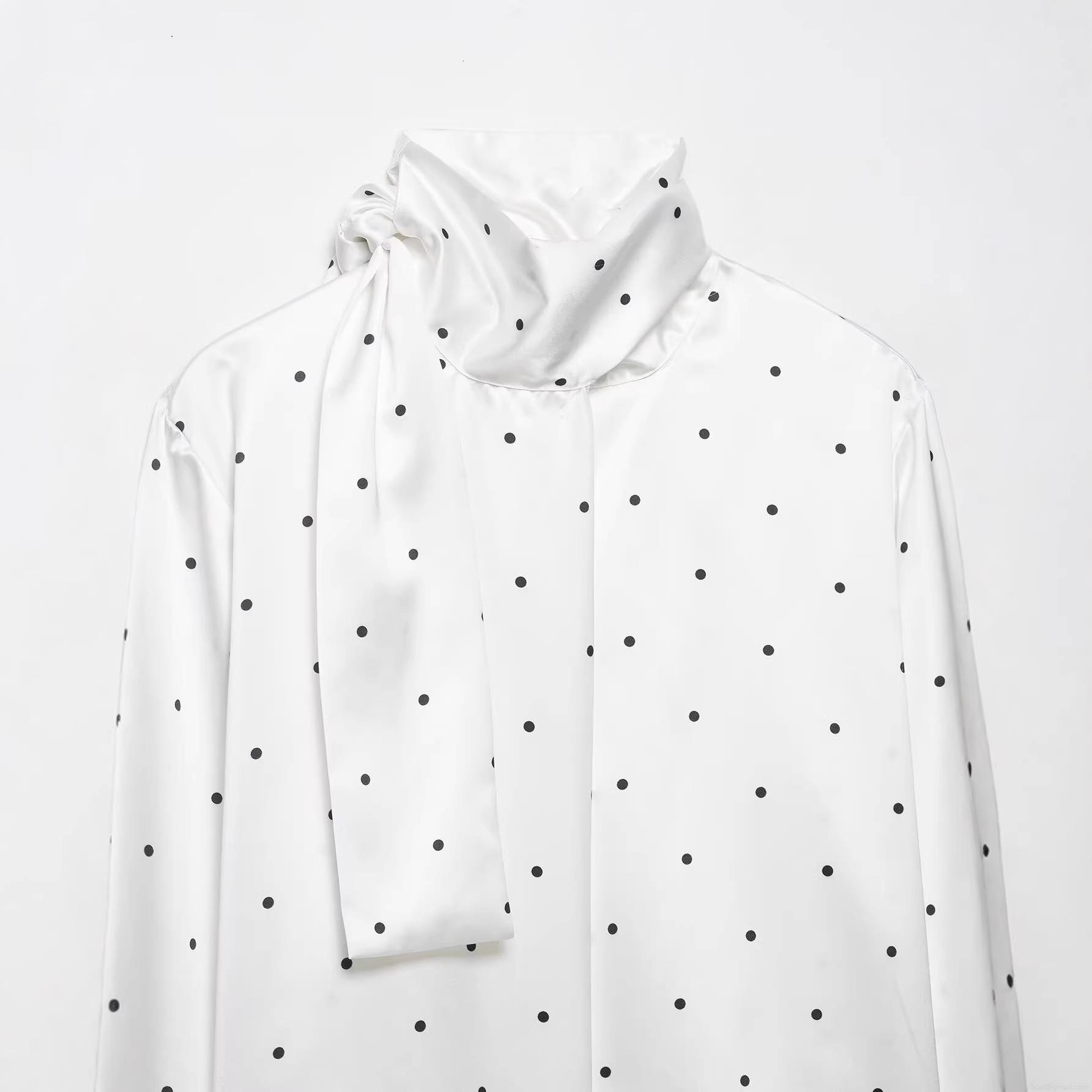 • Women's Elegant Polka Dot Satin Blouse Vintage Tie Neck Long Sleeve Pullover Shirt For Party Office Work 100% Polyester