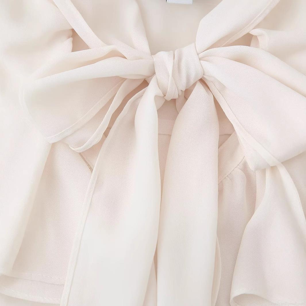 Solid Color, Bow, Pleats, Ruffles, Lace, Bell Sleeves