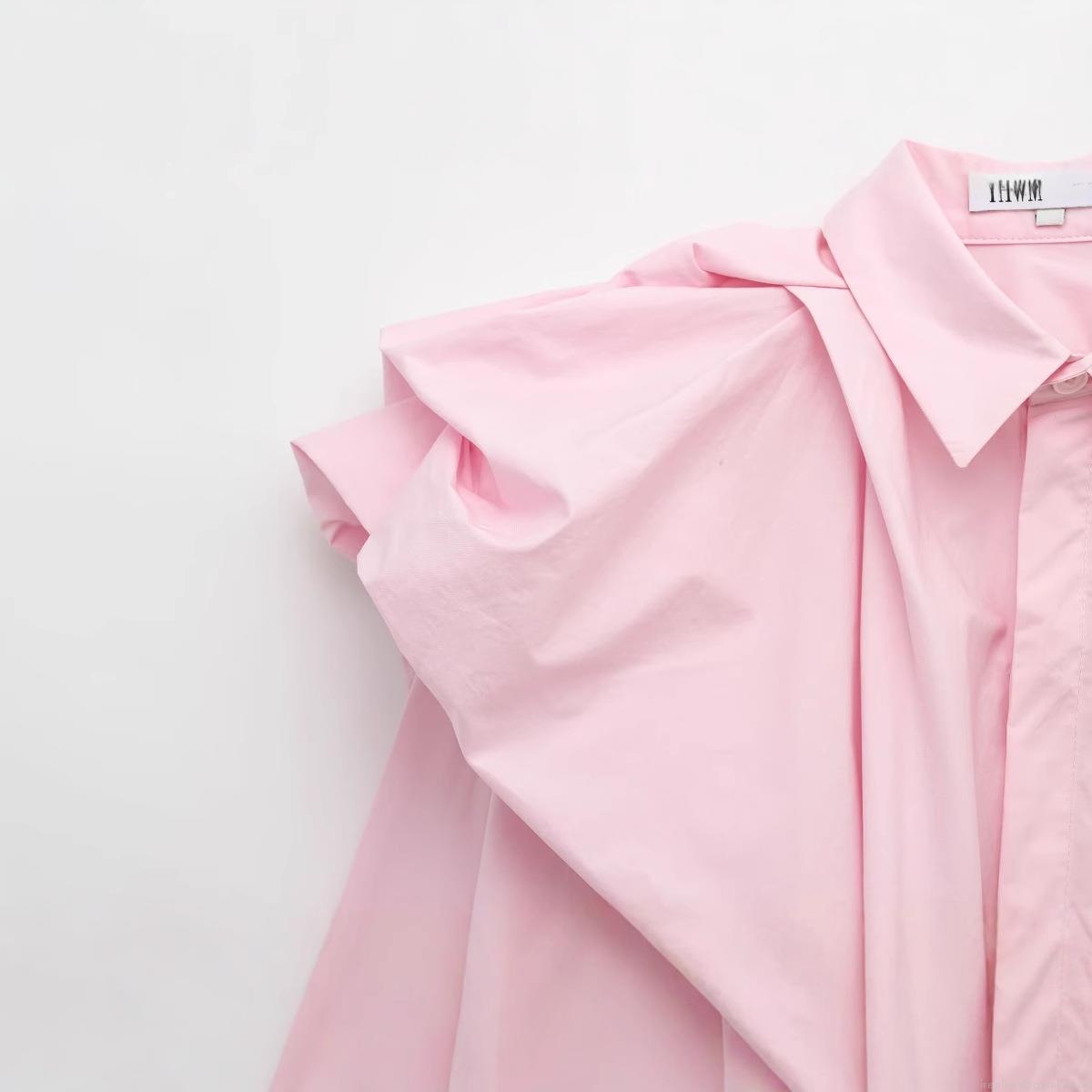 • Women's Elegant Puff Long Sleeve Poplin Shirt Solid Color Ruffle Shoulder Button Down Blouse Polyester Cotton Blend Casual Fashion Tops